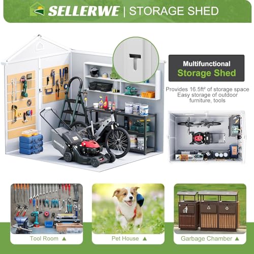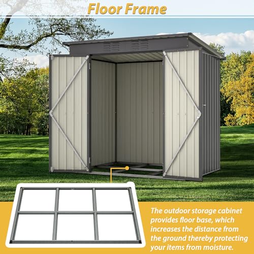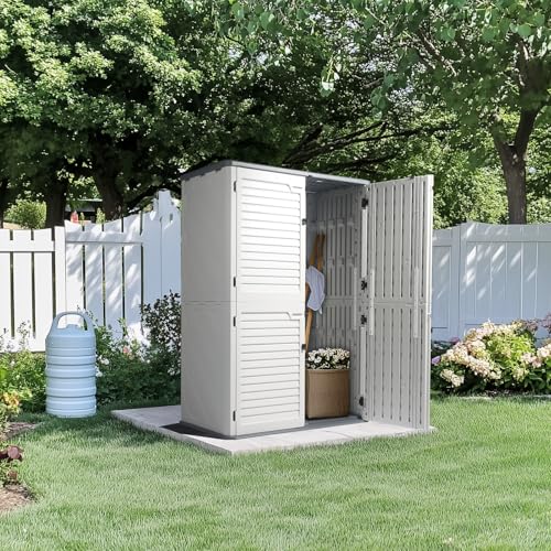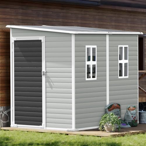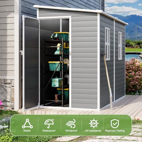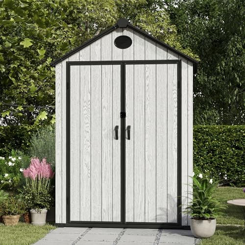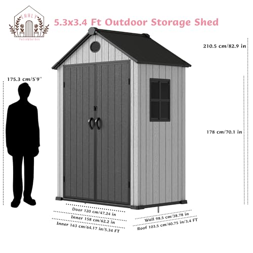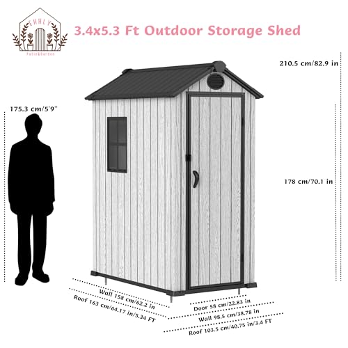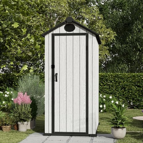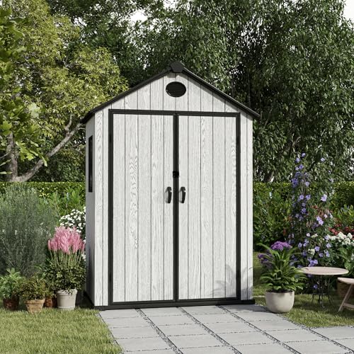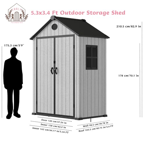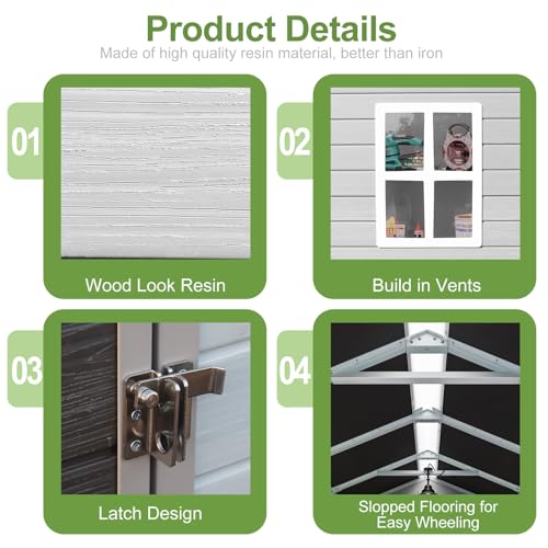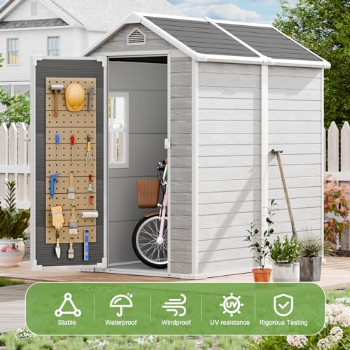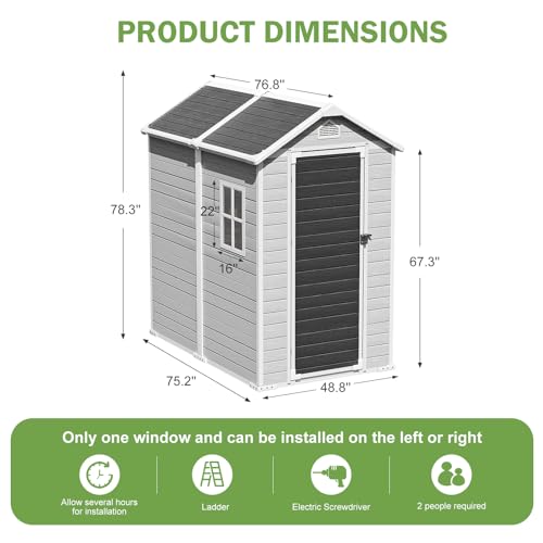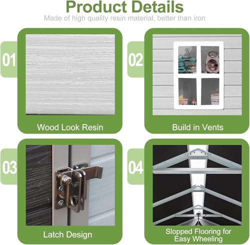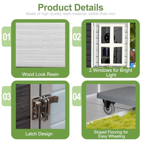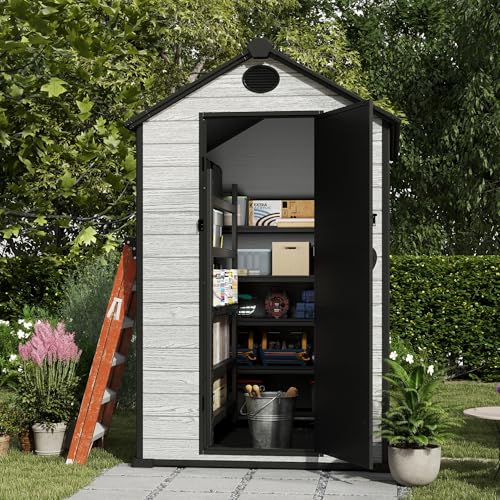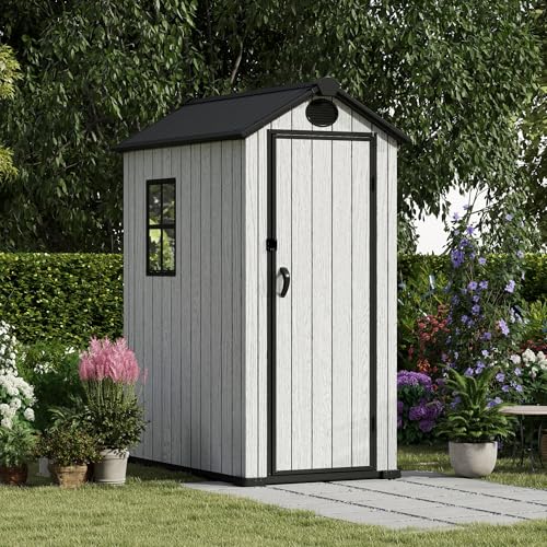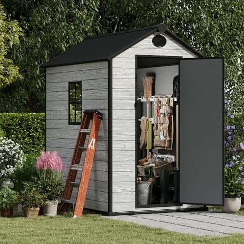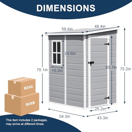 Resin Outdoor Storage Shed with Floor 5x4 FT Waterproof Plastic Sheds Kit Window Lockable Door Included, Outside Garden Tools Sheds for Backyard Patio
