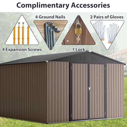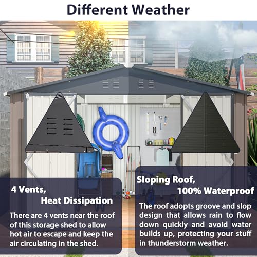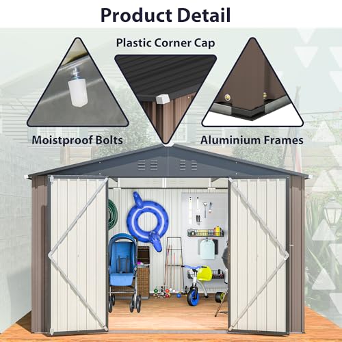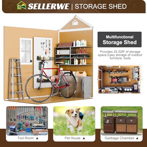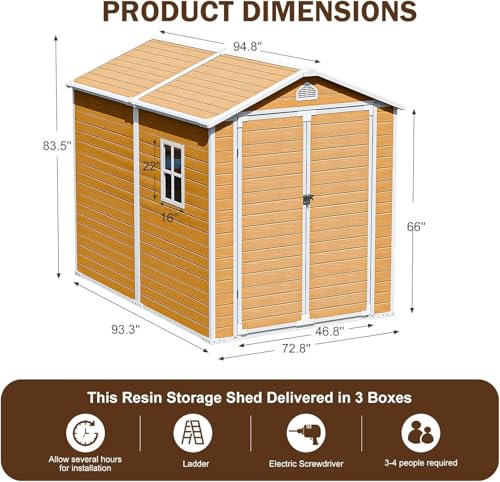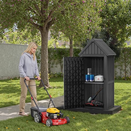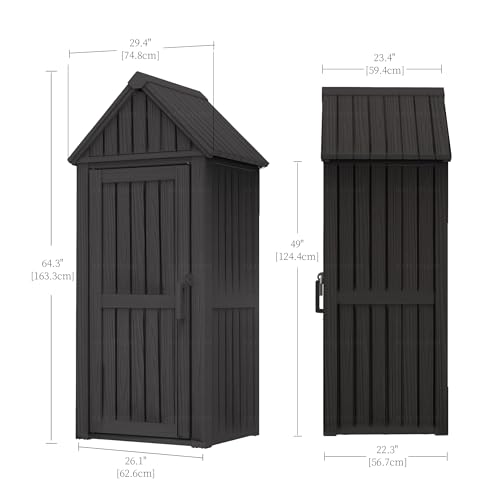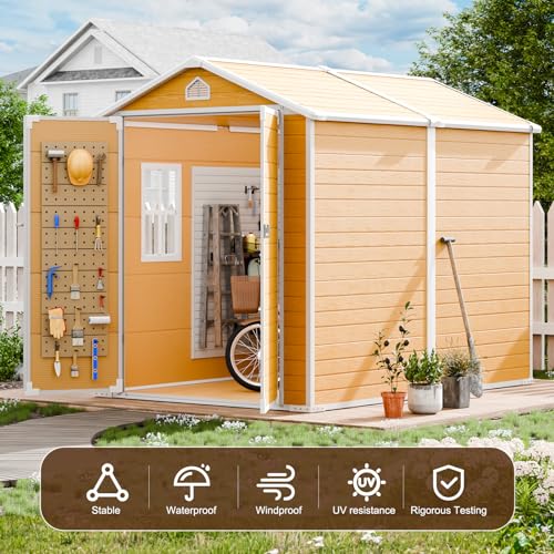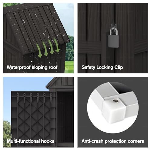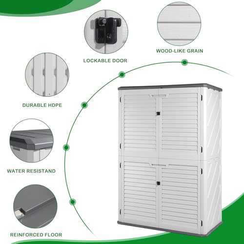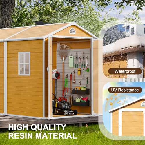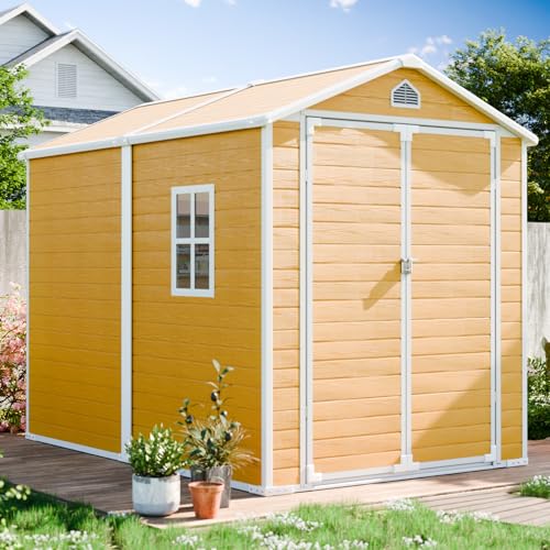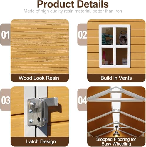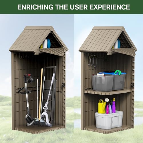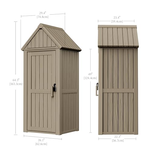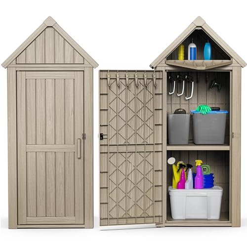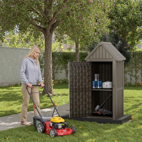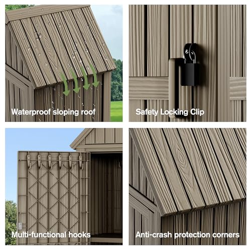 Outdoor Storage Shed with Lock, Waterproof Resin Garden Tool Shed, Heavy-Duty Weather-Resistant Cabinet for Patio, Backyard, or Garage(New Light Brown)