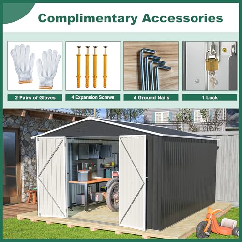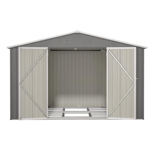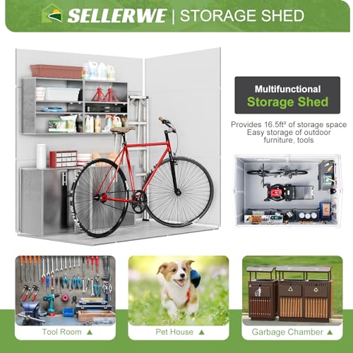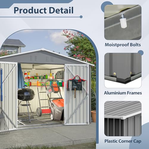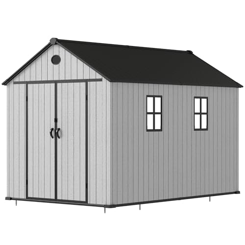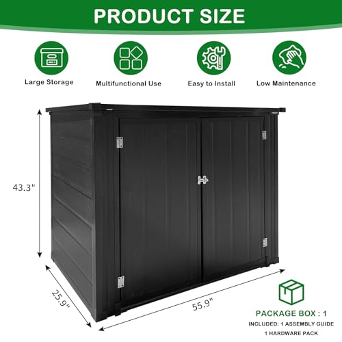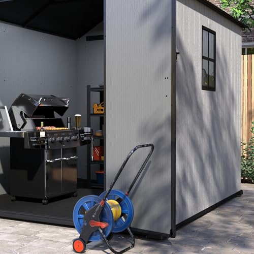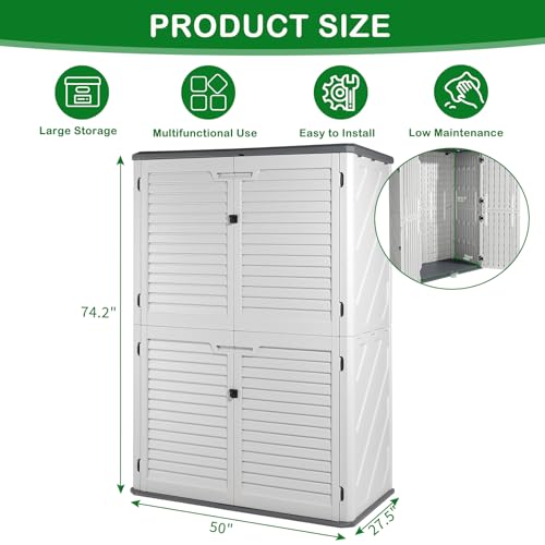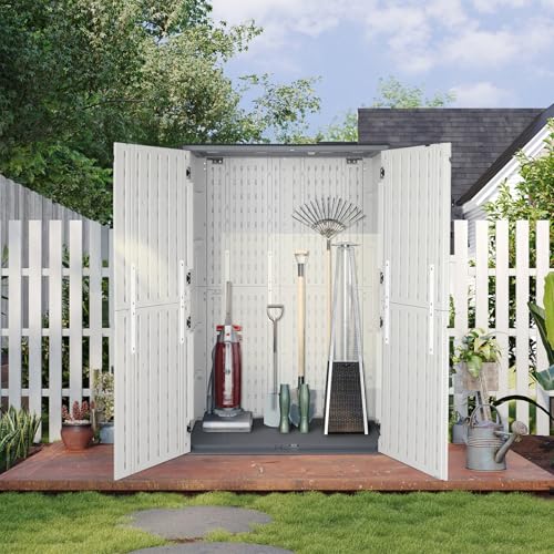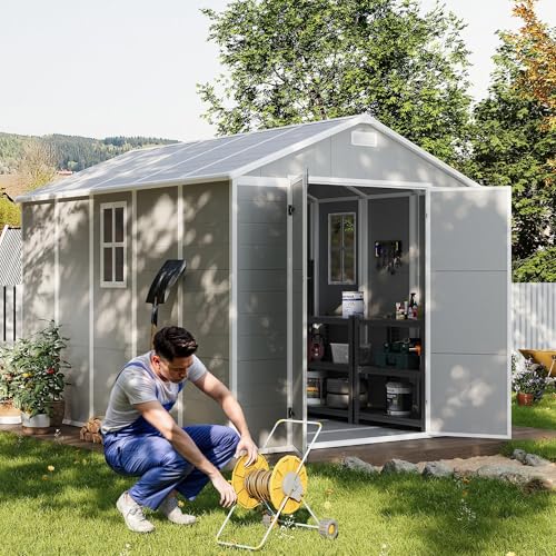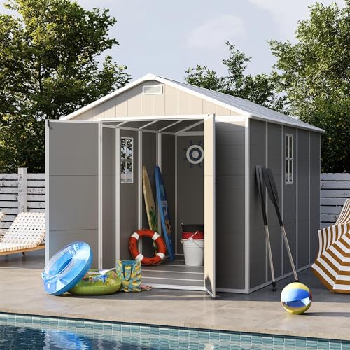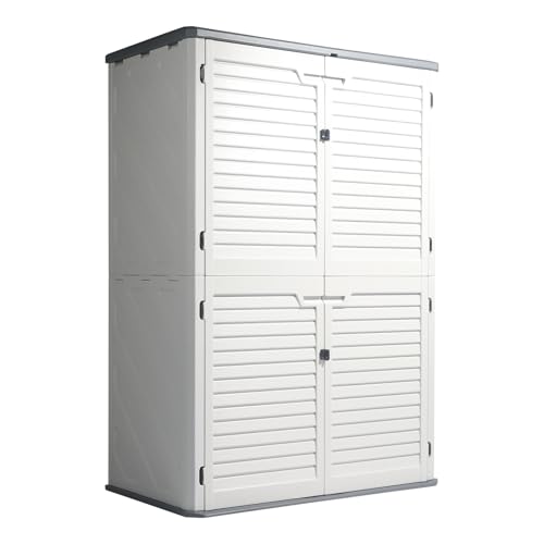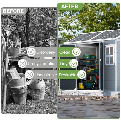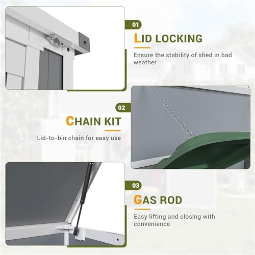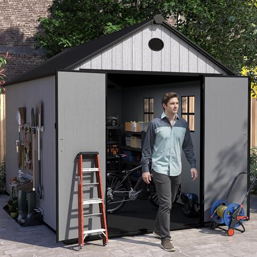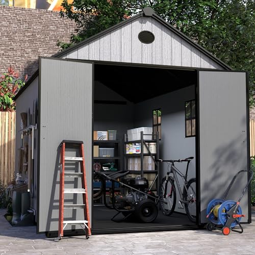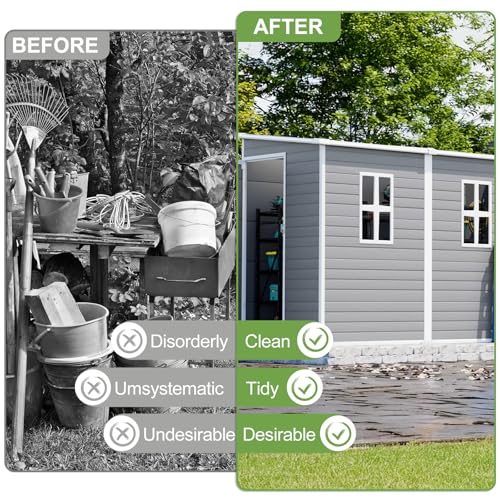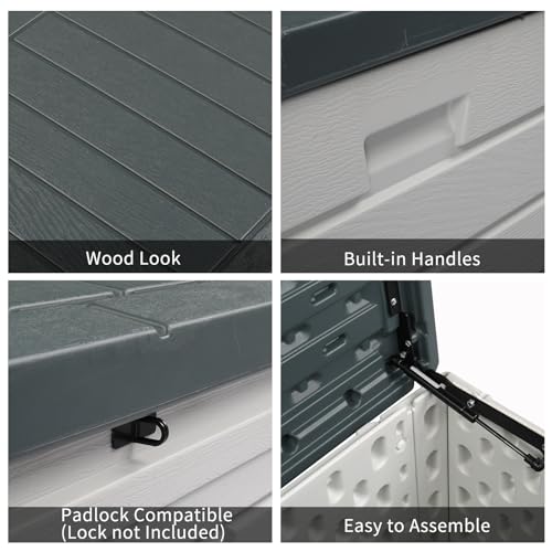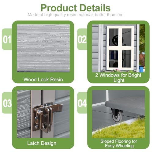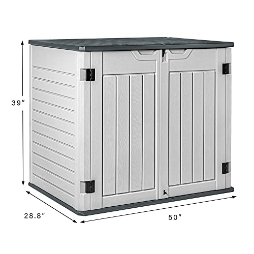 UDPATIO Storage Resin Shed Outdoor 41 Cu.Ft Weatherproof Tool Storage Sheds with Floor Thickened, Gas Spring, Lockable Doors for Trash Can Storage Suitable for Patios, Deck,Poolside (Grey)