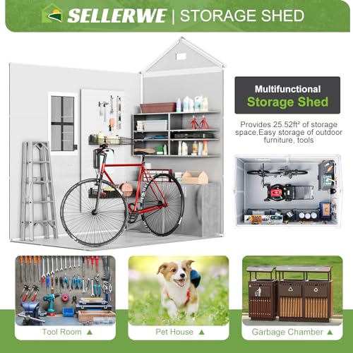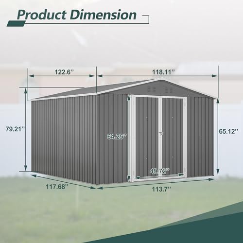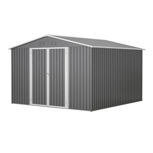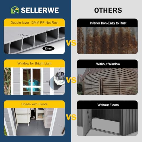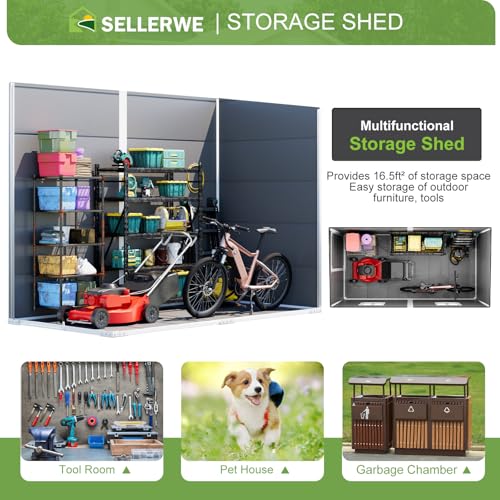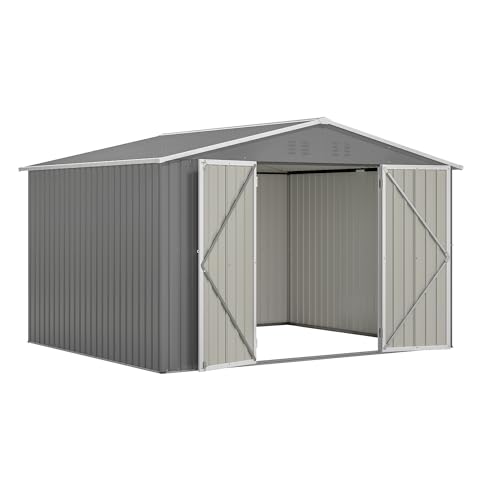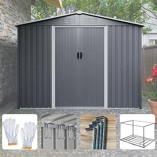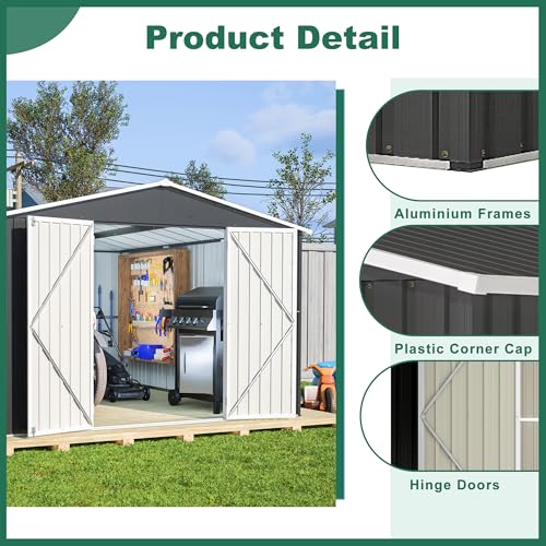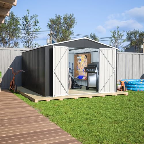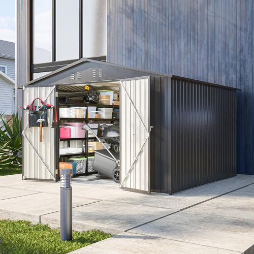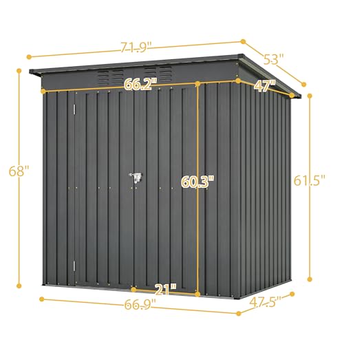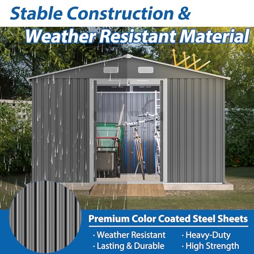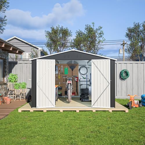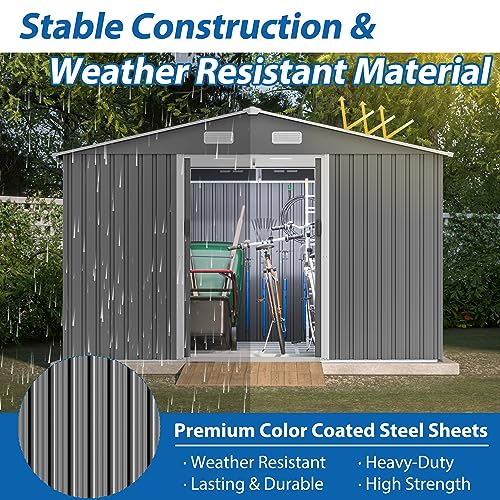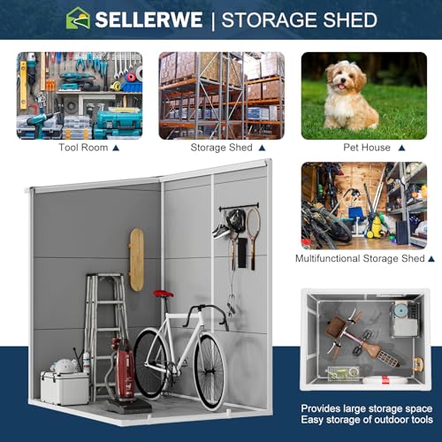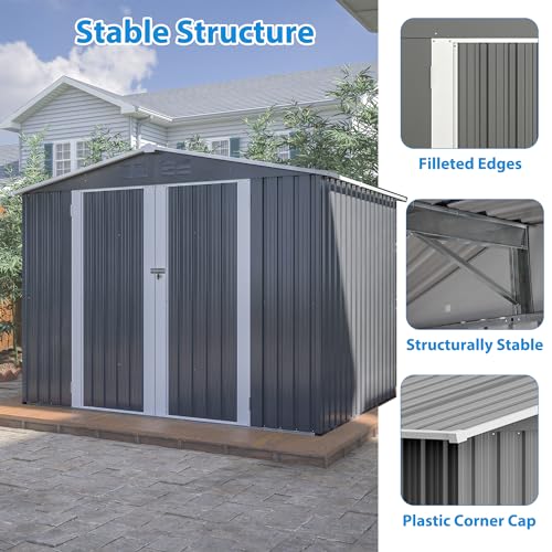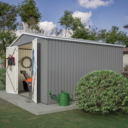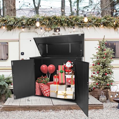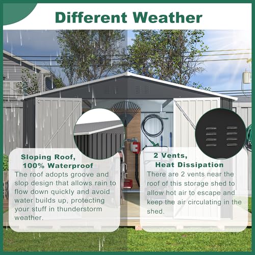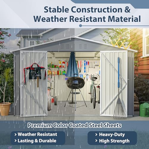 UDPATIO Storage Resin Shed Outdoor 41 Cu.Ft Weatherproof Tool Storage Sheds with Floor Thickened, Gas Spring, Lockable Doors for Trash Can Storage Suitable for Patios, Deck,Poolside (Grey)