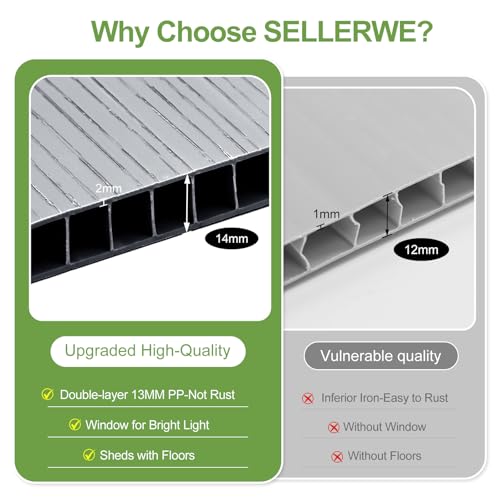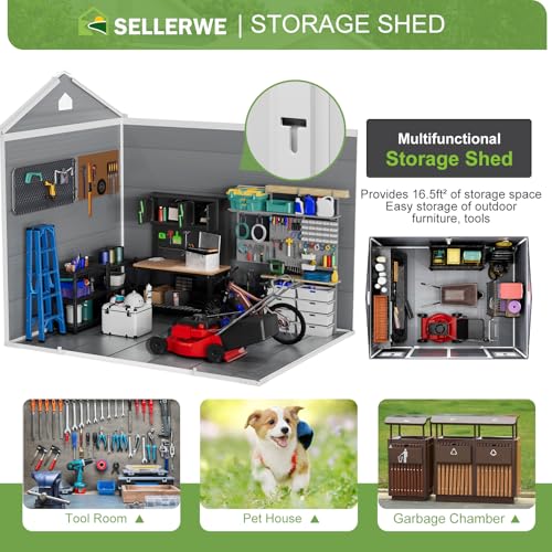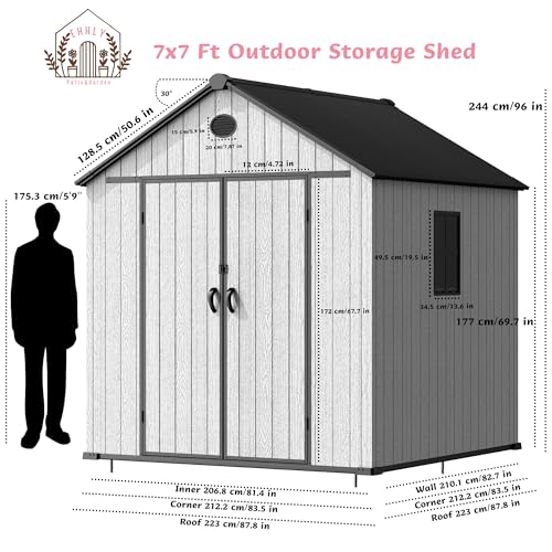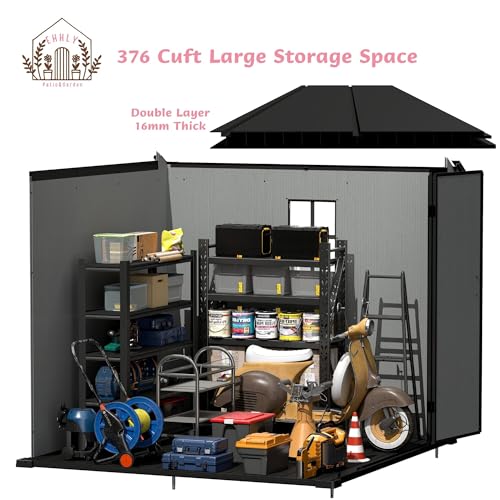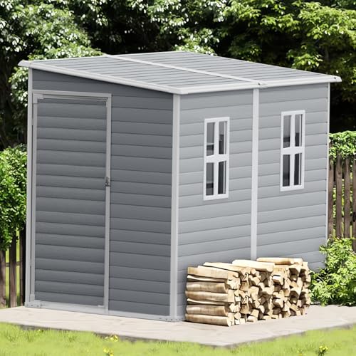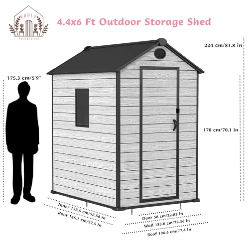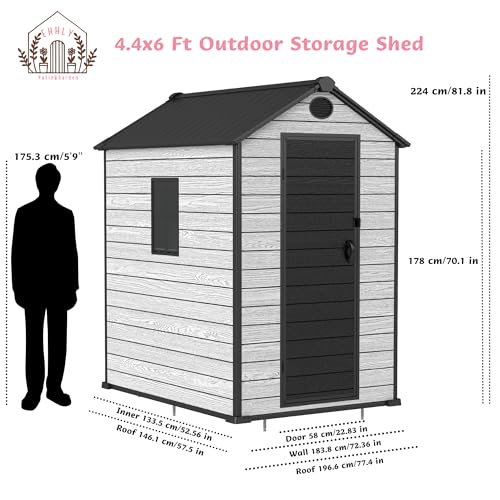 4.4x6 FT Resin Outdoor Storage Shed, 230 Cuft Garden Tool Sheds & Outdoor Storage Plastic Shed with Floor, 7FT Tall Backyard Outside Lawn Mower Storage Shed with Side Window, Cemented Grey Black