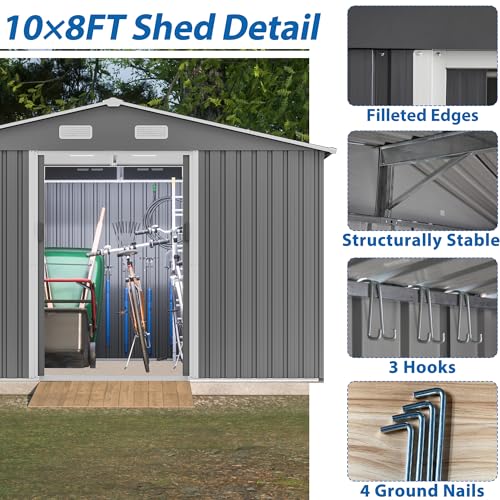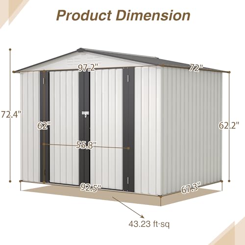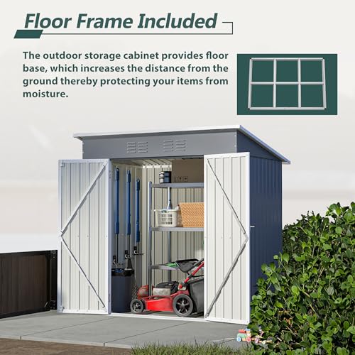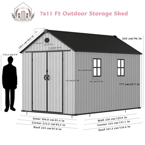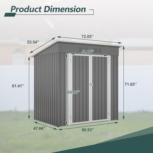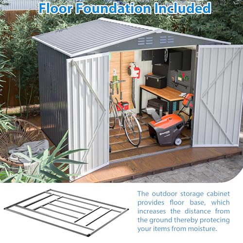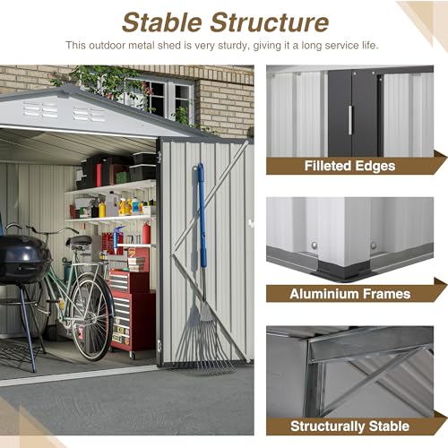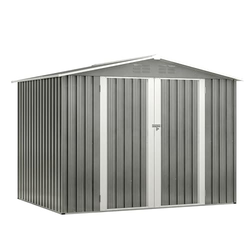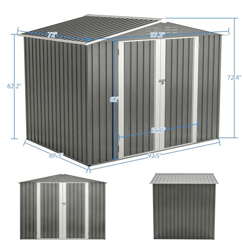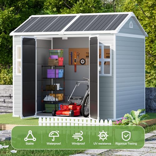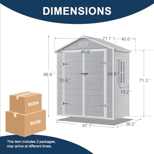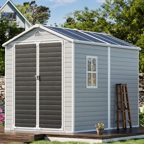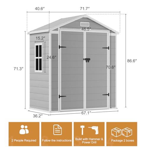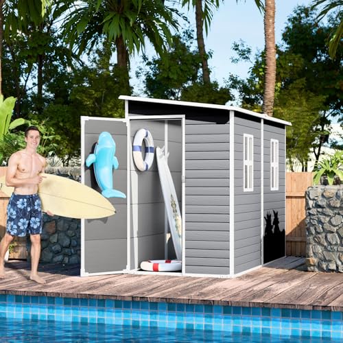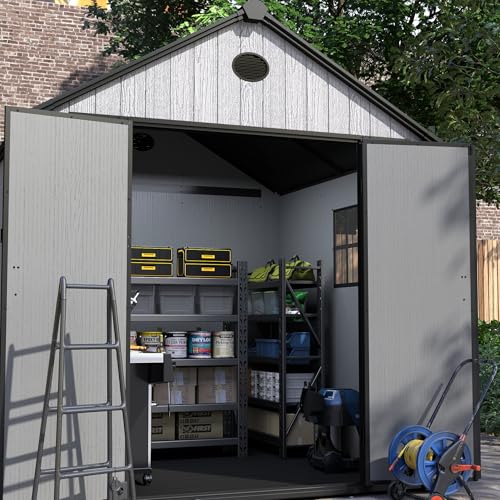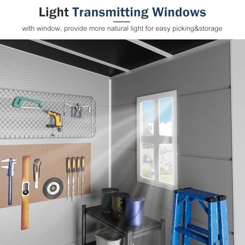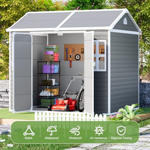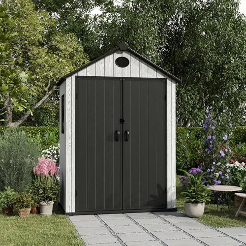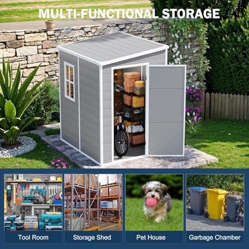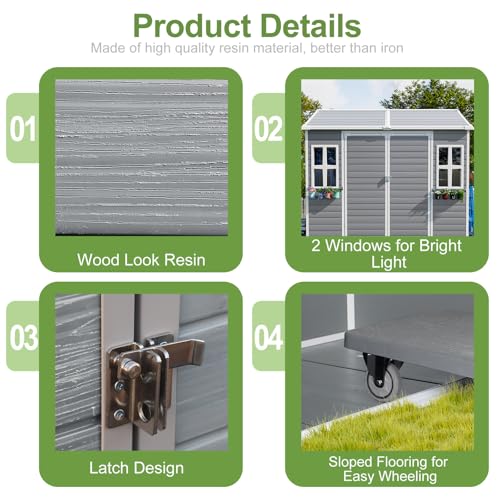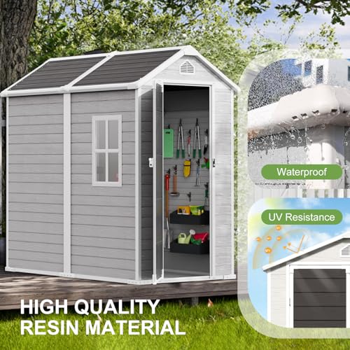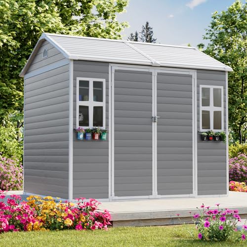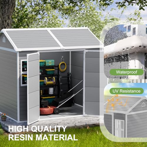 8x6x7 FT Resin Storage Shed, Waterproof Outdoor Storage Shed w/Floor, 2 Windows, Double Lockable Doors & Vents, Tool Shed for Patio Garden, Lawn, Backyard, Dove Grey