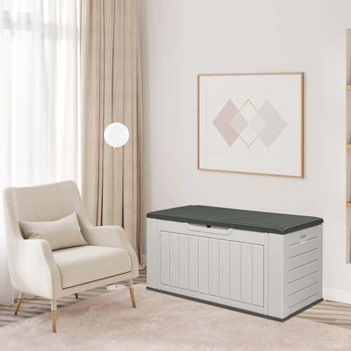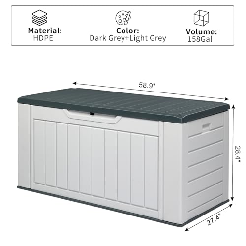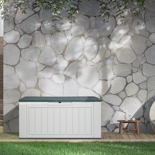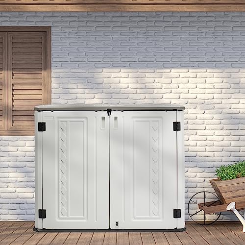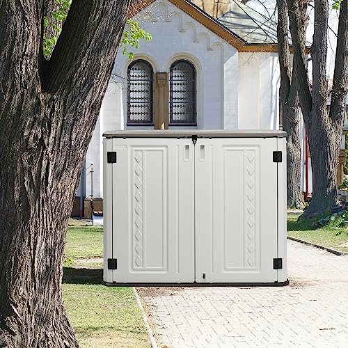 Devoko Resin Outdoor Storage Shed 34 Cu Ft Horizontal Outdoor Storage Cabinet Waterproof Patio Tools Storage Box for Sofa Cushion, Lawn Mower and Garbage Cans