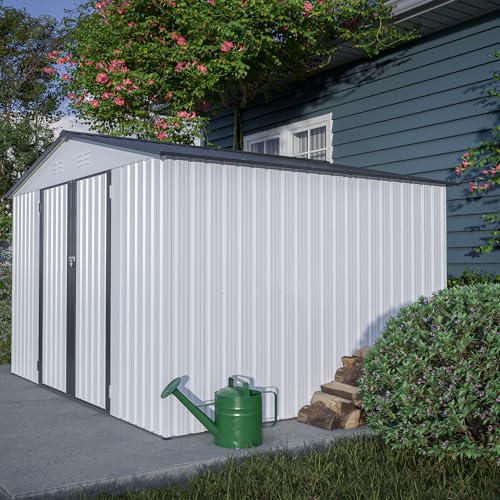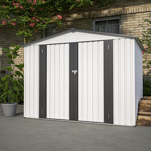 VINGLI Outdoor Storage Shed, Resin Storage Cabinet with Lockable Design, Weatherproof Tool Shed with HDPE Material, Resin Deck Box for Garden Tools, Pool Equipment, Garbage Cans, White (59 Cu.ft)