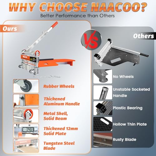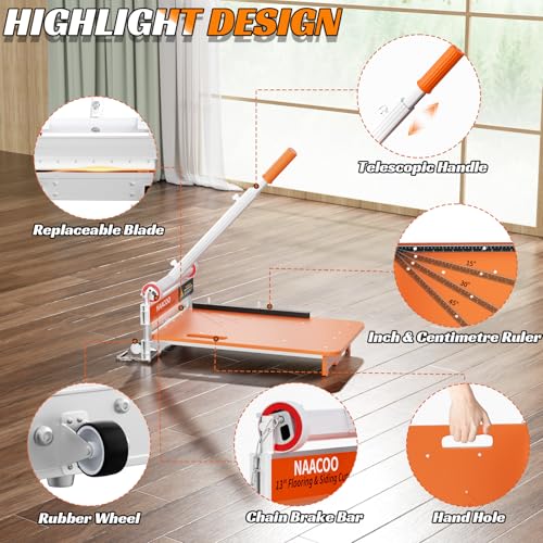 Heavy Duty Laminate/Vinyl Floor Cutter, NAACOO 13” Vinyl Plank Cutter with Wheel – Just 1 Step Meet Angle&Length Cutting, Flooring Tools - Cuts Laminate Floor, Engineer Wood, LVP/T, VCT, SPC, WPC