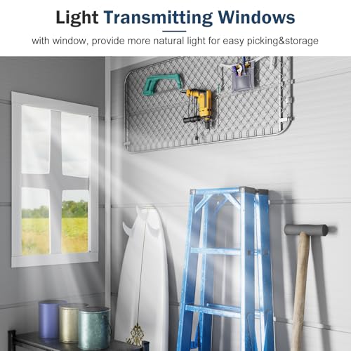 DWVO 5x3 FT Outdoor Storage Shed with Floor, All-Weather Resin Storage Shed with Lockable Door & Window, Waterproof Plastic Tool Storage for Garden, Backyard, Patio, Lawn, Blue-Gray