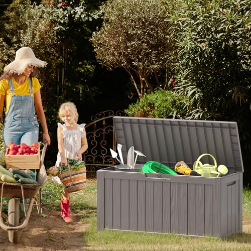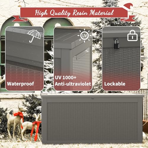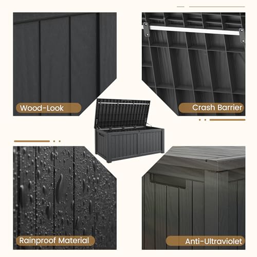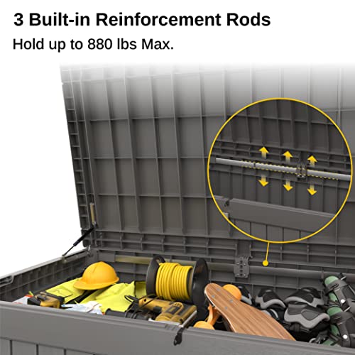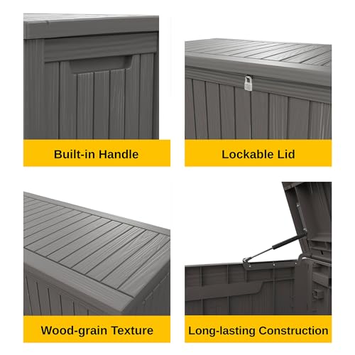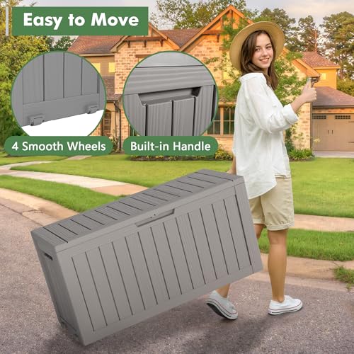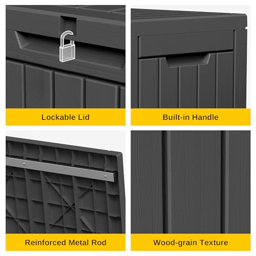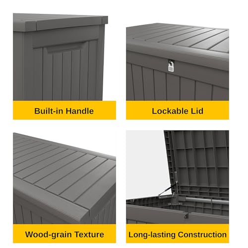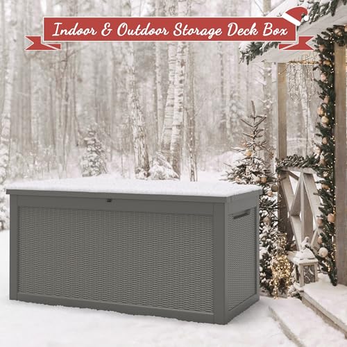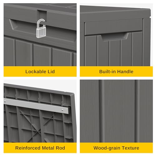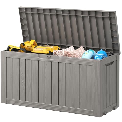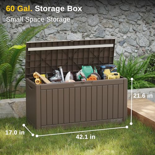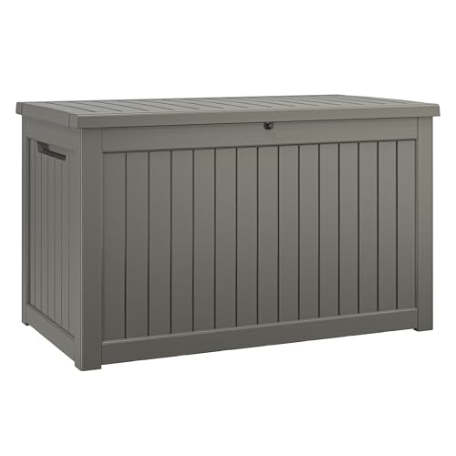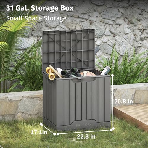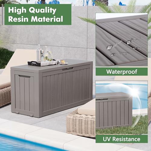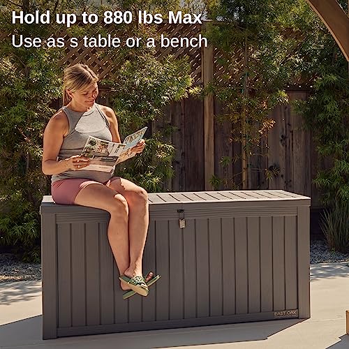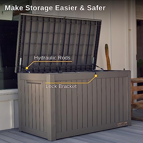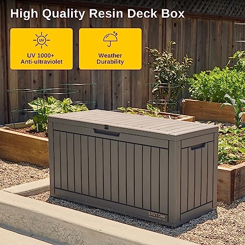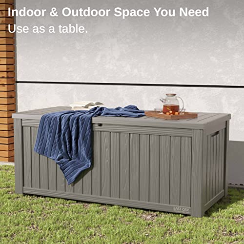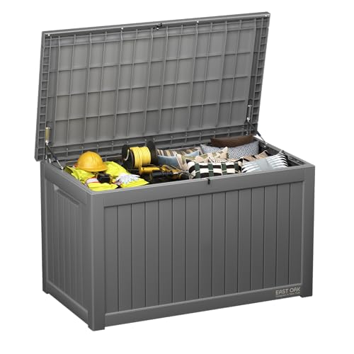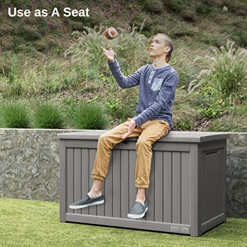 EAST OAK Outdoor Storage Box, 60 Gallon Deck Box Indoor and Outdoor Use, Waterproof Resin Storage Bin for Patio Cushions, Gardening Tools, Lockable, UV Resistant, Grey