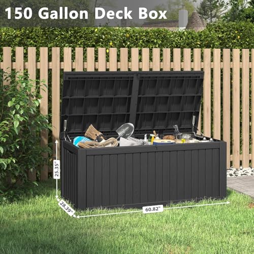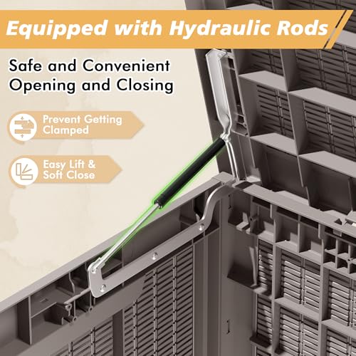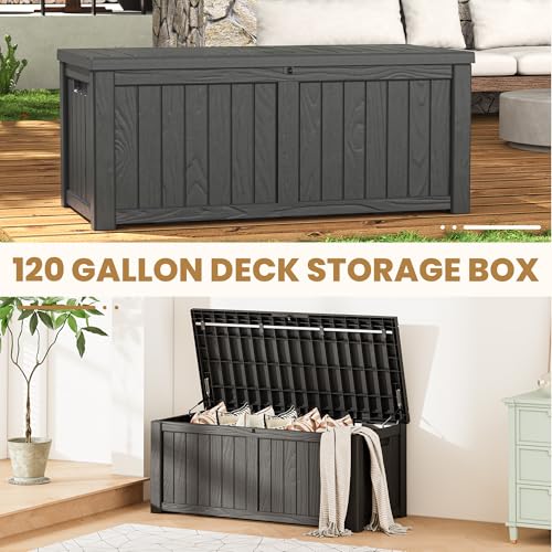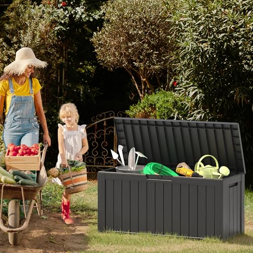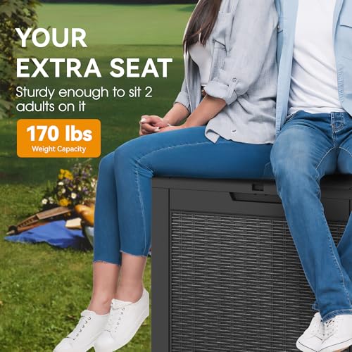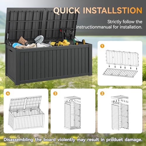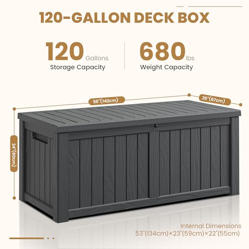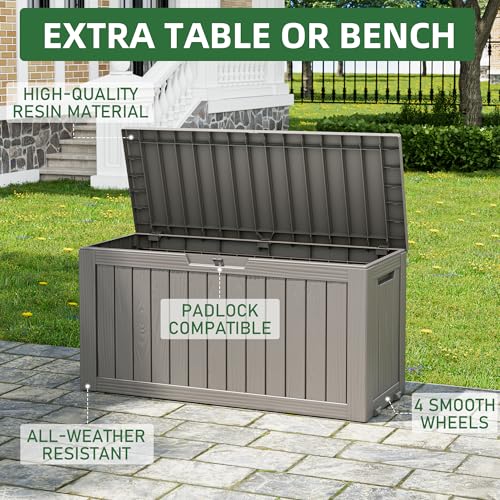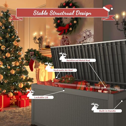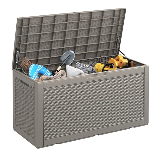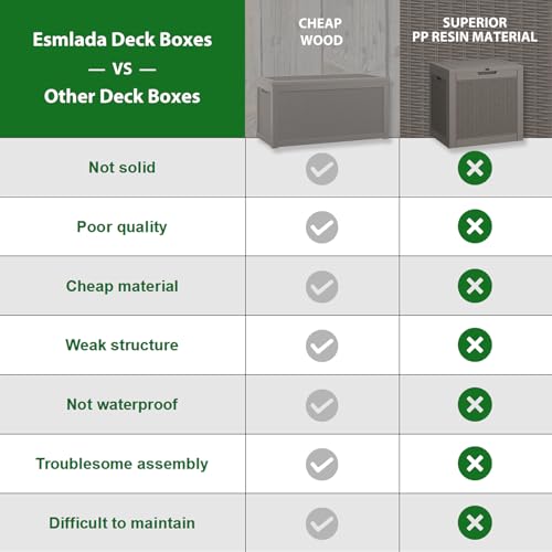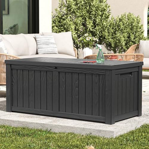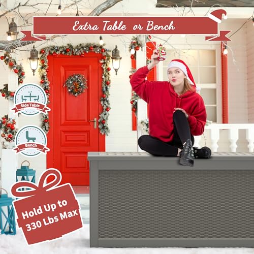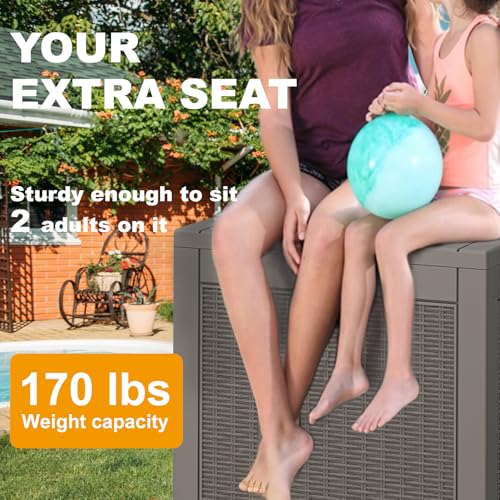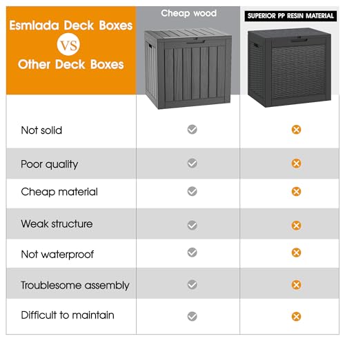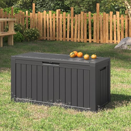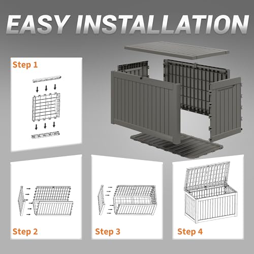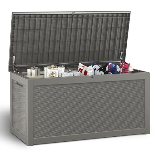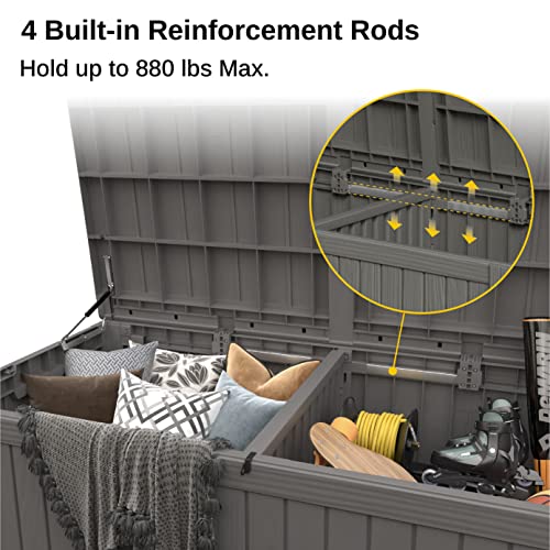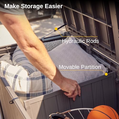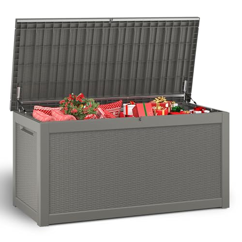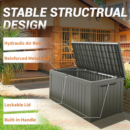 EAST OAK Outdoor Storage Box, 60 Gallon Deck Box Indoor and Outdoor Use, Waterproof Resin Storage Bin for Patio Cushions, Gardening Tools, Lockable, UV Resistant, Grey