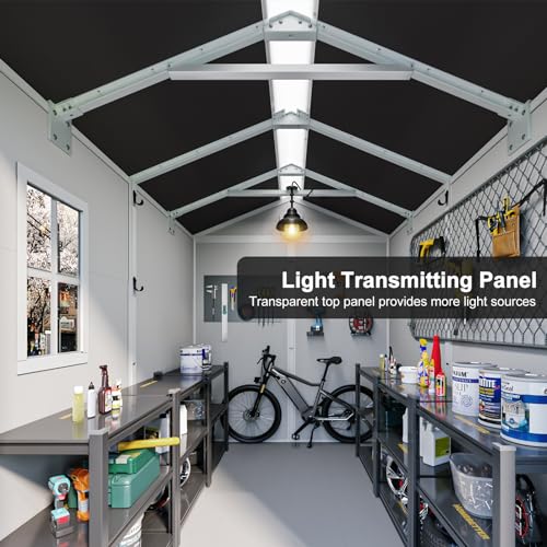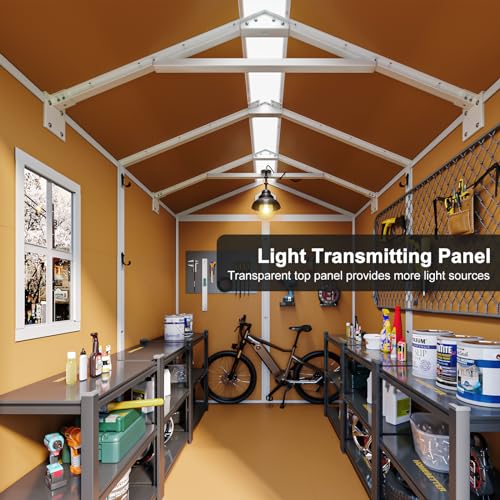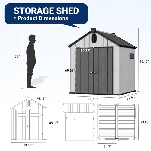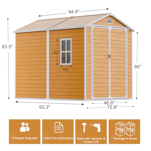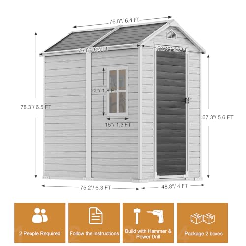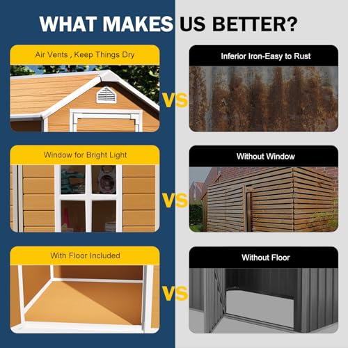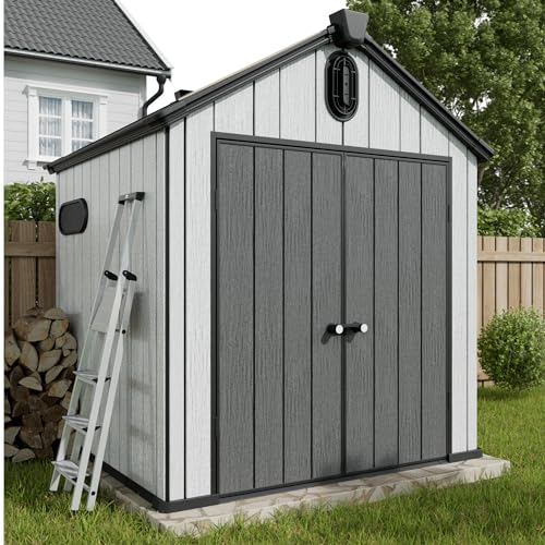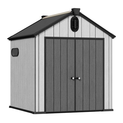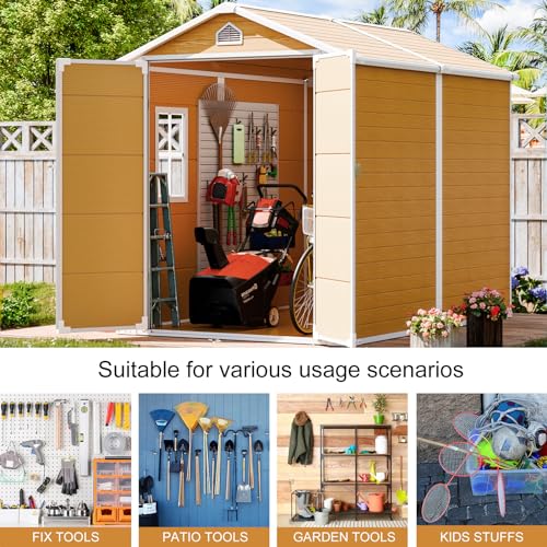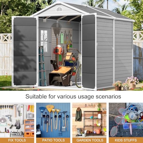 6x6 FT Outdoor Resin Storage Shed, Plastic Shed w/Air Vents & Window for All Weather Resistant, with Floor & Lockable Door, Waterproof for Bike, Garbage Cans, Tools