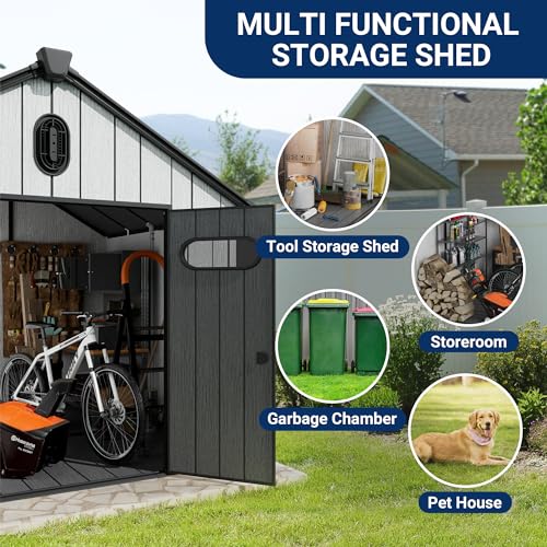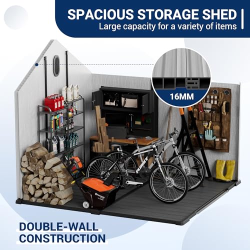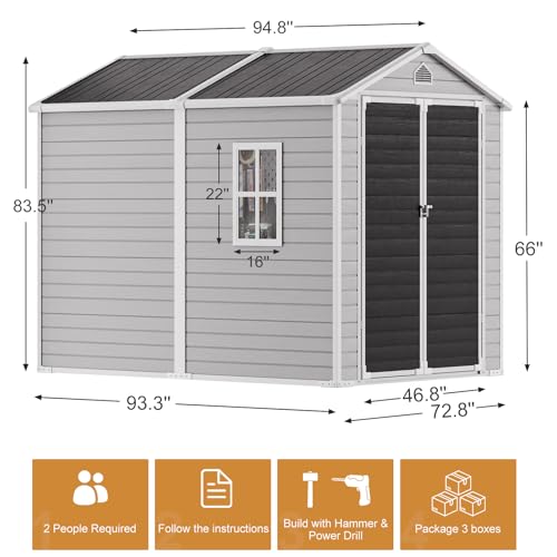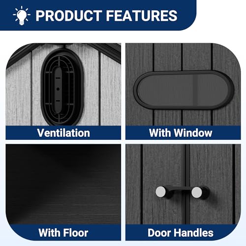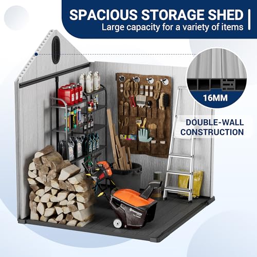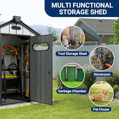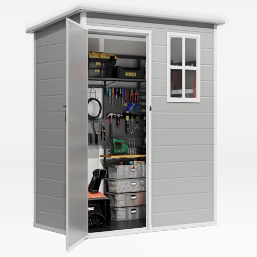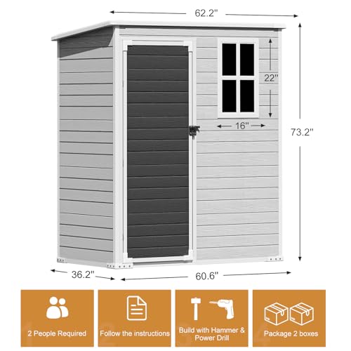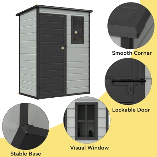 Gizoon 5x3 FT Resin Storage Shed Outdoor, Heavy-Duty Resin Shed with Floor for Patio, Lawn, Plastic Garden Sheds Weather-Resistant with Lockable Door for Patio Furniture, Garden Tools, Grey