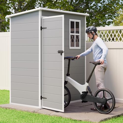 Outdoor Resin Storage Shed with Floor Included 5x3 FT, Waterproof Outside Sheds with Window Lockable Door, Plastic Sheds for Backyard Garden Patio Lawn Tools, Gray