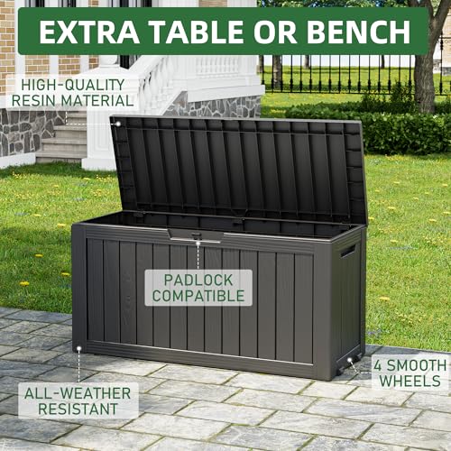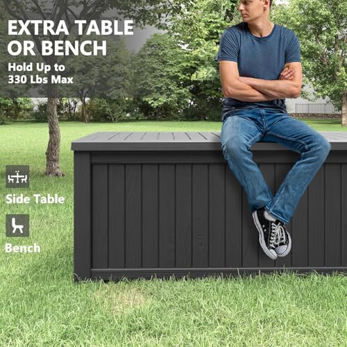 NUNU LAB 31 Gallon Outdoor Storage Box Waterproof,Indoor Outside Deck Box,Backyard Storage Bin For Package Delivery,Garden Tools,Patio Cushions,Pool Accessories,Storage Bench Lockable Lid
