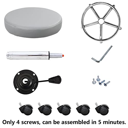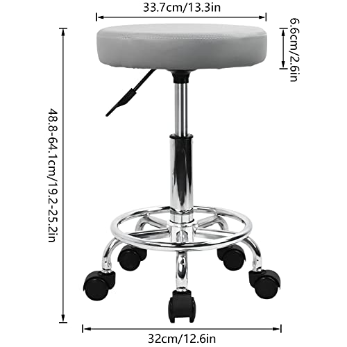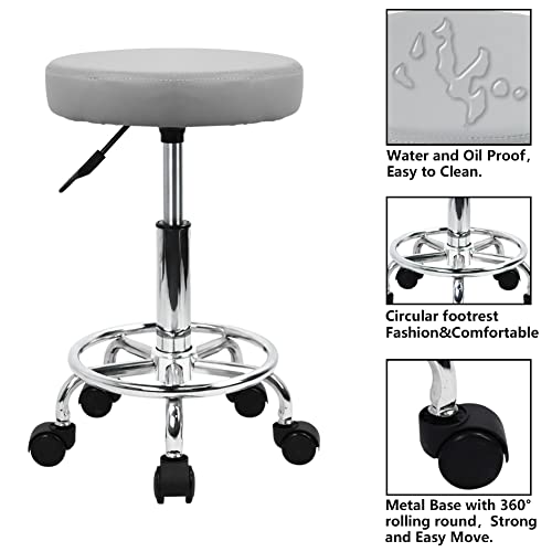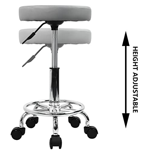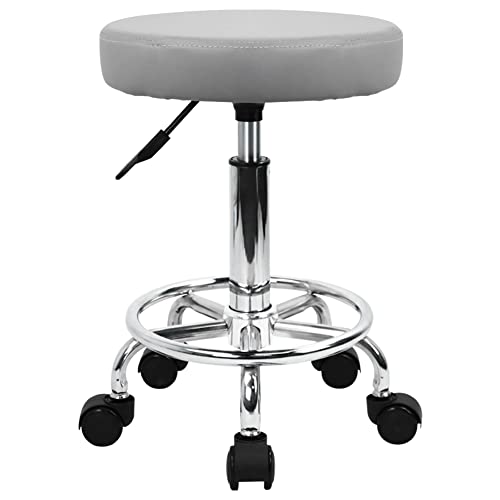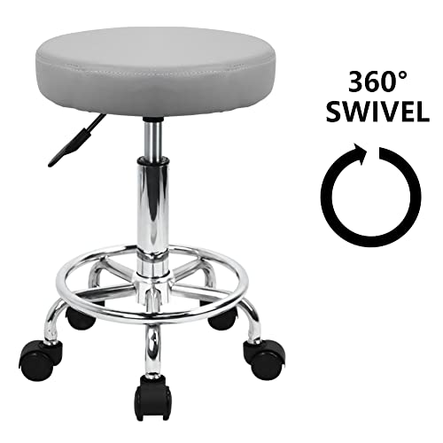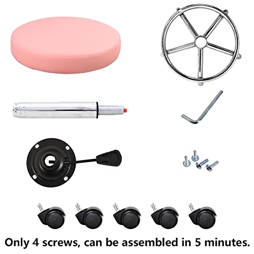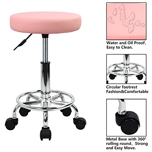 KKTONER PU Leather Round Rolling Stool with Foot Rest Swivel Height Adjustment Spa Drafting Salon Tattoo Work Office Massage Stools Task Chair (Pink)