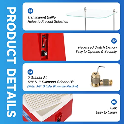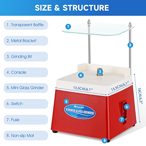 Mxmoonant Stained Glass Grinder with 5/8’’ & 1’’ Diamond Grinder Bits & Baffle, 4200r Mini DIY Grinding Tool Kit for Shaping Ceramic Glass (Red)