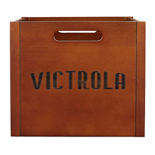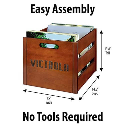 Victrola Wooden Record Crate – Tabletop Vinyl Album Holder, No-Tool Assembly, Holds Over 50 Records, Real Wood Construction, Elegant Design (Espresso)