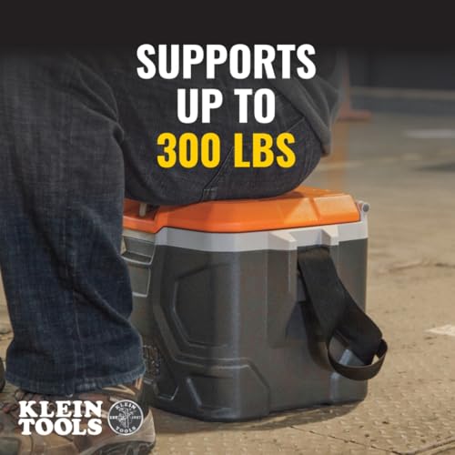 Klein Tools 55600 Work Cooler, 17-Quart Lunch Box Holds 18 Cans, Keeps Cool 30 Hours, Seats 300 Lb, Tradesman Pro Tough Box