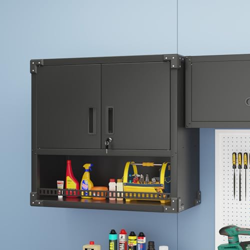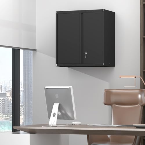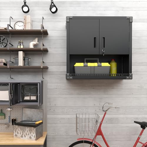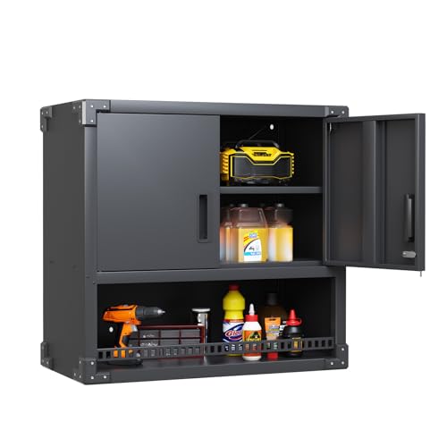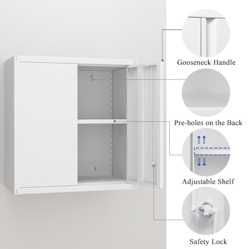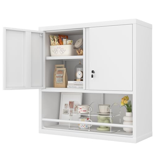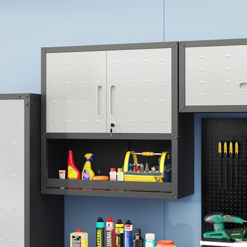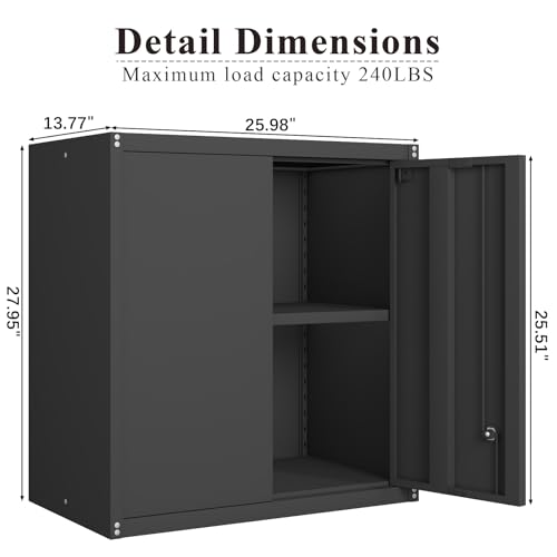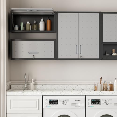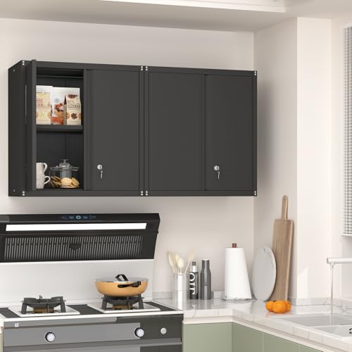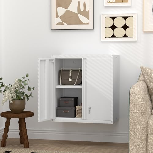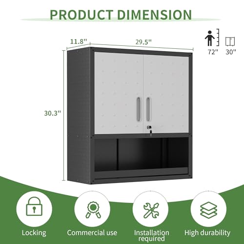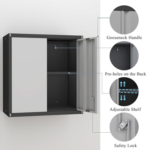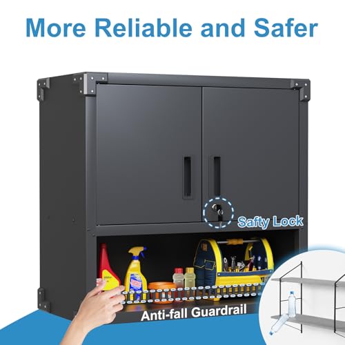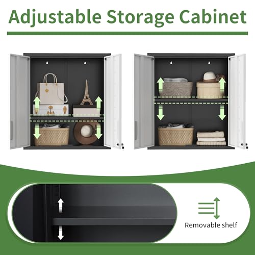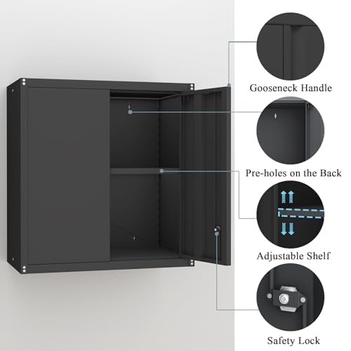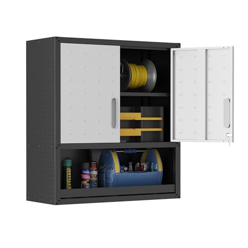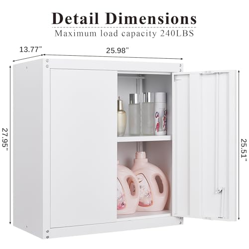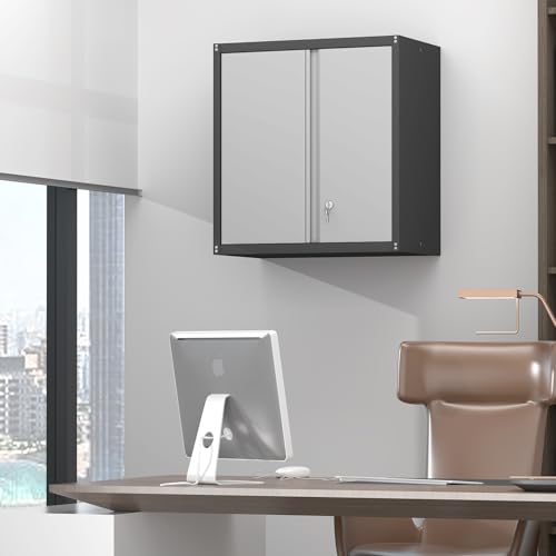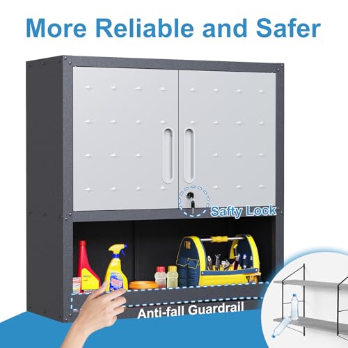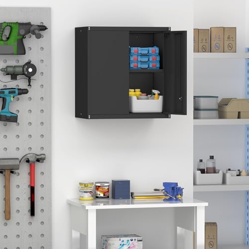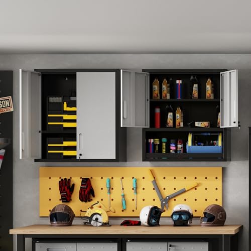 Garage Storage Cabinet Wall Cabinet with 2 Doors,Lockable Tool Cabinets Wall Mounted with Adjustale Shelves,Heavy Duty Steel Hanging Cabinets for Warehouse Kitchen Laundry,Assembly Required