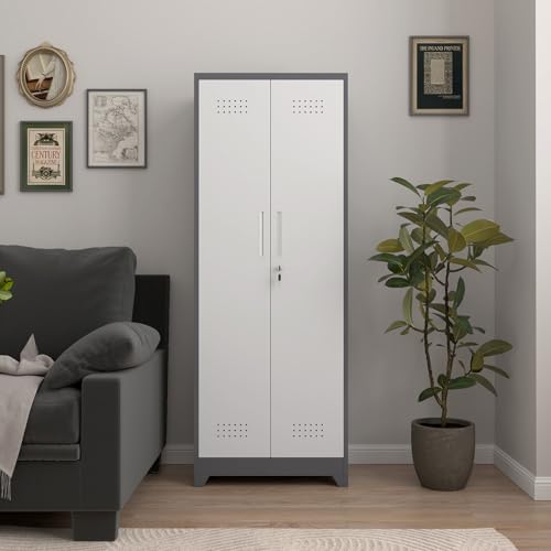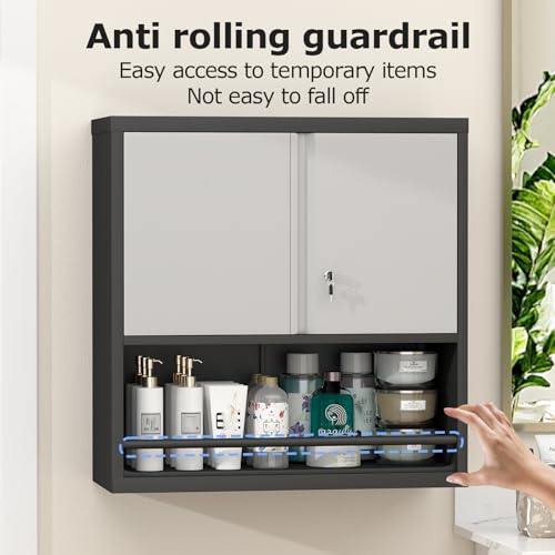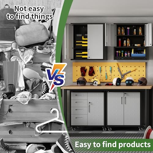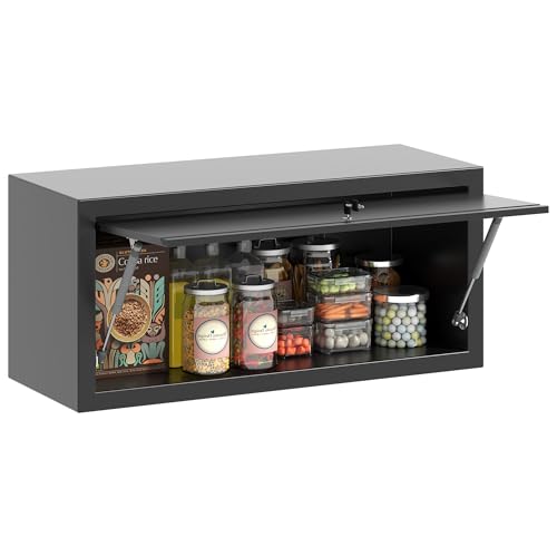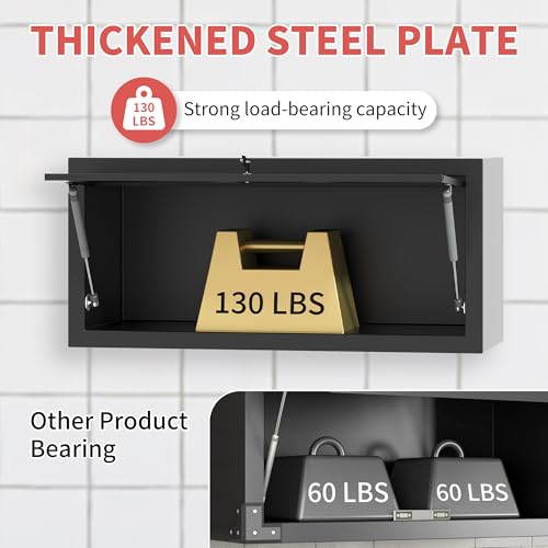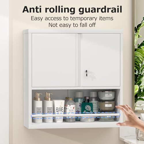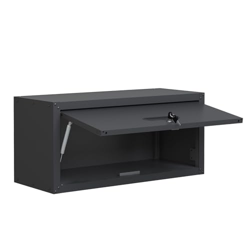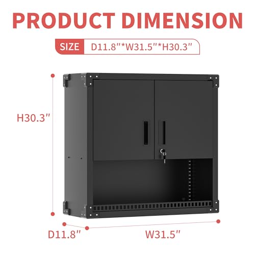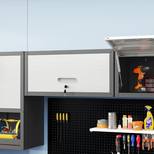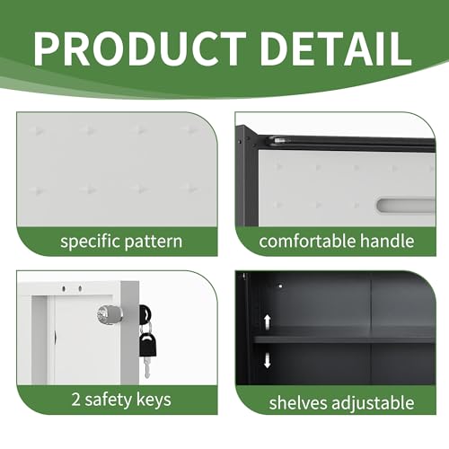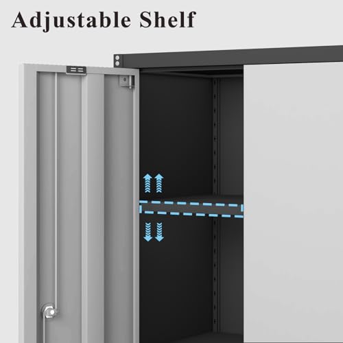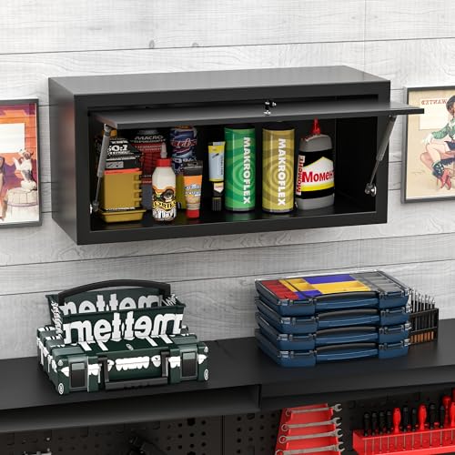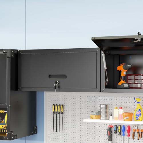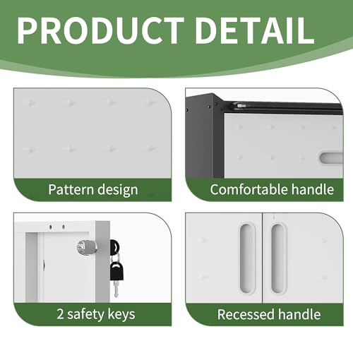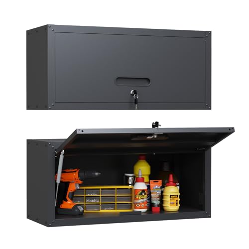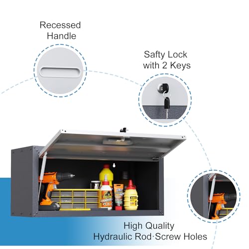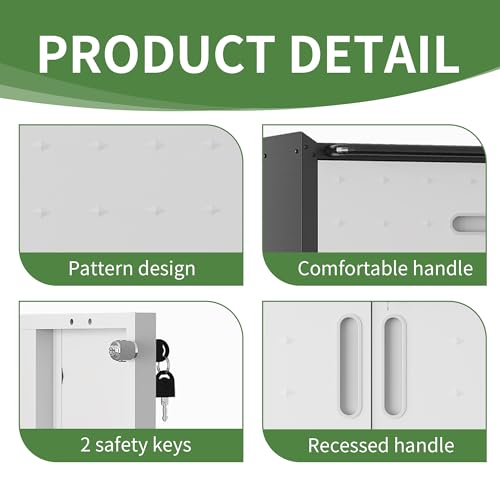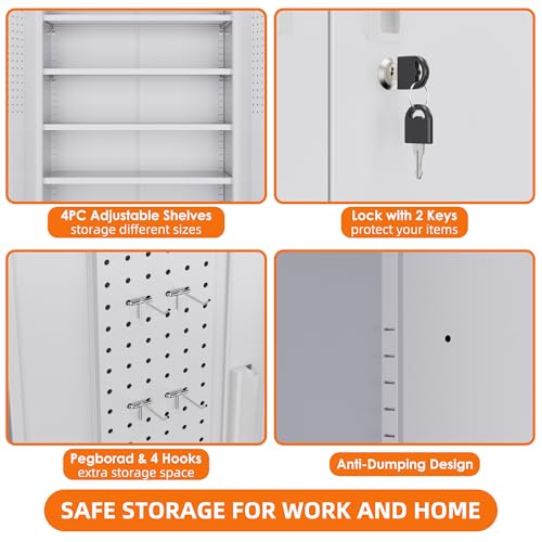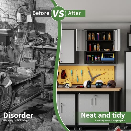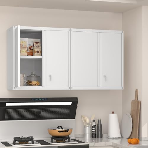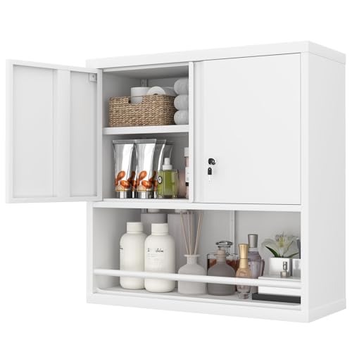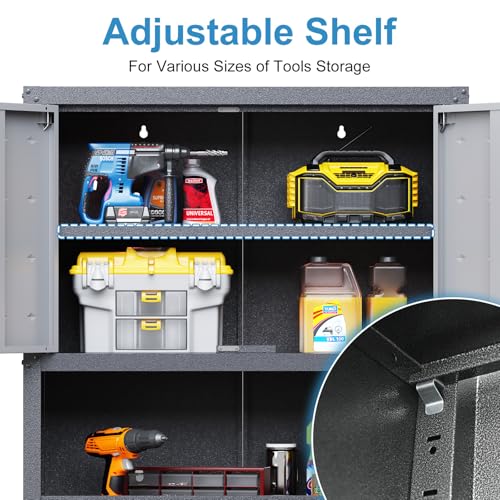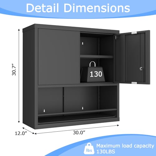 Garage Storage Cabinet Wall Cabinet with 2 Doors,Lockable Tool Cabinets Wall Mounted with Adjustale Shelves,Heavy Duty Steel Hanging Cabinets for Warehouse Kitchen Laundry,Assembly Required