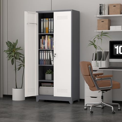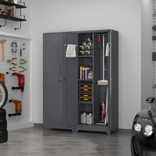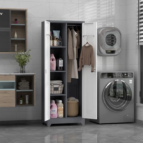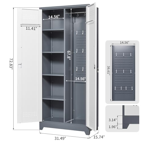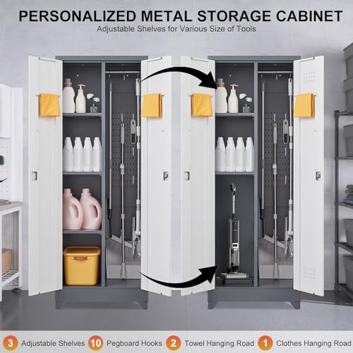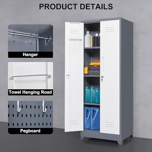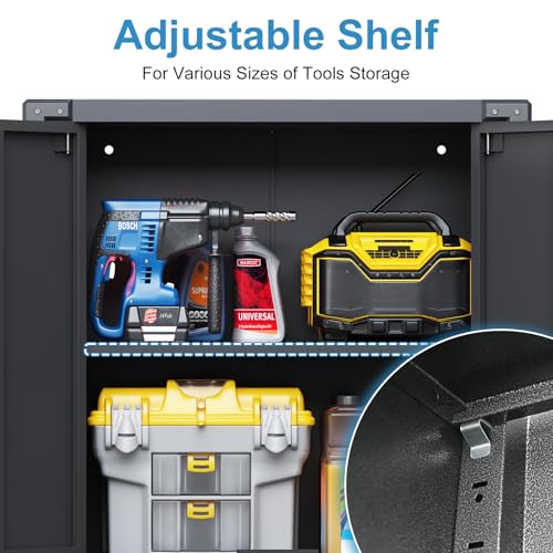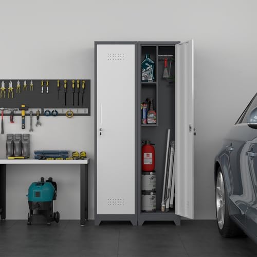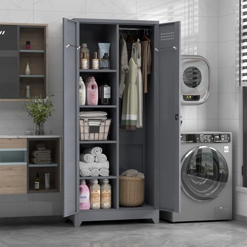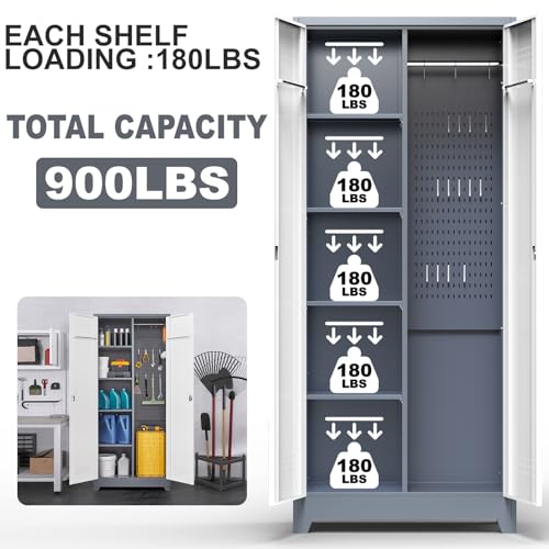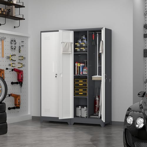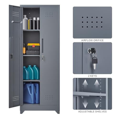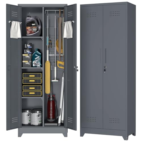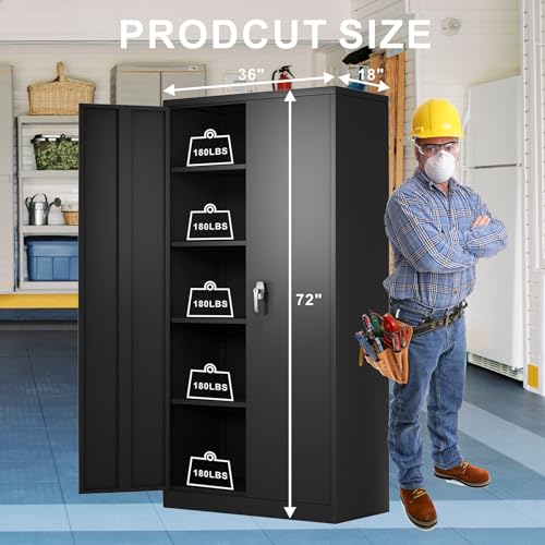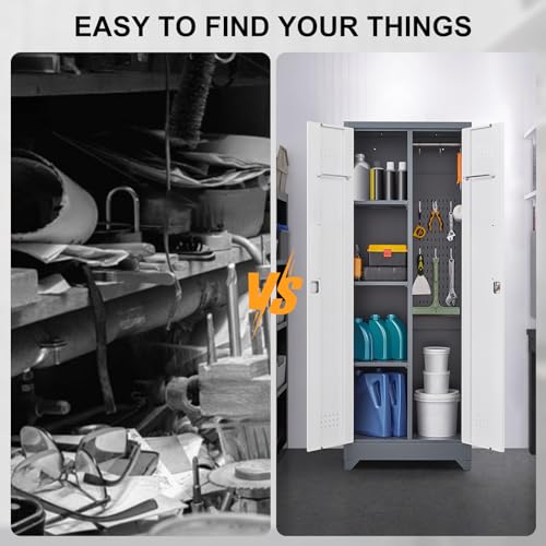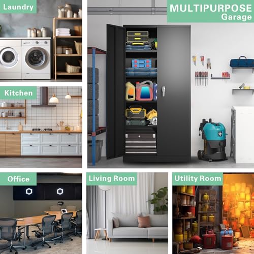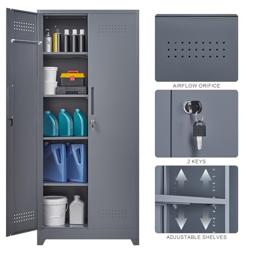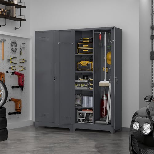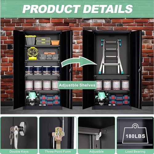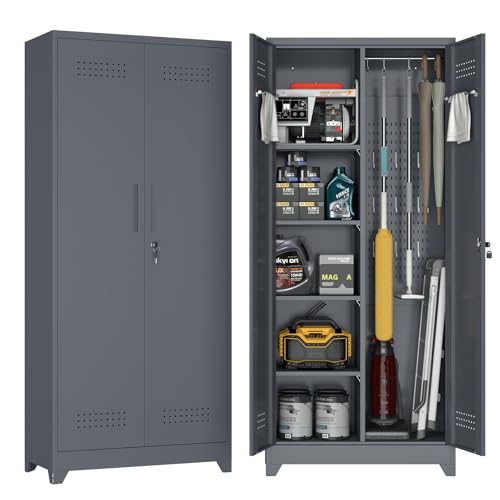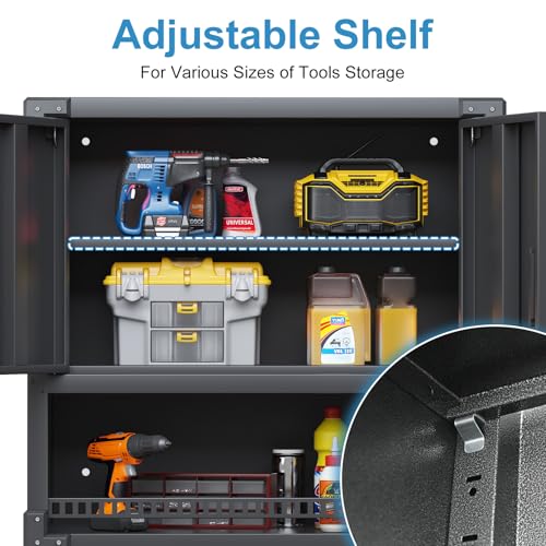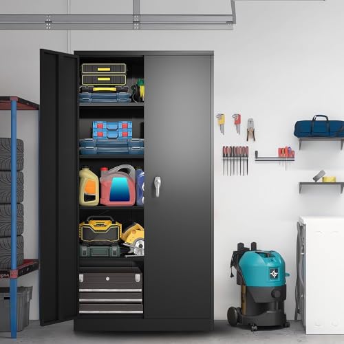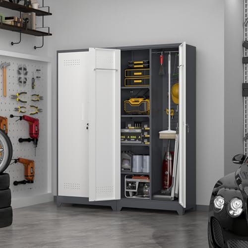 Metal Garage Storage Cabinet, Tall Garage Cabinets with 5 Adjustable Shelves, Steel Tool Storage Cabinet with Wheels,Lockable Heavy Duty Metal Cabinets for Home, Warehouse,Basement