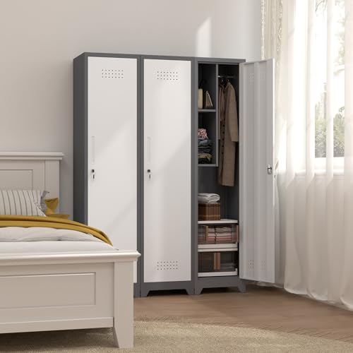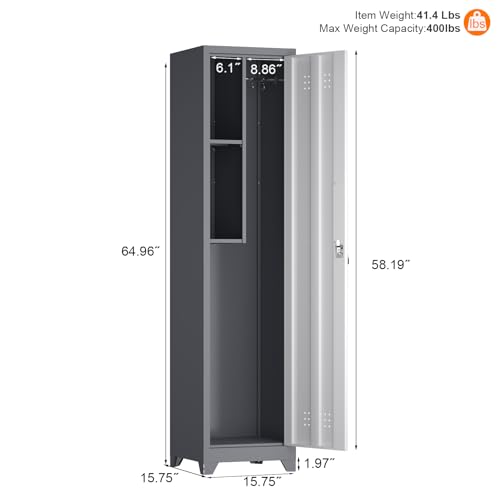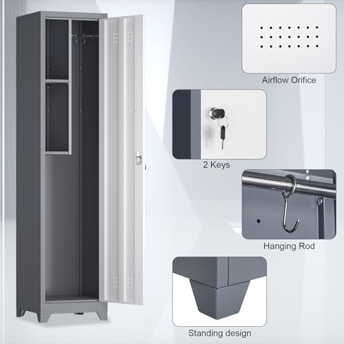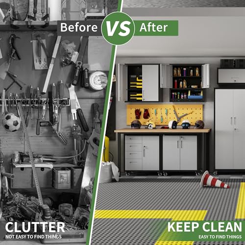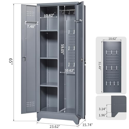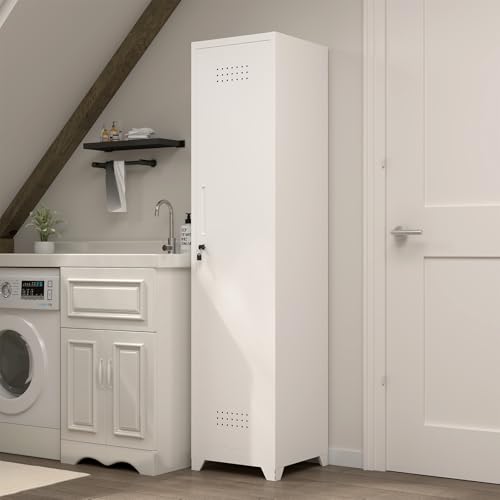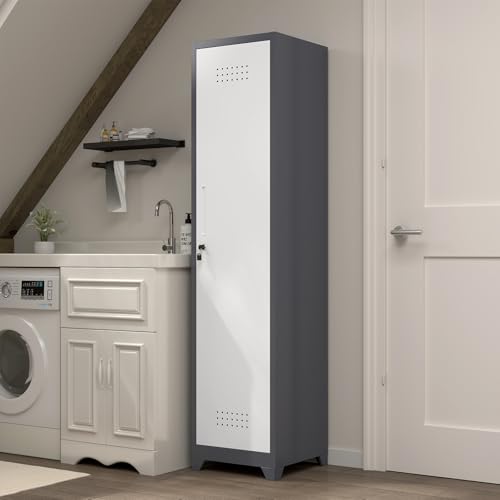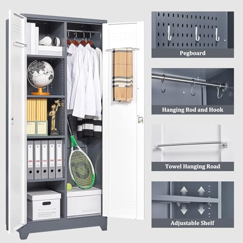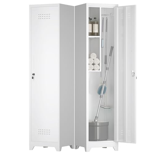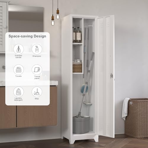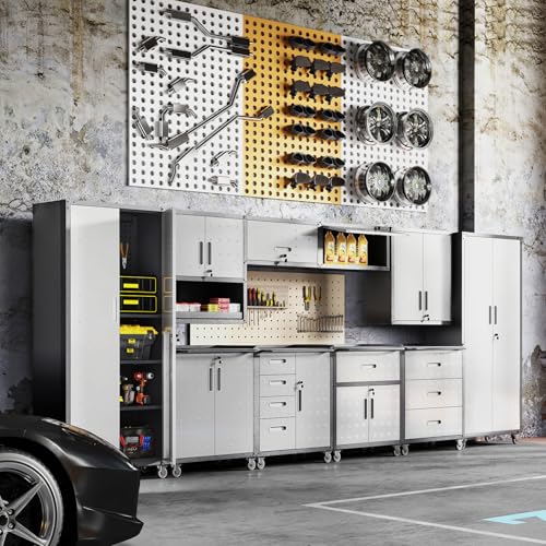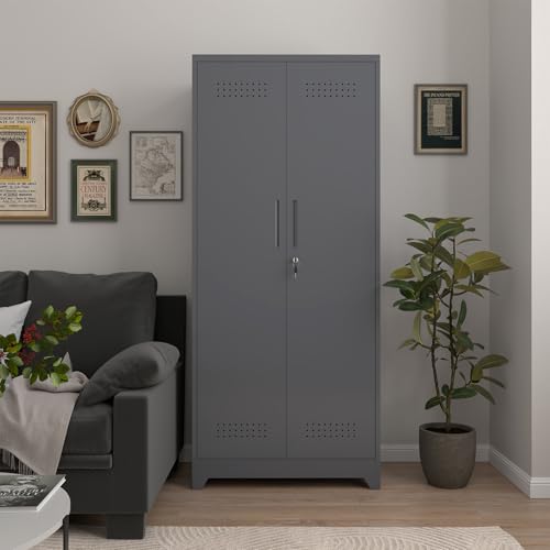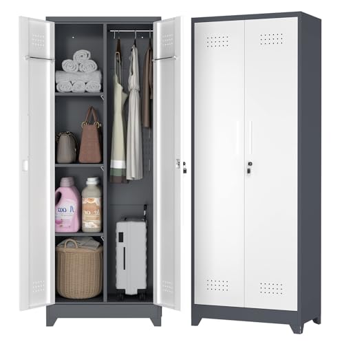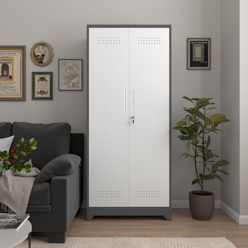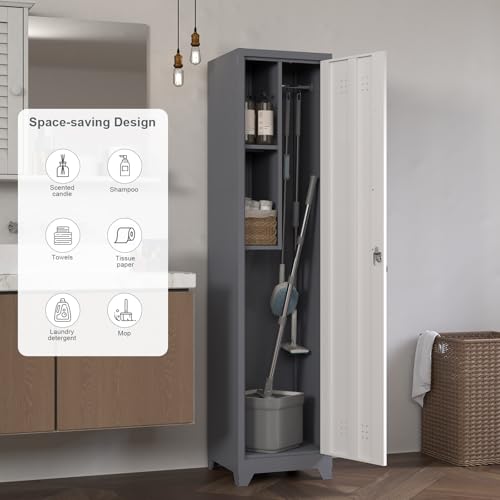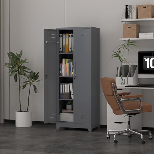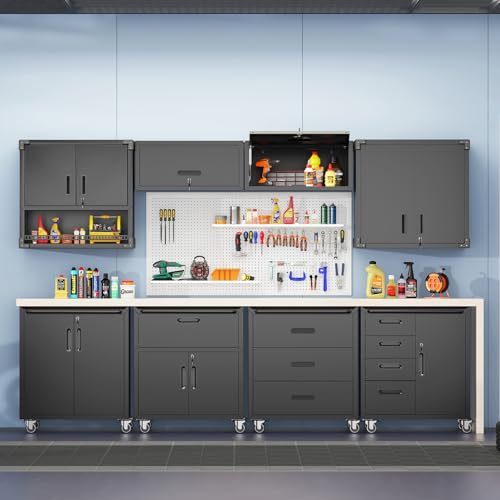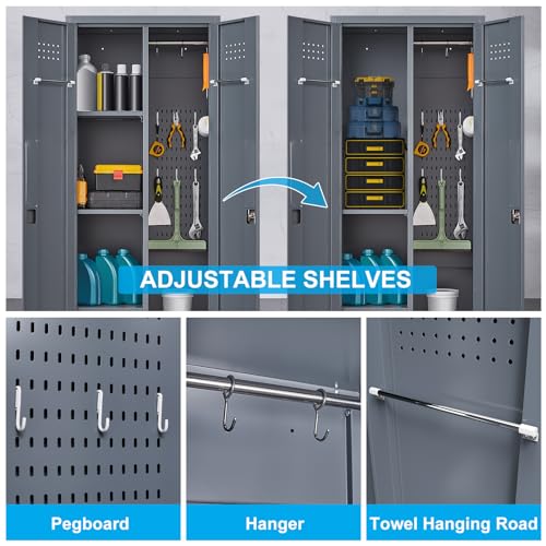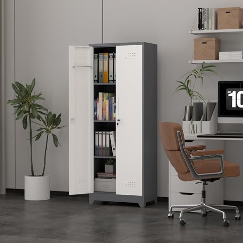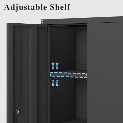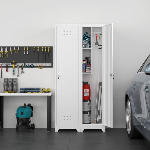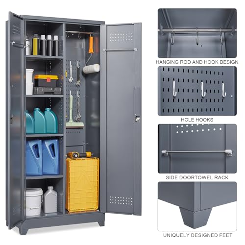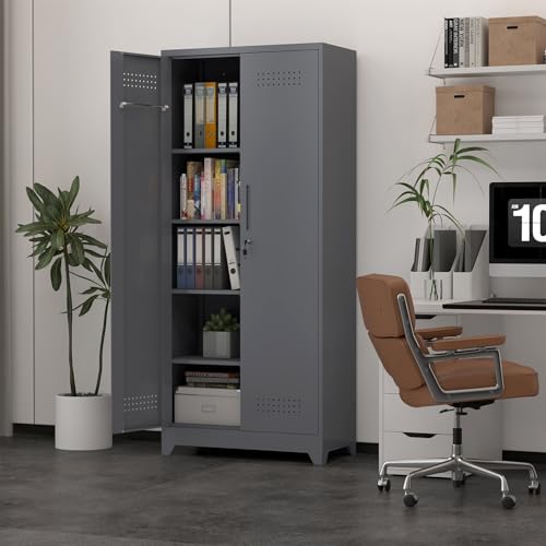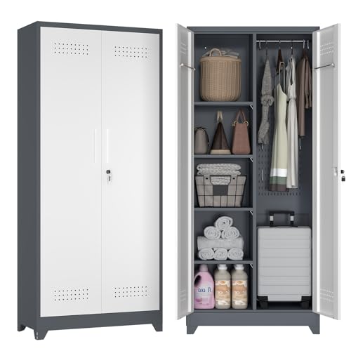 Metal Garage Storage Cabinet, Tall Garage Cabinets with 5 Adjustable Shelves, Steel Tool Storage Cabinet with Wheels,Lockable Heavy Duty Metal Cabinets for Home, Warehouse,Basement