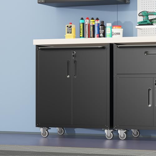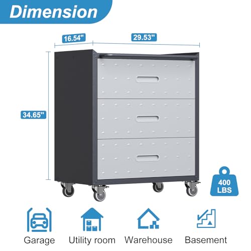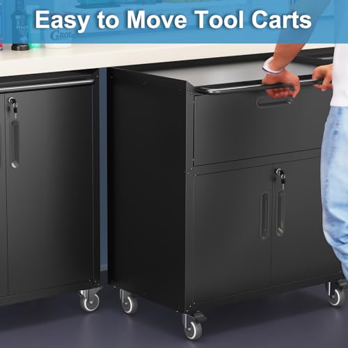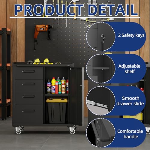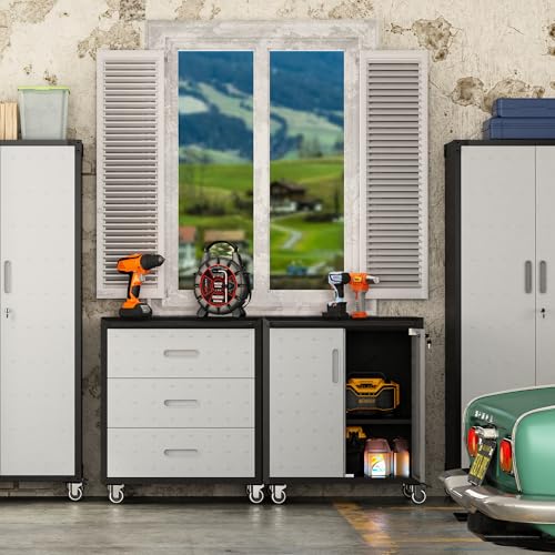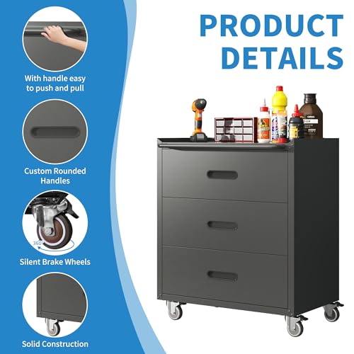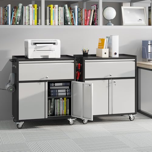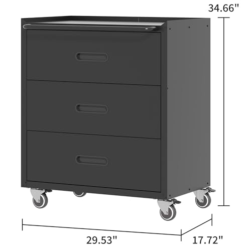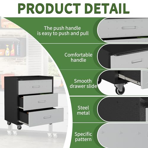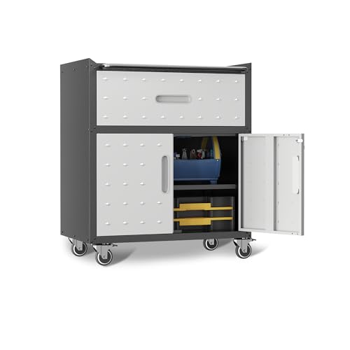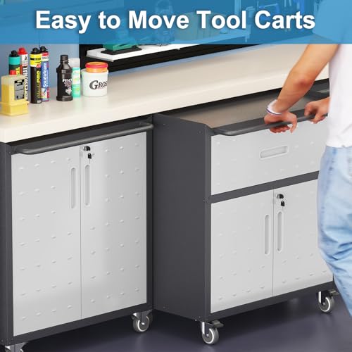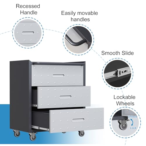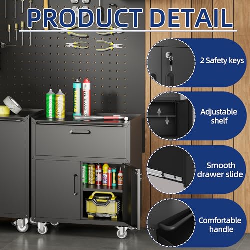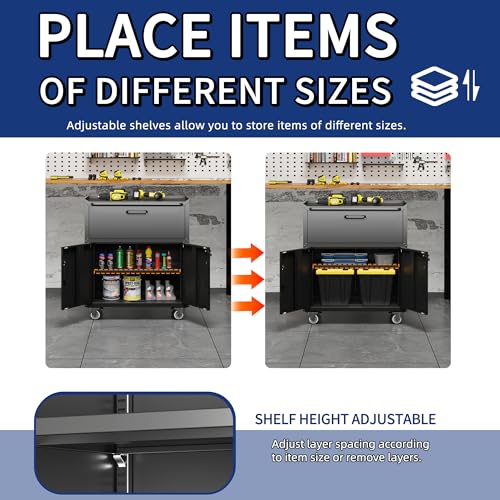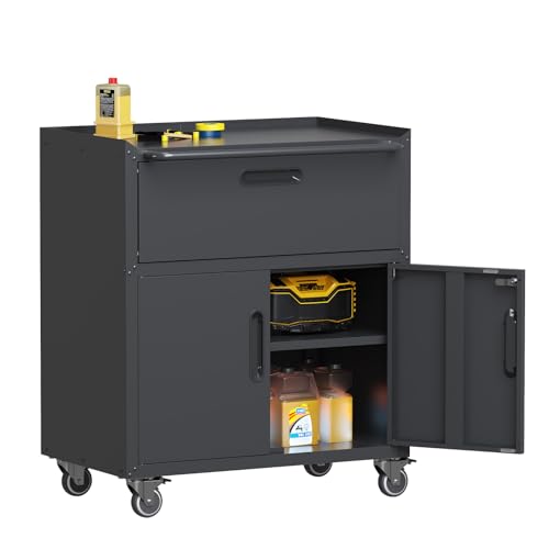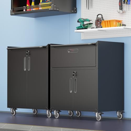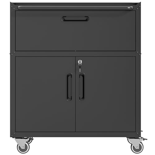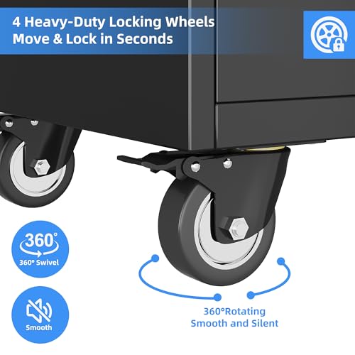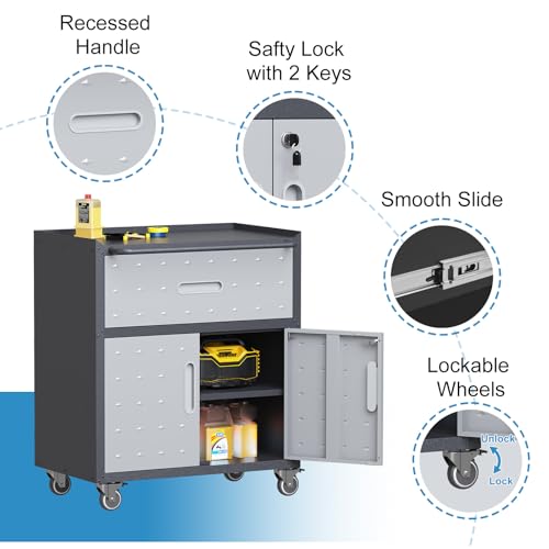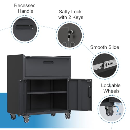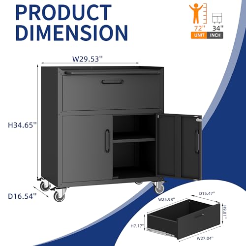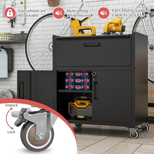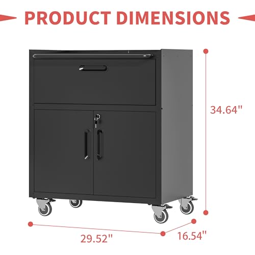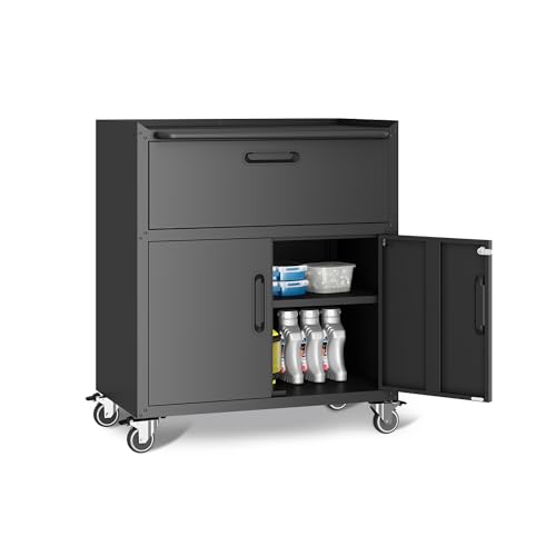 Metal Garage Storage Cabinet with Wheels,Locking Rolling Tool Cabinet with Drawers and Shelves for Home, Office, Garage & Workshop