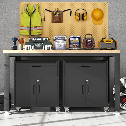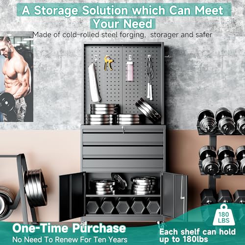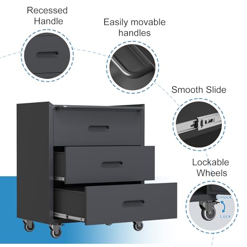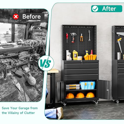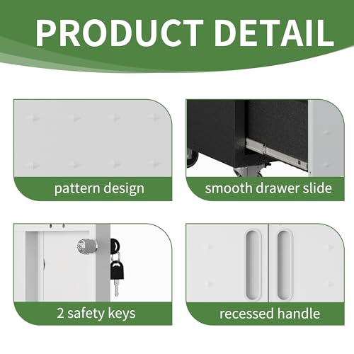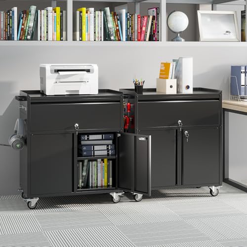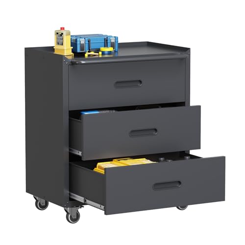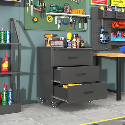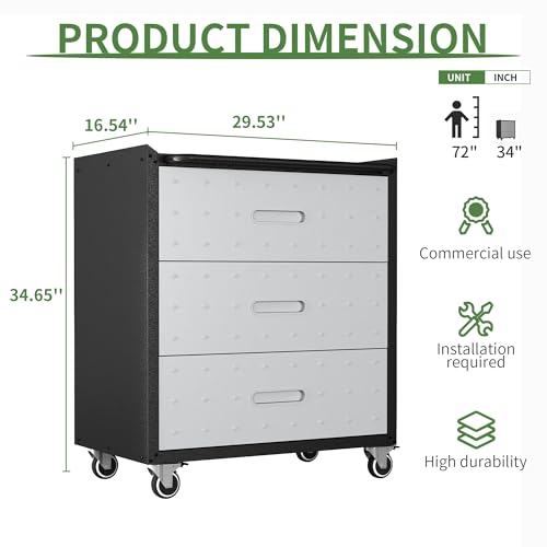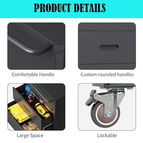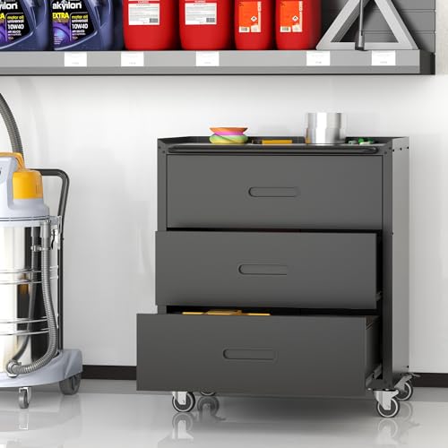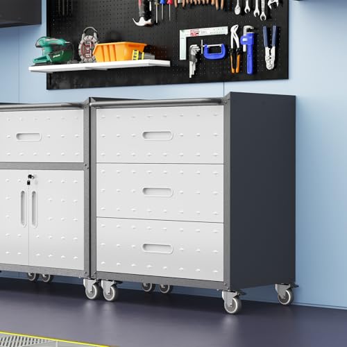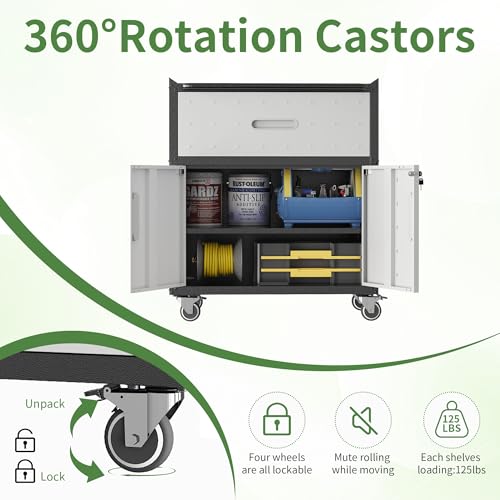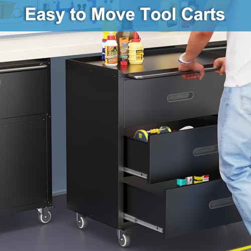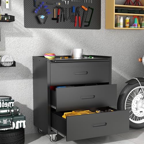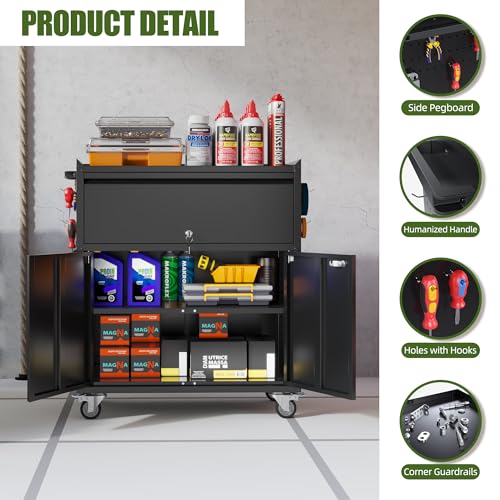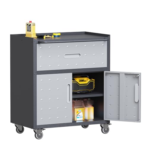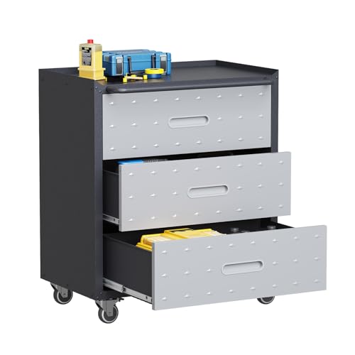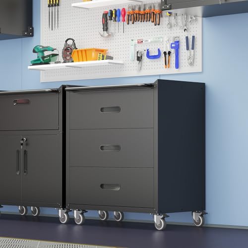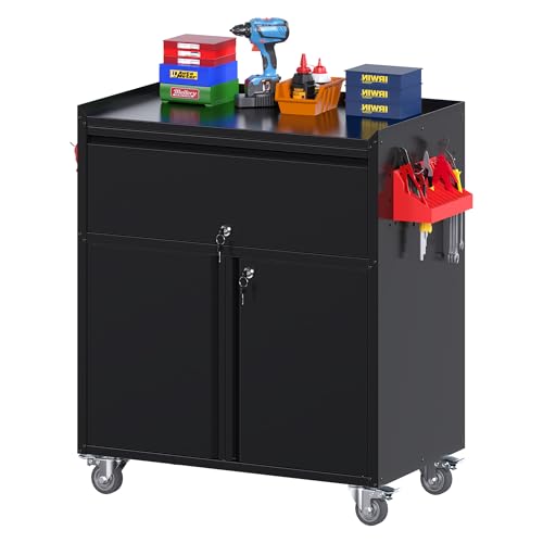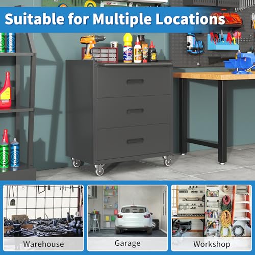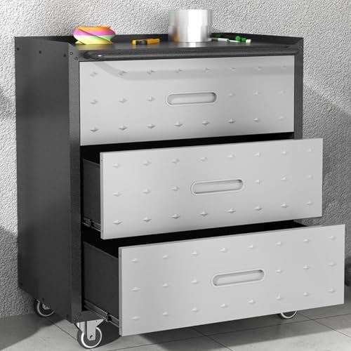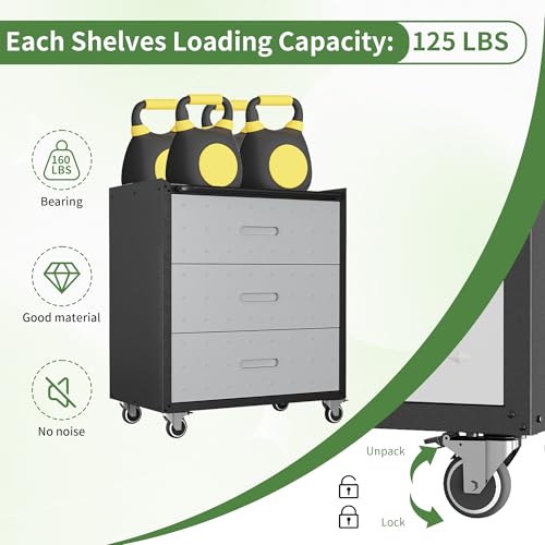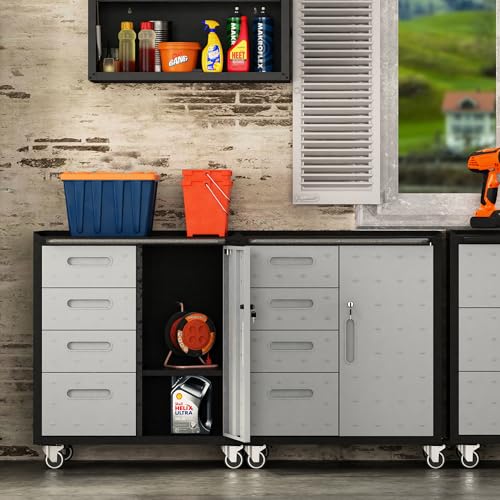 Metal Garage Storage Cabinet with Wheels,Locking Rolling Tool Cabinet with Drawers and Shelves for Home, Office, Garage & Workshop