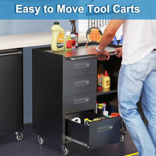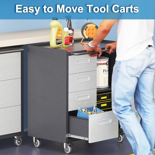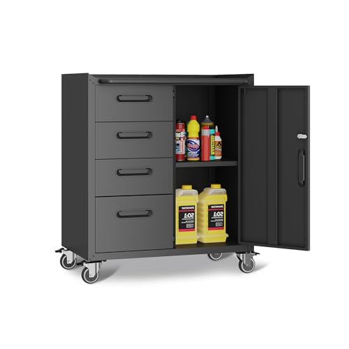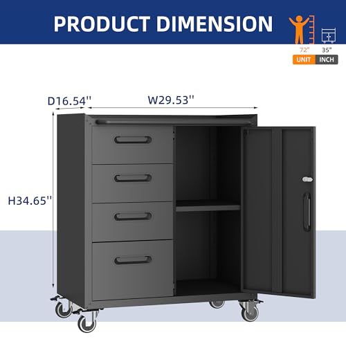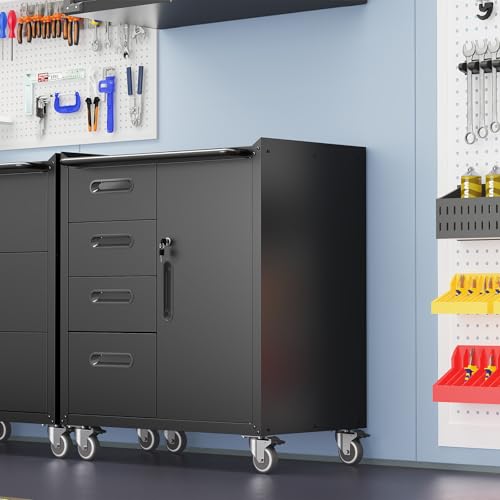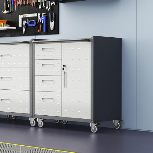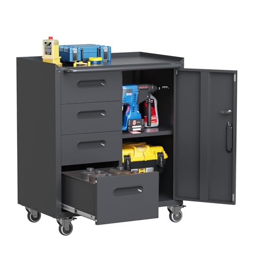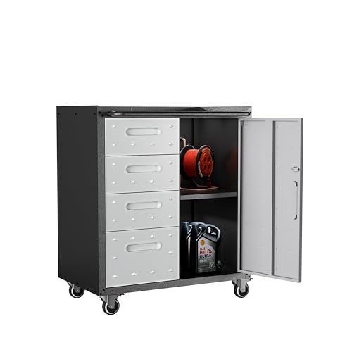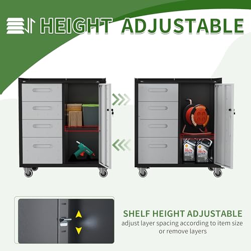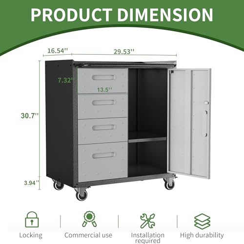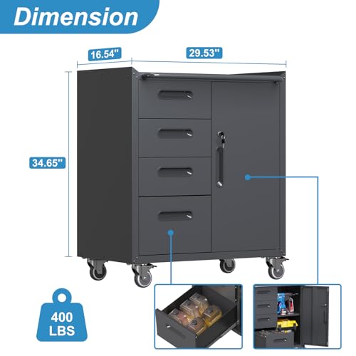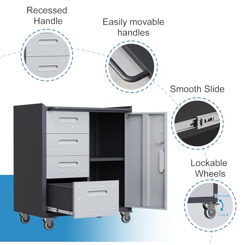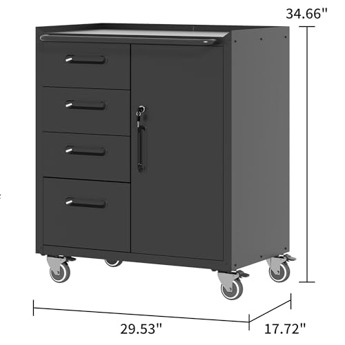 Mobile Tool Storage Cabinet with Wheels,Heavy Duty Rolling Tool Cabinets for Garage,Metal Storage Cabinets with 4 Drawer and 1 Locking Doors,Assembly Required