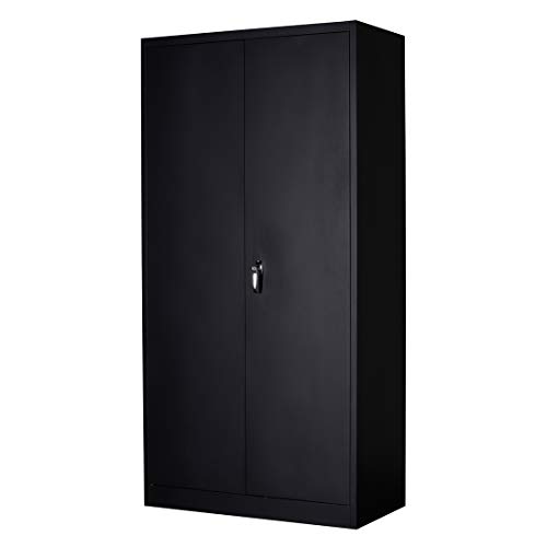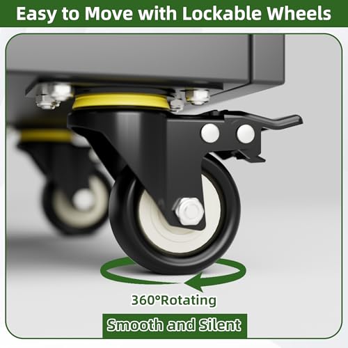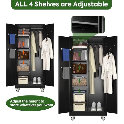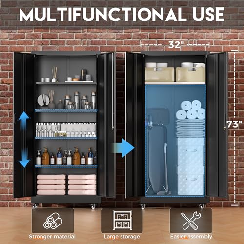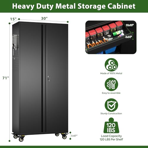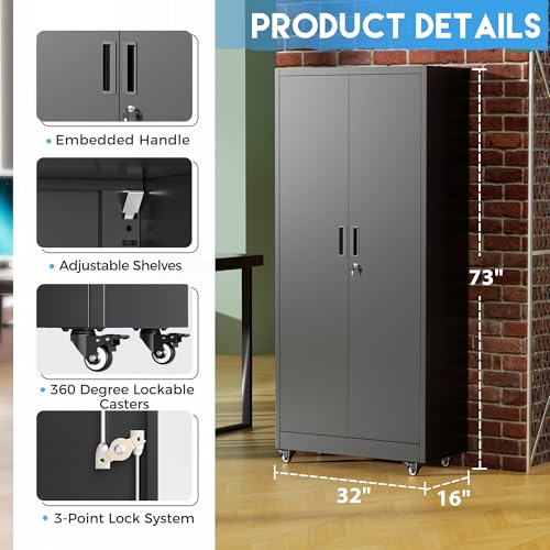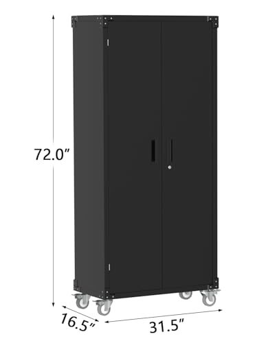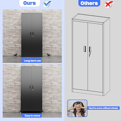 Greenvelly Metal Storage Cabinet with 4 Swivel Wheels,73” Black Garage Storage Cabinet with Wheels, Rolling Tool Cabinet with Locking Doors and Shelves for Home,Basement, Kitchen Pantry,Warehouse