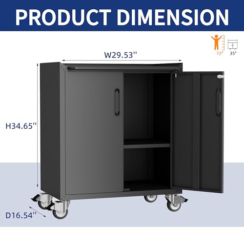 Locking Metal Cabinet with Door, 35.43" High Rolling Garage Storage Cabinet with Shelves, Tool Cabinets for Garage, Home, Office