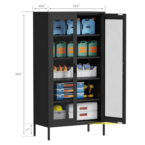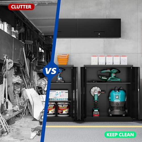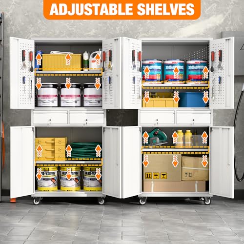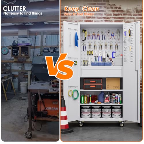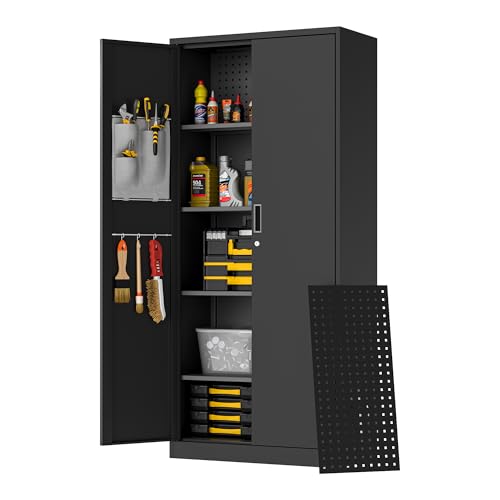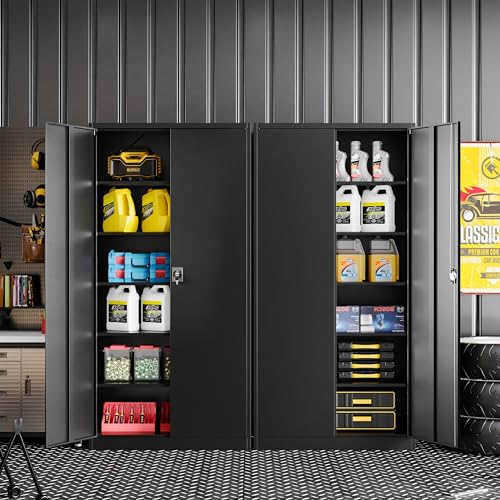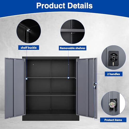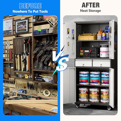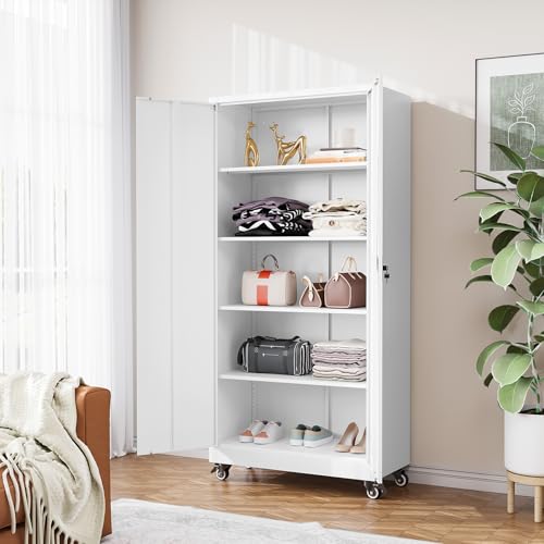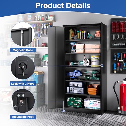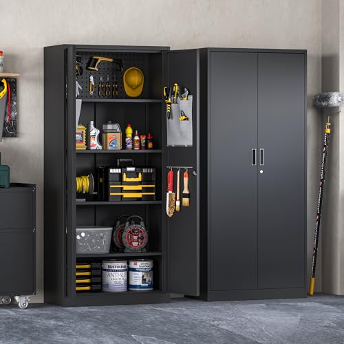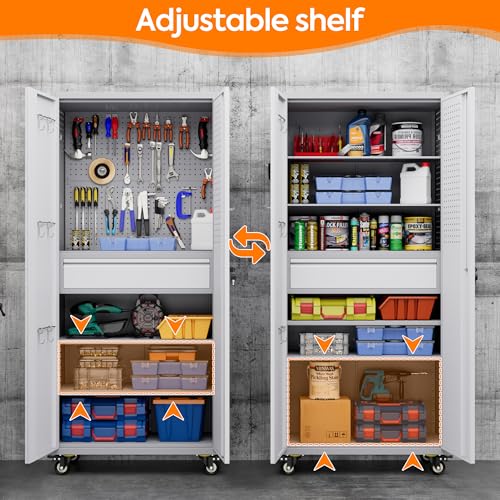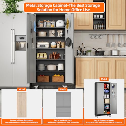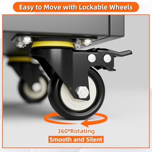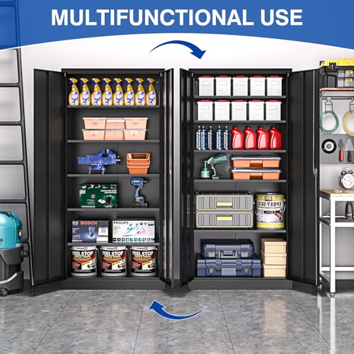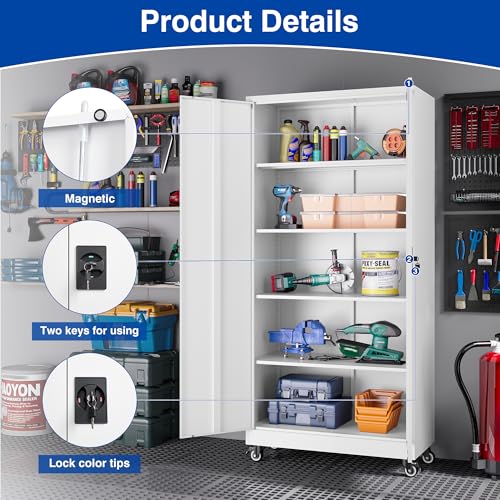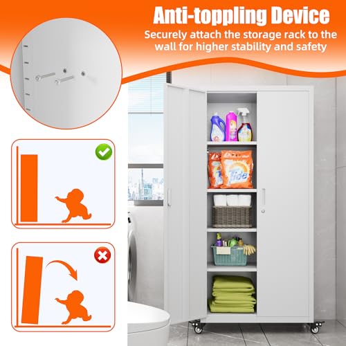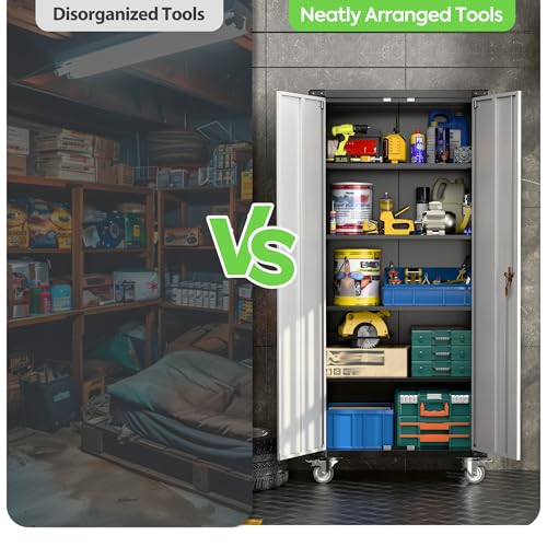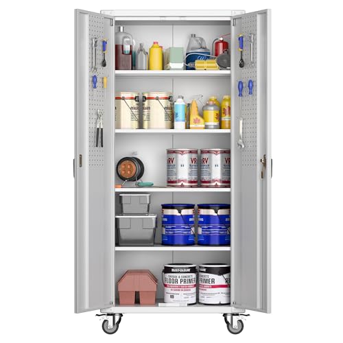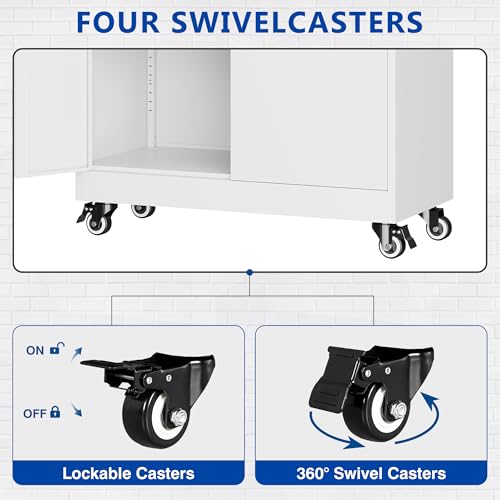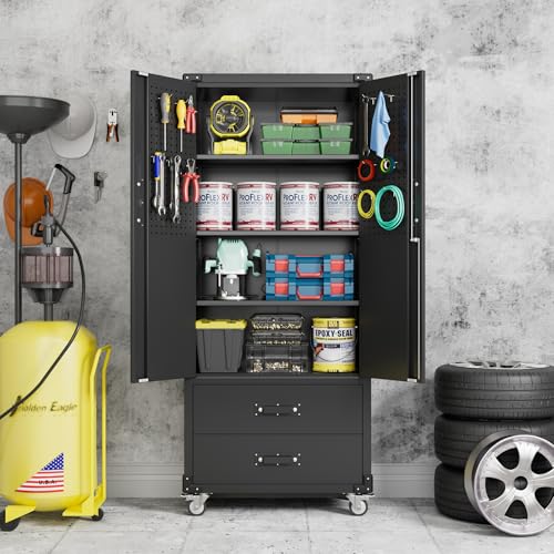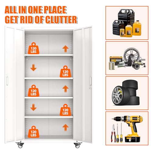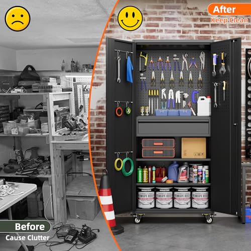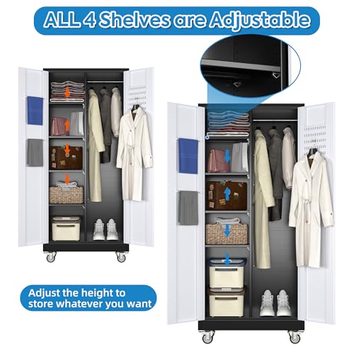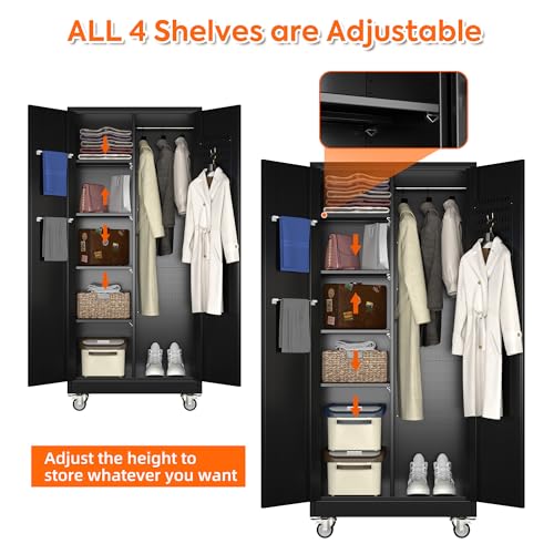 Metal Garage Storage Cabinet with Wheels,Metal Storage Cabinet with Adjustable Shelves,Steel Tool Cabinets with Locking Door for Home, School, Office, Garage (Black)