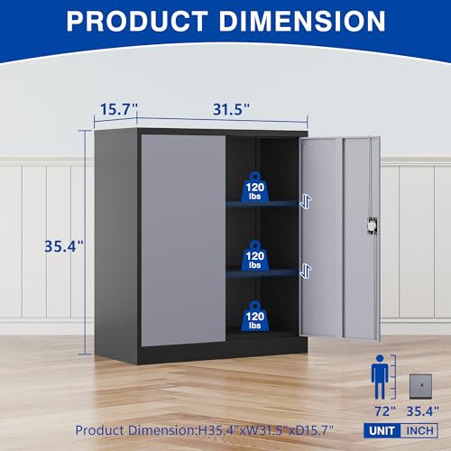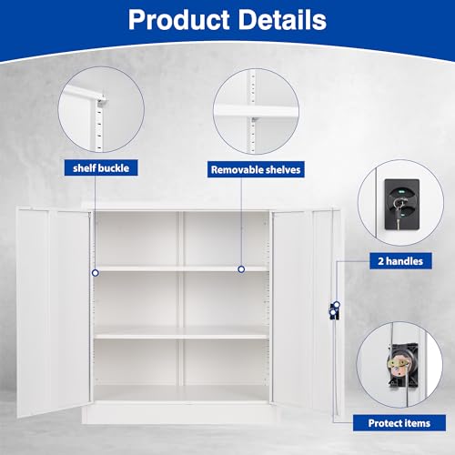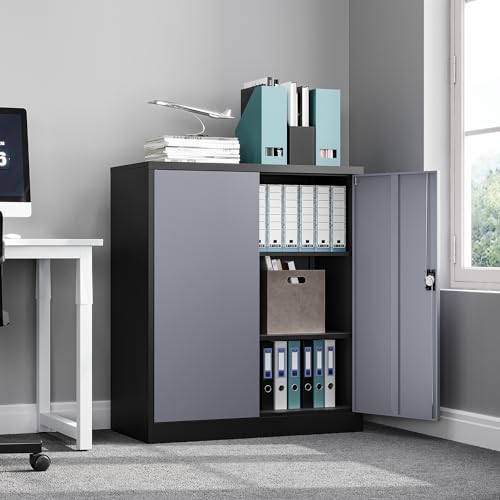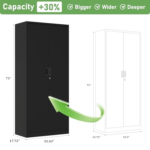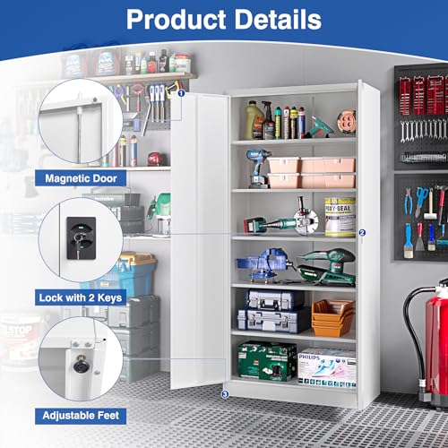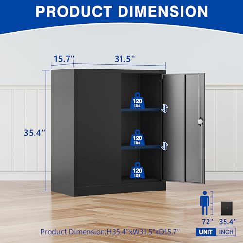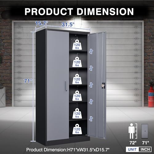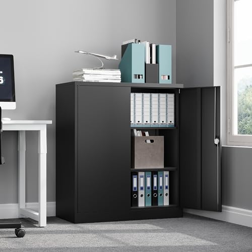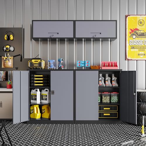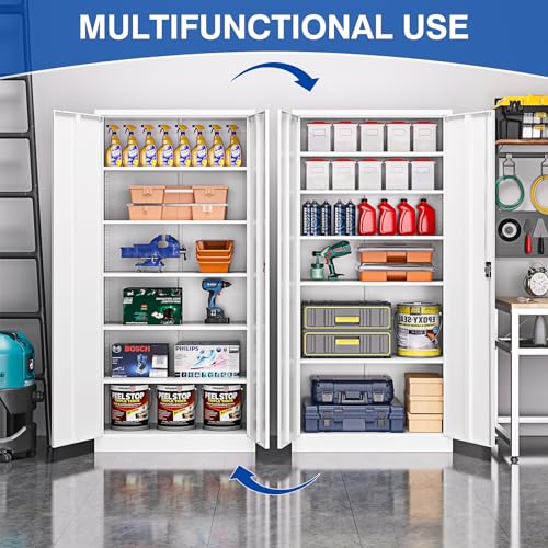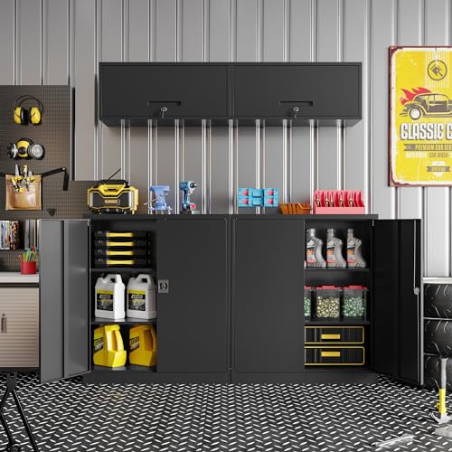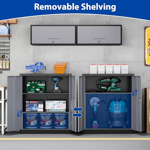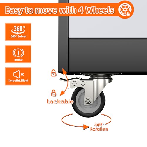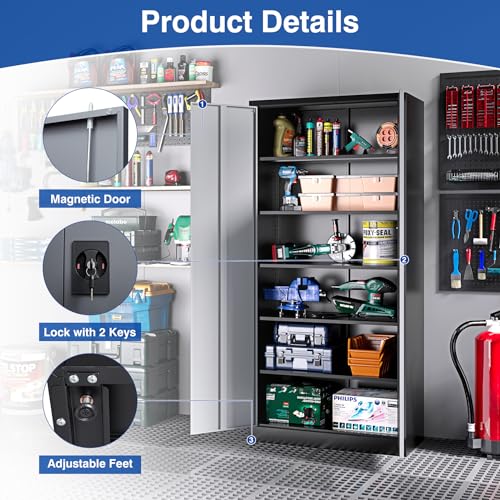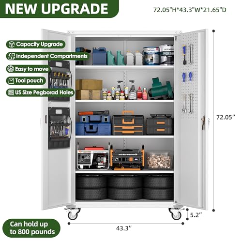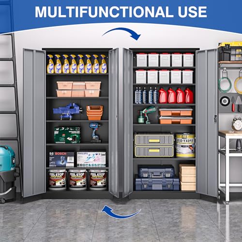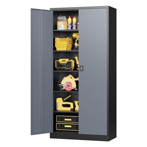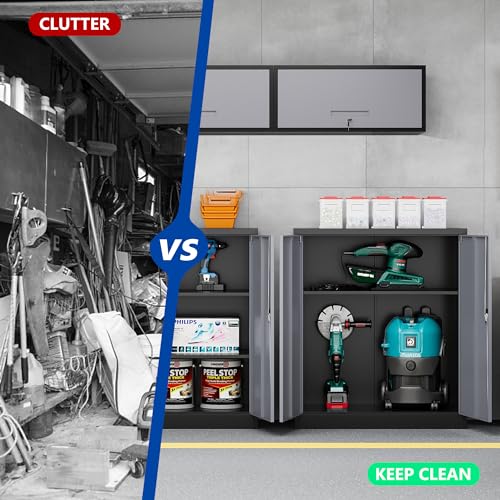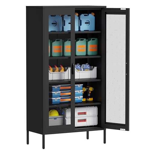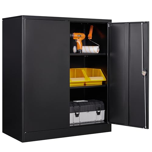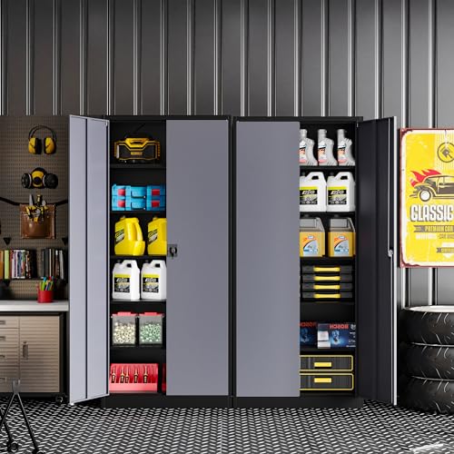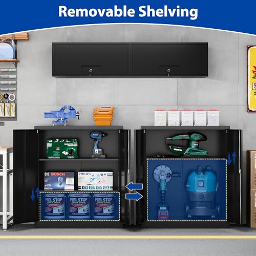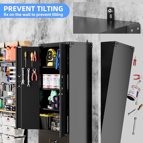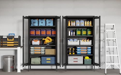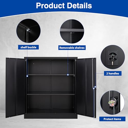 Metal Garage Storage Cabinet with Wheels,Metal Storage Cabinet with Adjustable Shelves,Steel Tool Cabinets with Locking Door for Home, School, Office, Garage (Black)