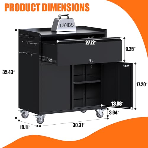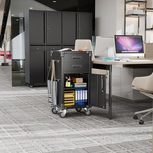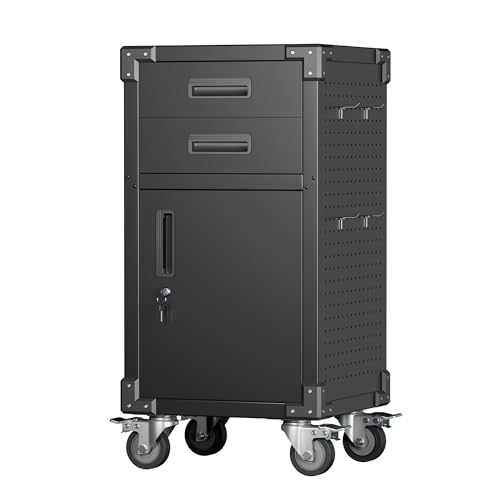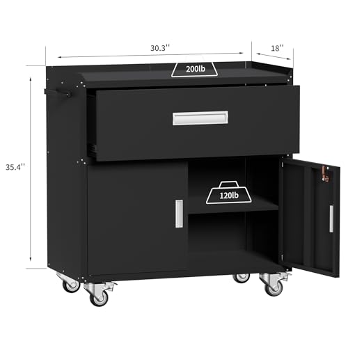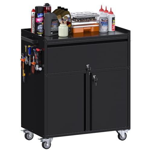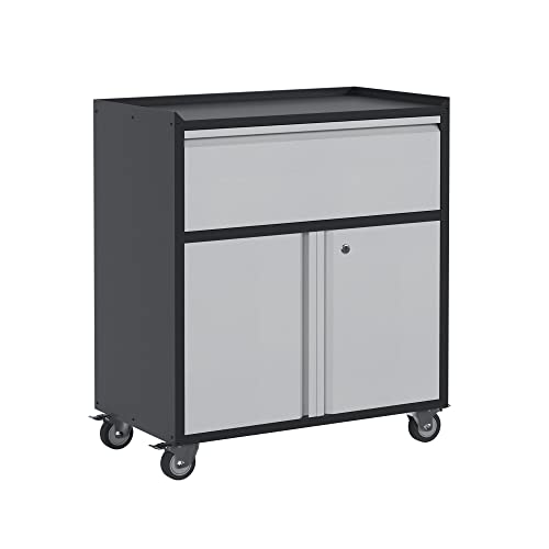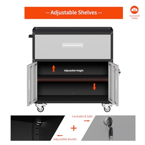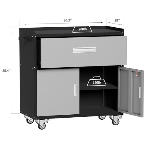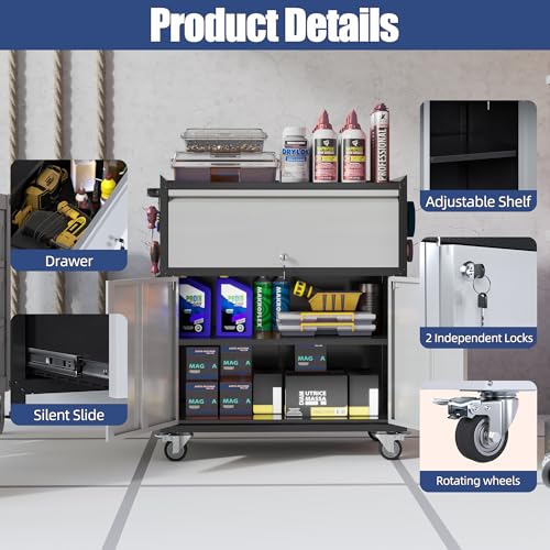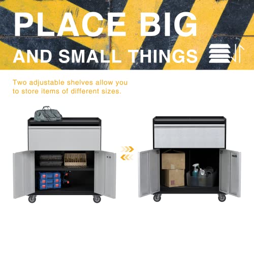 Aobabo Steel Wheeled Lockable Tool Box Supply Cabinet Organizer with Drawer, Adjustable Storage Shelves for Home, Office, and Garage, Black/Gray