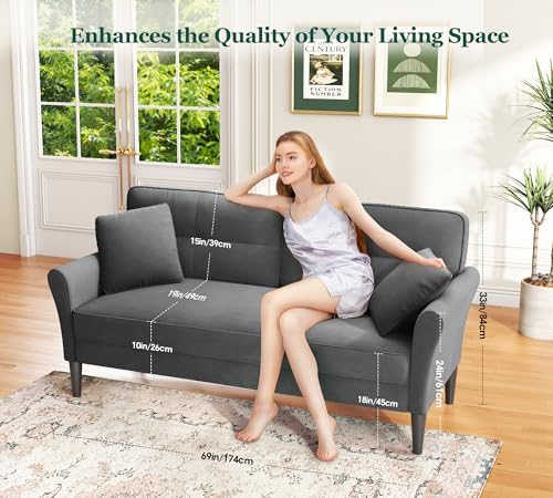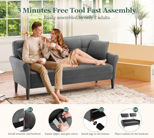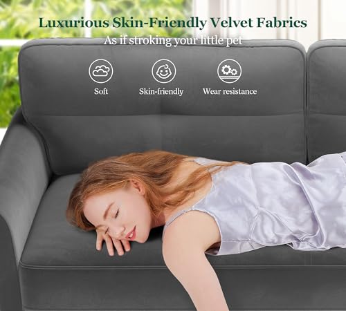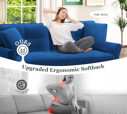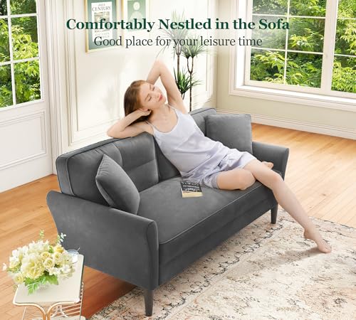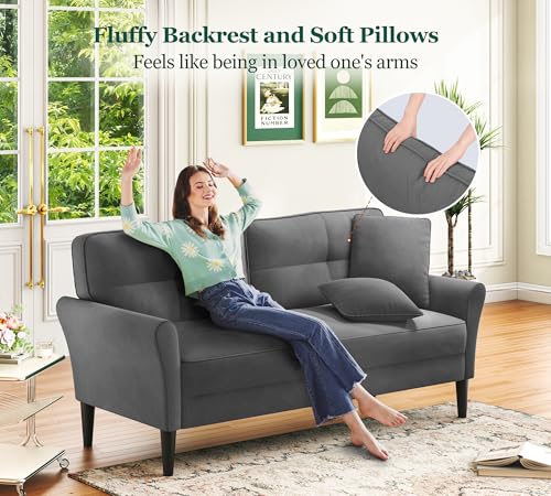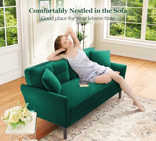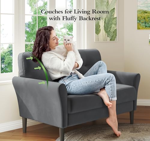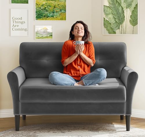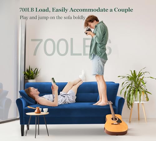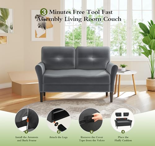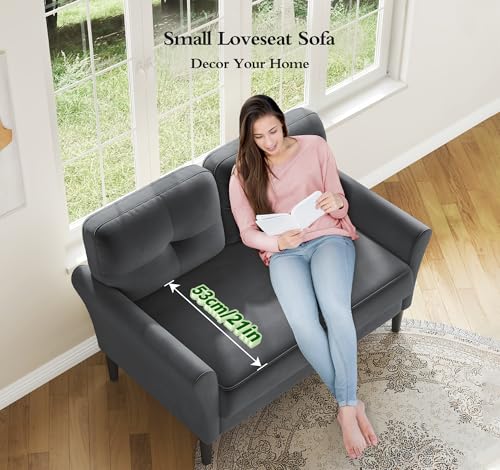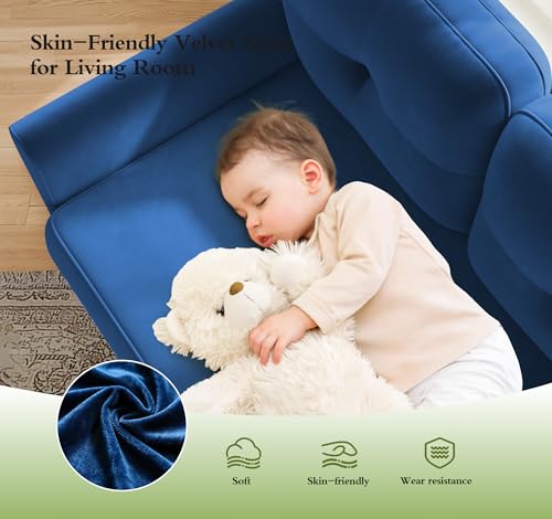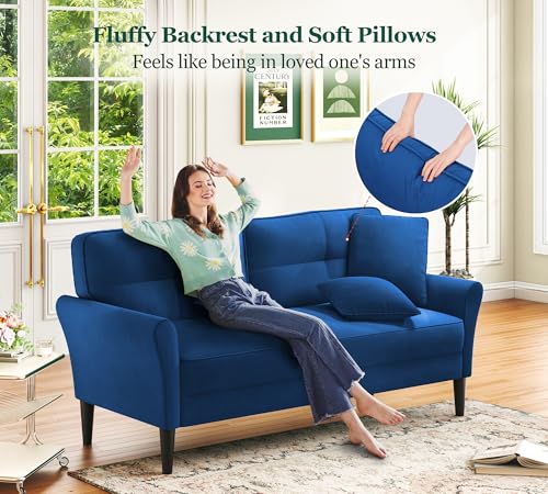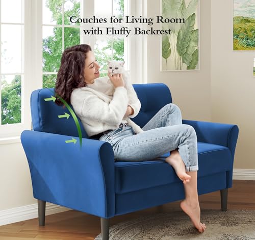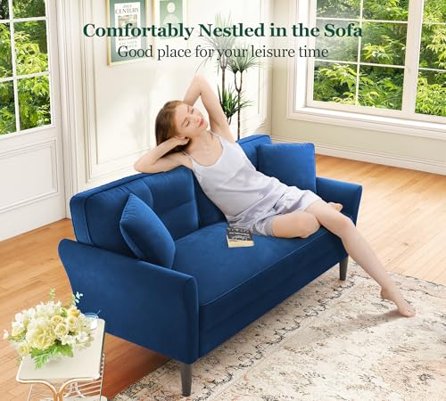Small Sofa Couch, 48" Loveseat Sofa, Soft Velvet Love Seat Couches, Small Couch for Bedroom with 21" Deep Seat, Comfy Couches for Living Room, Tool-Free Setup Sofas for Living Room, Dark Blue