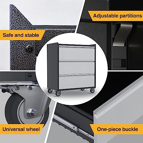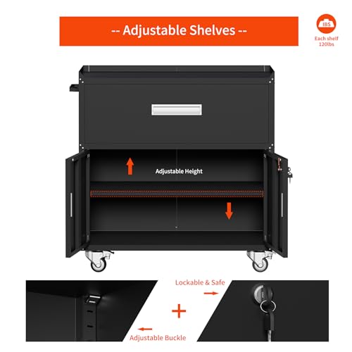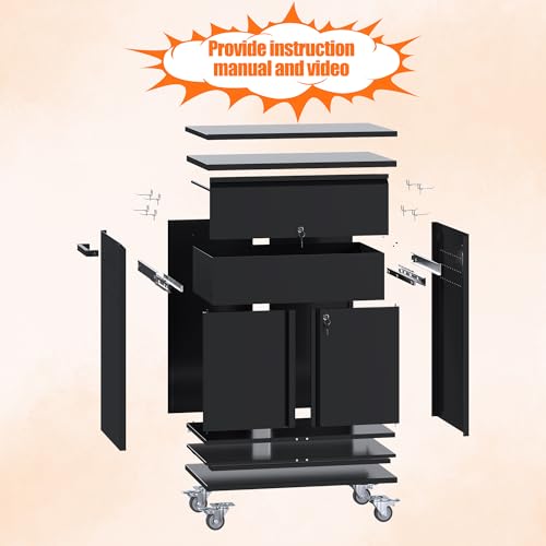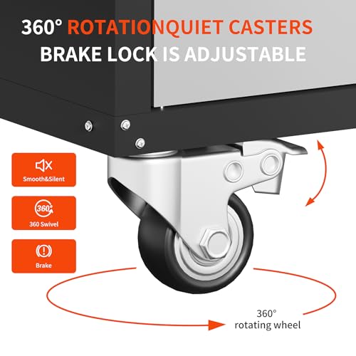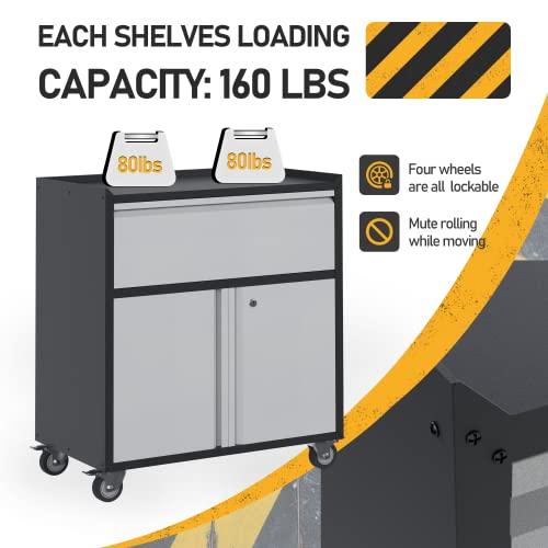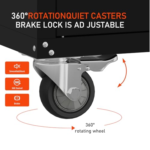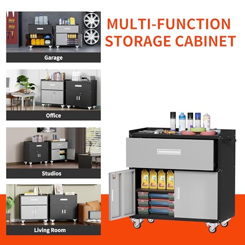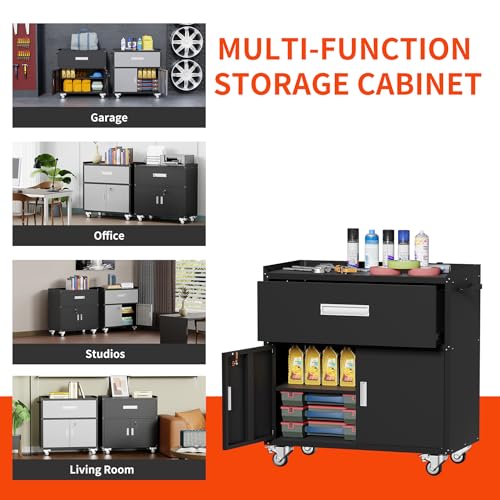 Metal Garage Storage Cabinet with Wheels ,Lockable Rolling Tool Chest on Wheels, Utility Cabinet for Home, Office, Garage and Workshop(Black)