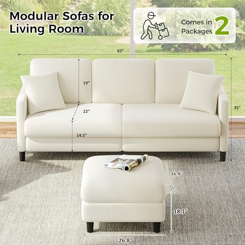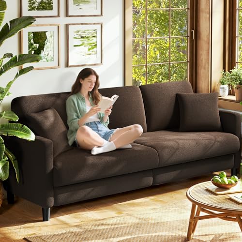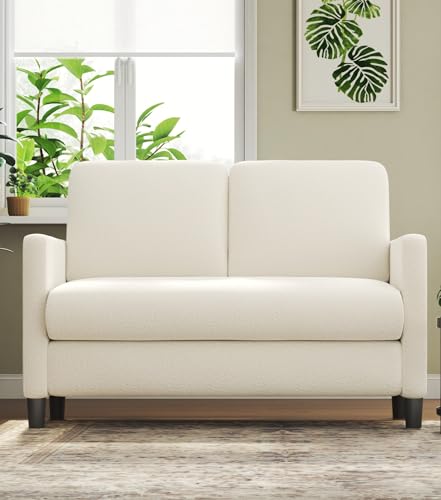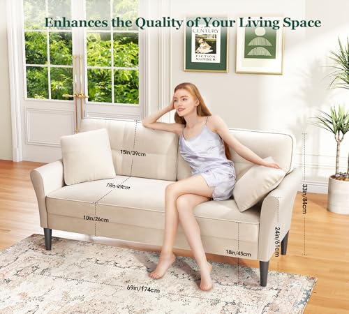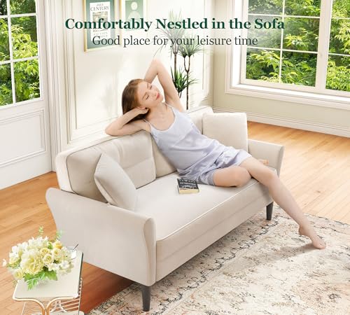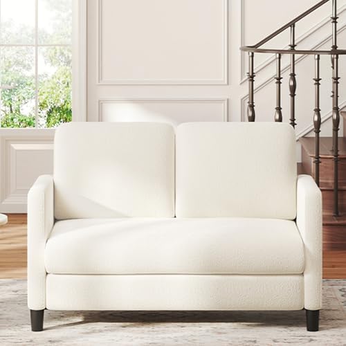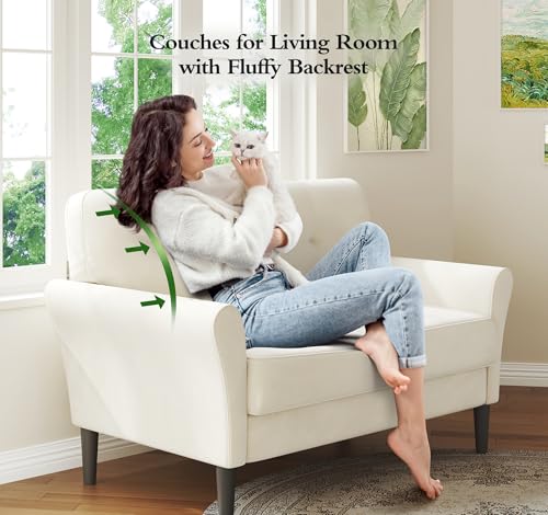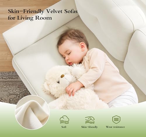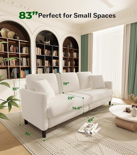 83" Sofas for Living Room, Comfy Love Seat Couches, Teddy Fleece Loveseat Sofa, Tool-Free Setup Couches for Living Room, All-Wood Sofa Couch, Small Couch 2 Pillow Included, Beige