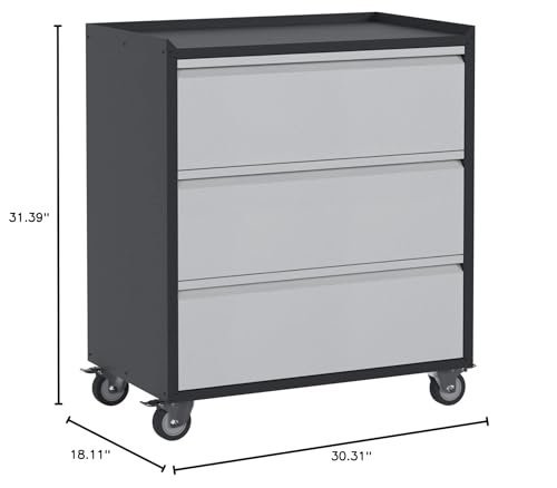 Yizosh Metal Garage Storage Cabinet with Wheels,3-Drawer Rolling Tool Cabinet with 2 Door and Adjustable Shelves,- 71" Steel Tool Cabinet for Warehouse,Garage,Workshop