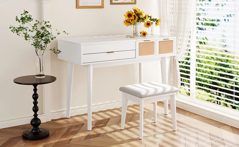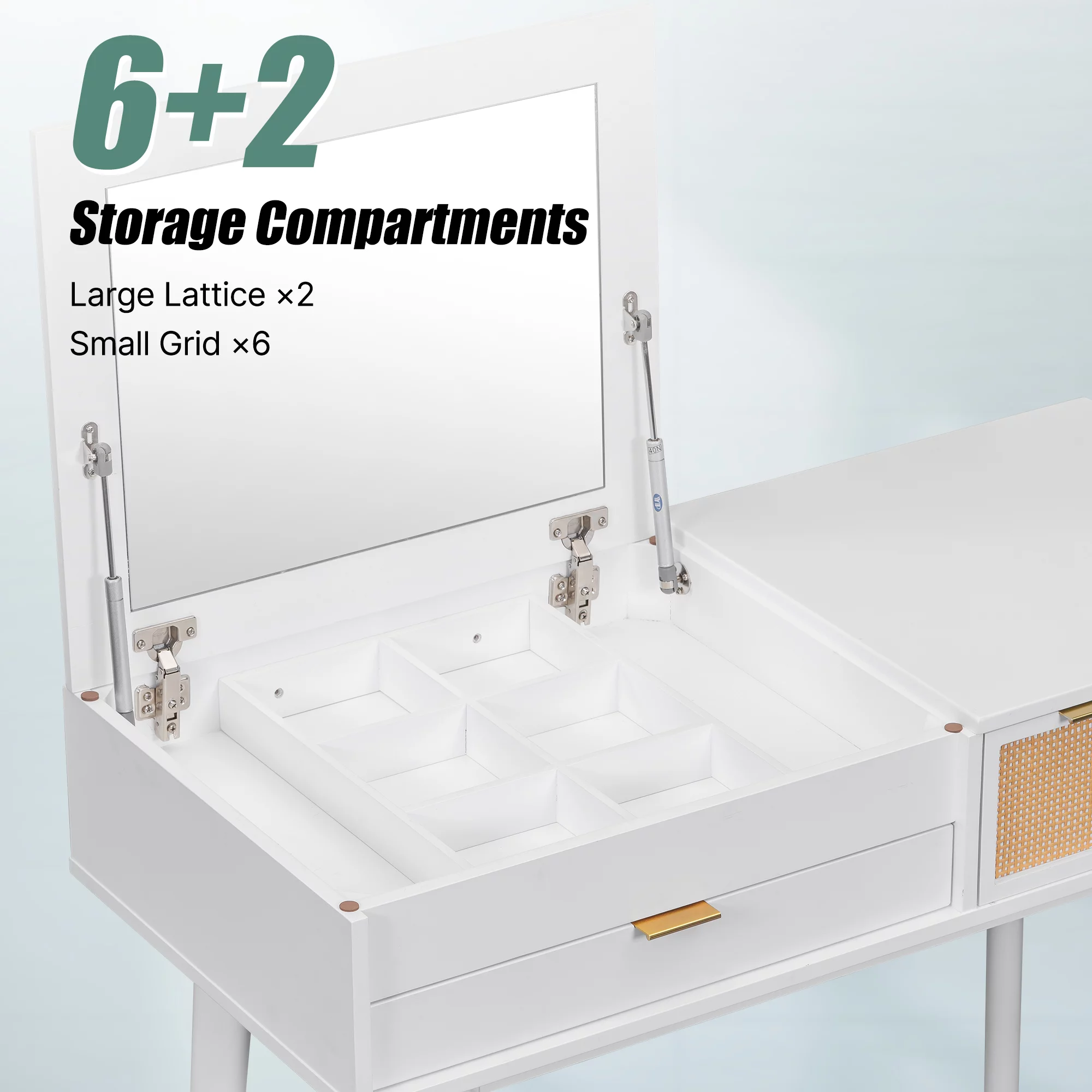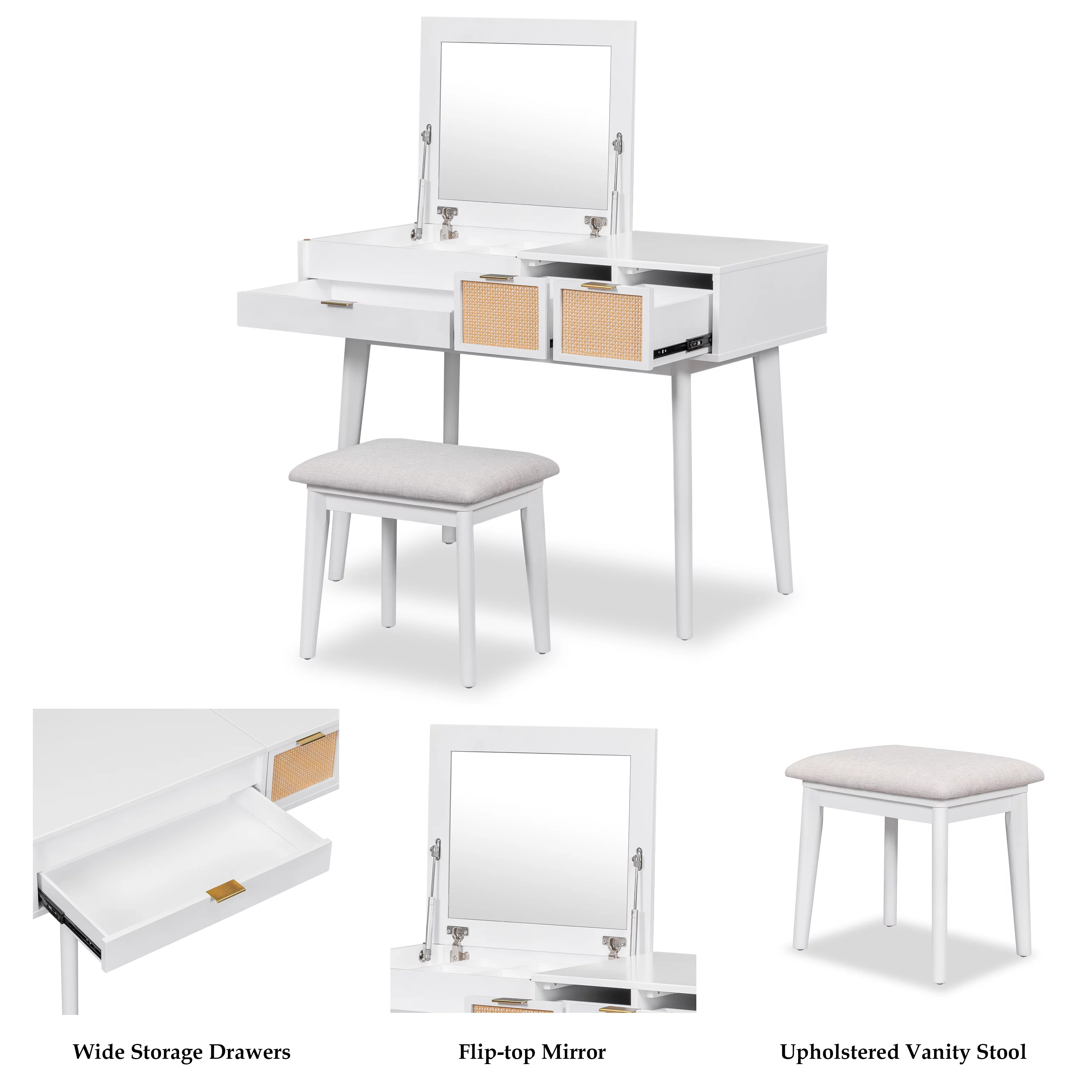 Bellemave Makeup Vanity Table Set with Stool, Vintage Vanity Desk with Flip top Mirror and Drawers Dressing Table with Jewelry Storage Compartments for Bedroom, White