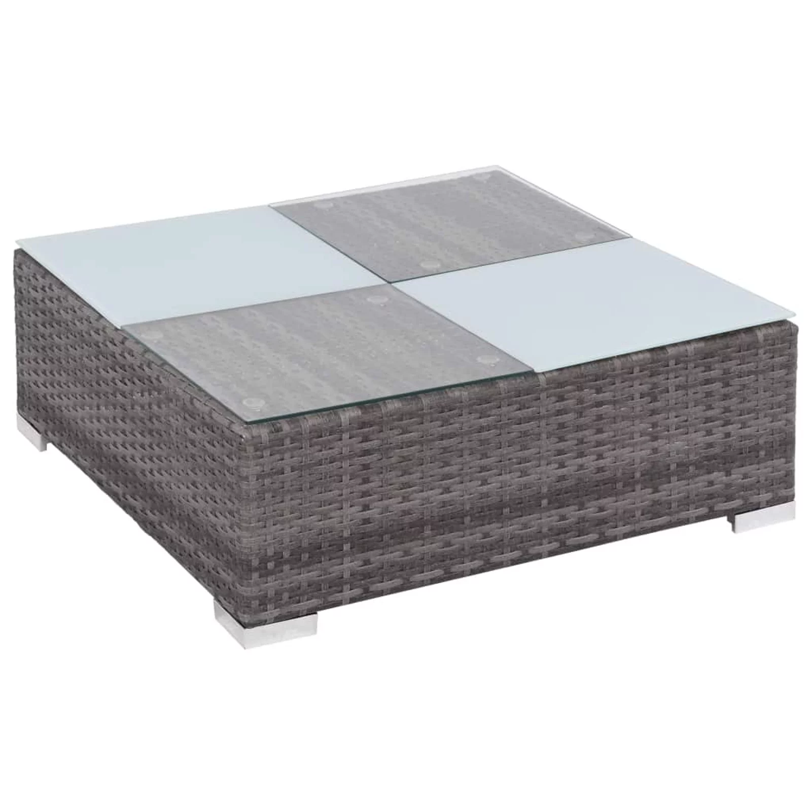 moobody 8 Piece Garden Conversation Set Cushioned 2 Corner with 3 Center Sofa, 2 Half-Round Stool, Coffee Table Gray Poly Rattan Sectional Outdoor Furniture Set for Backyard, Patio, Pool, Balcony