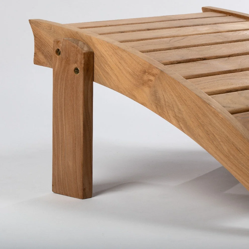 Titan Great Outdoors Savannah Grade A Teak Adirondack Ottoman, Patio Lounge Stool for Deck, Porch, or Backyard, Indoor Outdoor Use, Weather Resistant, Gently Curved Back with Tight Slats