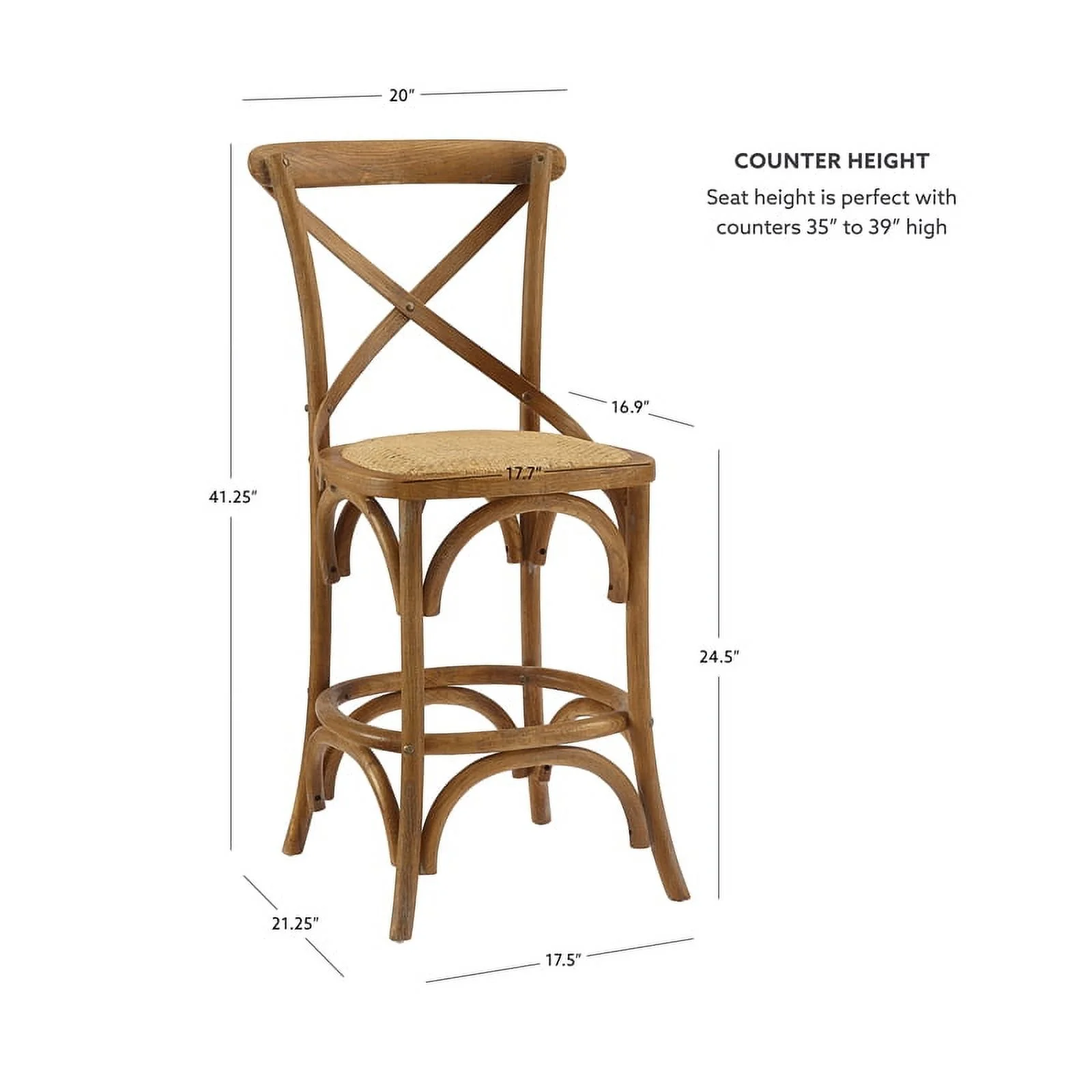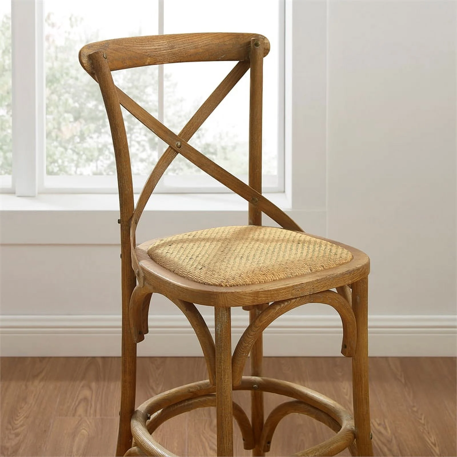 bali & pari Maryland Bohemian Natural Rattan and Acacia Wood Counter Stool