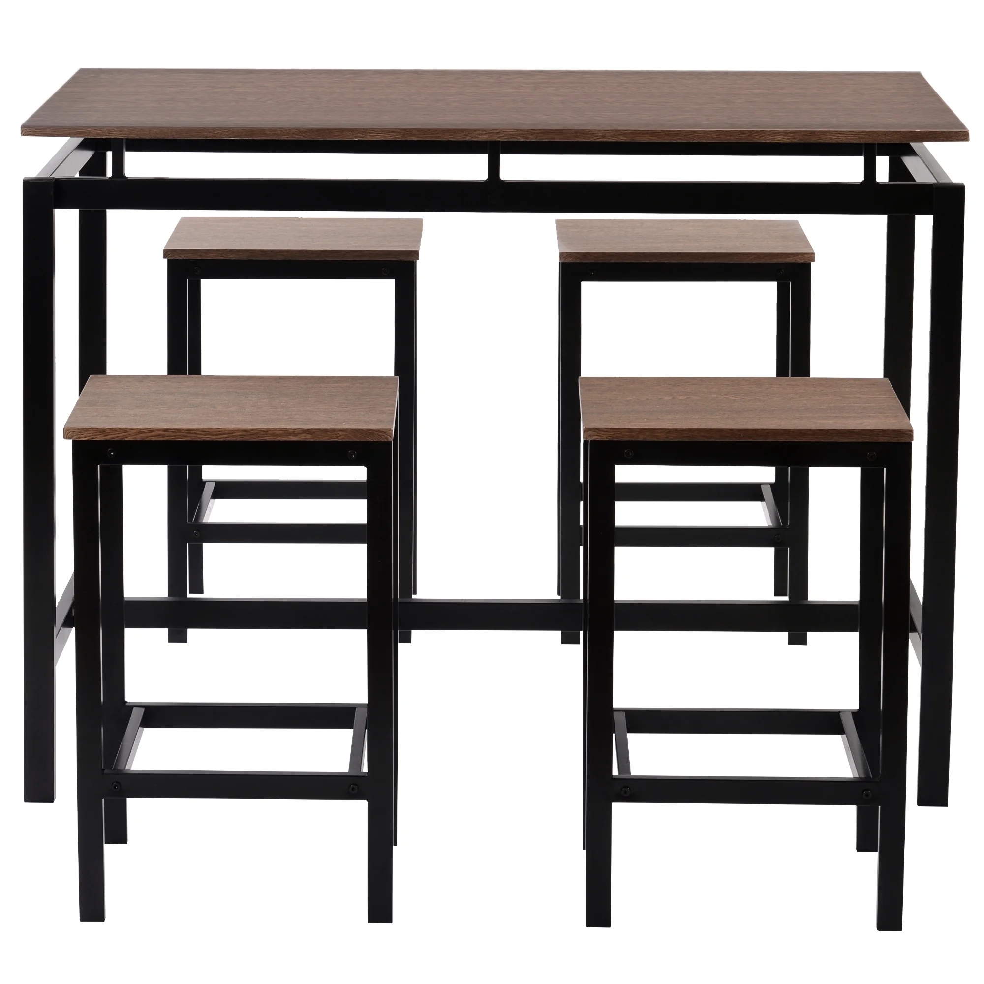 EUROCO 47.2" 5 Piece Bar Table Set, Kitchen Counter Height Table with 4 Stools, Space Saving Pub Table Set for 4 Person with Metal Frame, Wood Dining Table & Chair Set for Breakfast Nook Pub Bistro