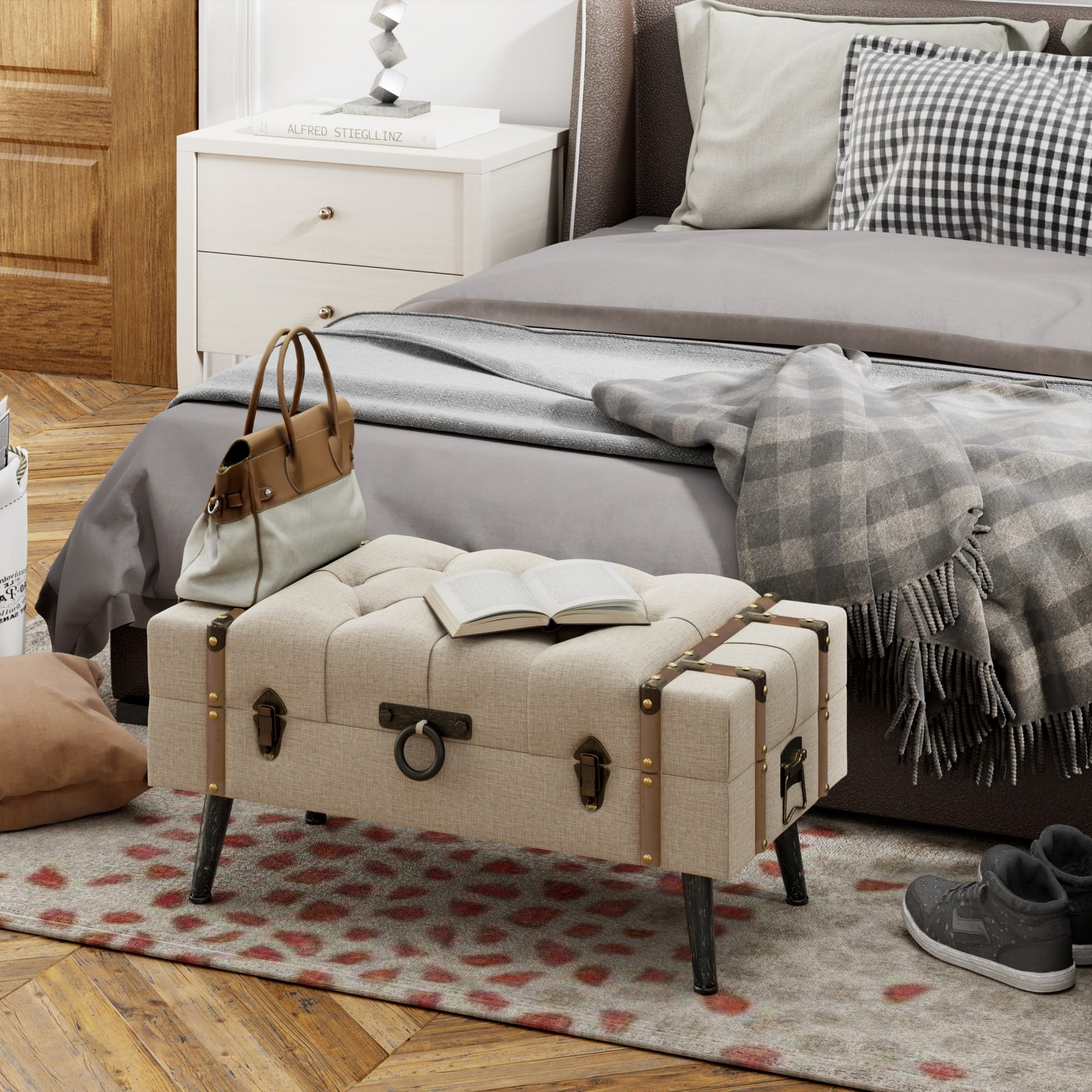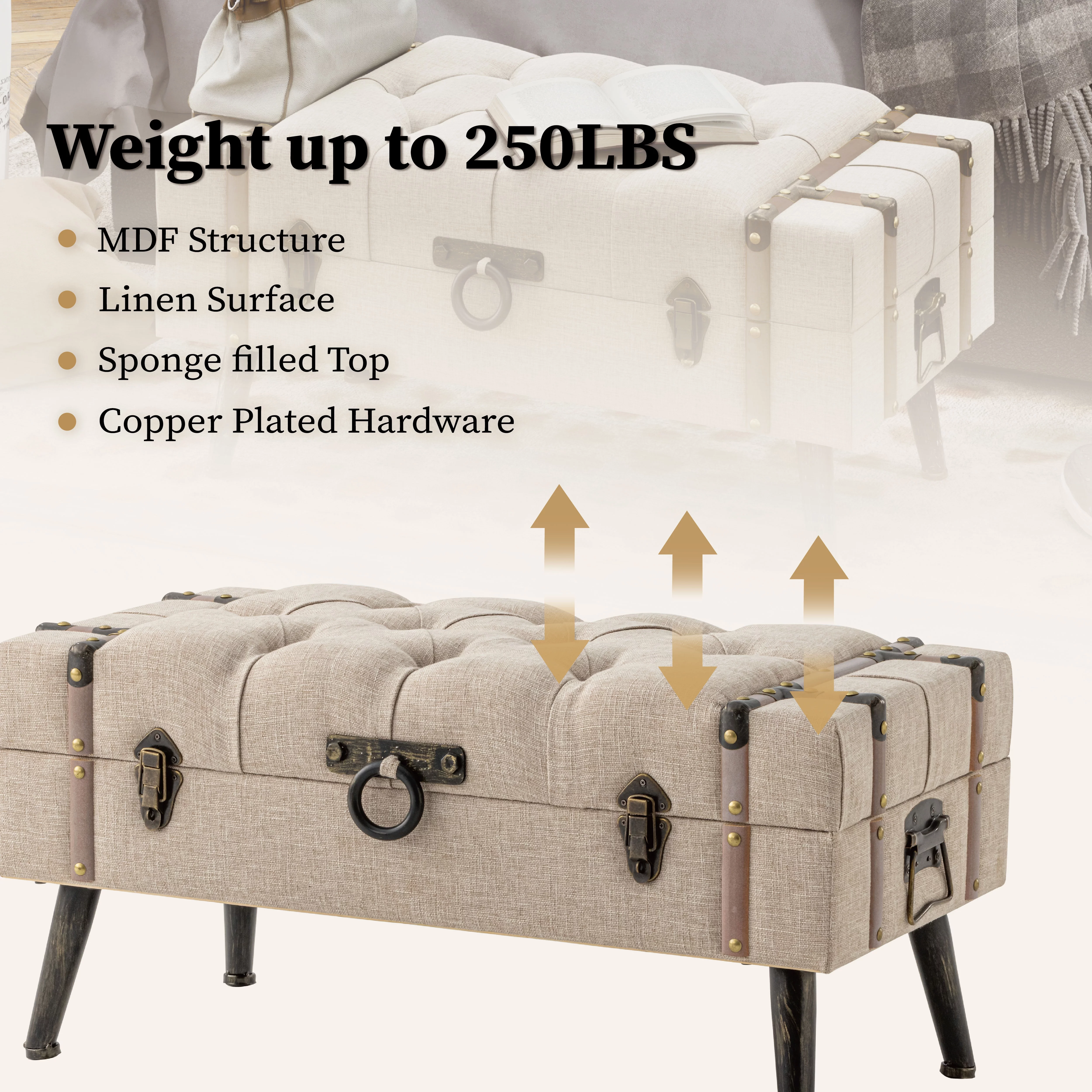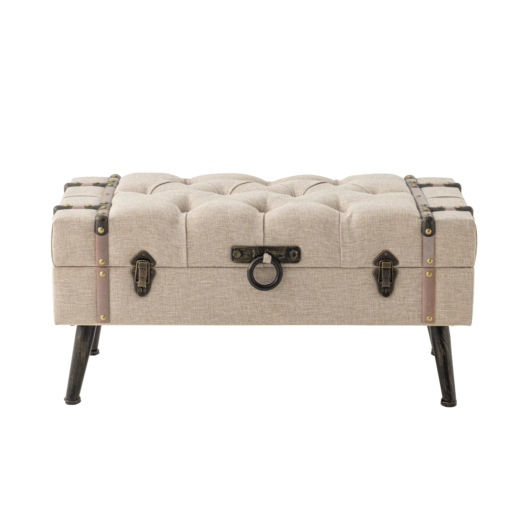 COZAYH Modern Storage Ottoman, Upholstered Button Tufted Storage Bench, Padded Footrest Stool, Toy Chest Home Organizer with Latch Closure and Buckles for Bedroom, Entryway, Hallway