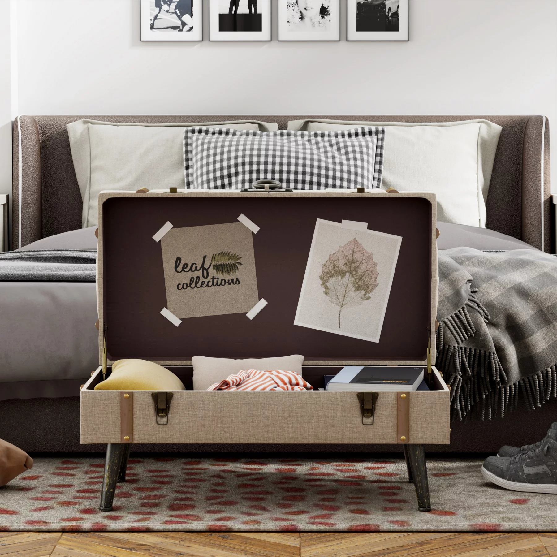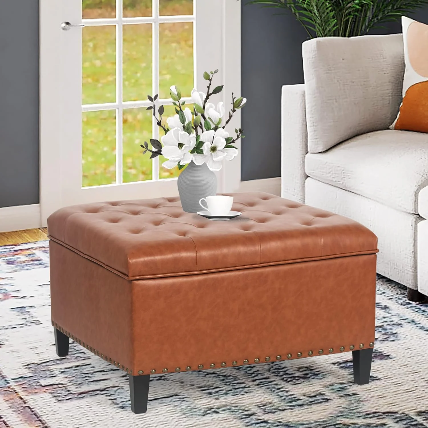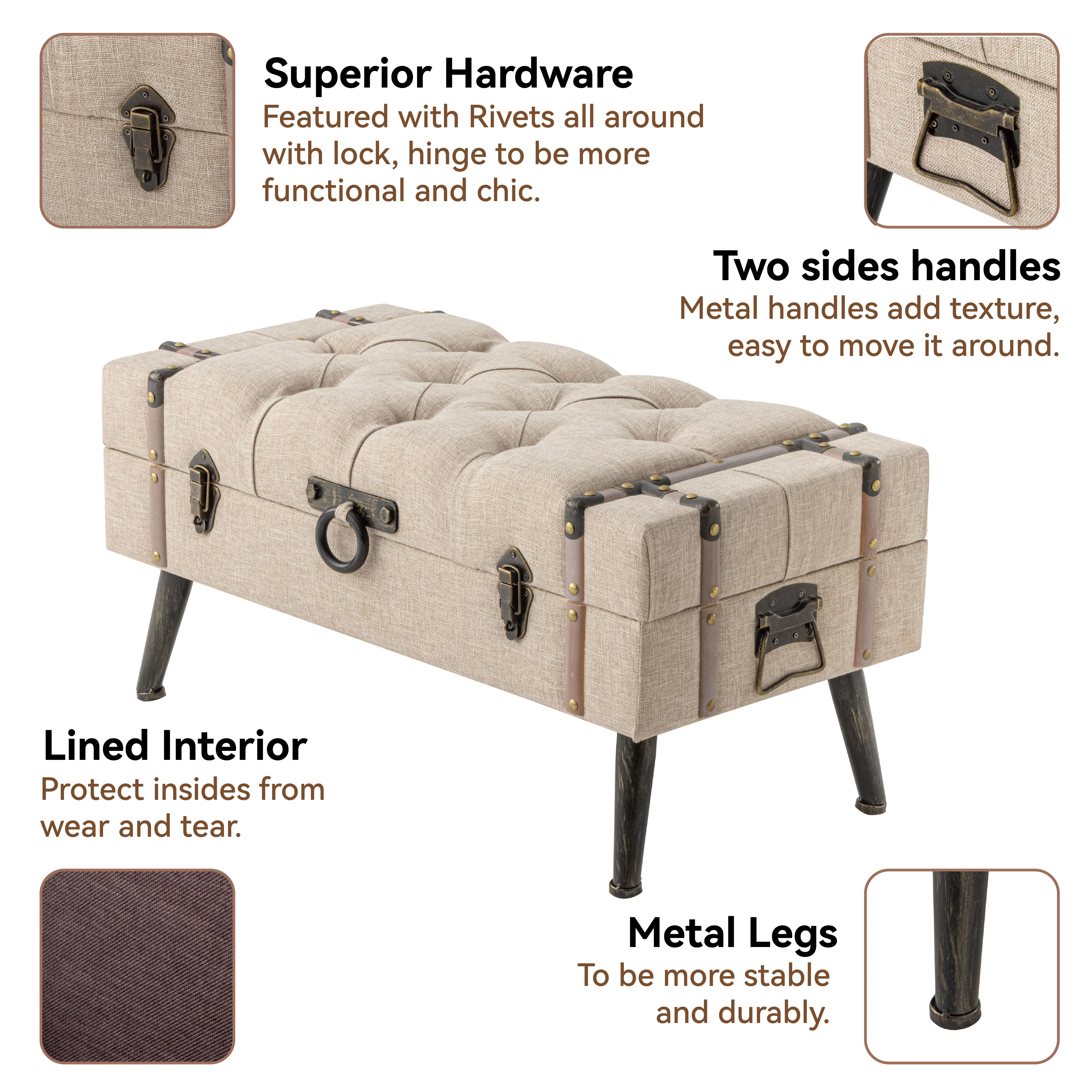COZAYH Modern Storage Ottoman, Upholstered Button Tufted Storage Bench, Padded Footrest Stool, Toy Chest Home Organizer with Latch Closure and Buckles for Bedroom, Entryway, Hallway