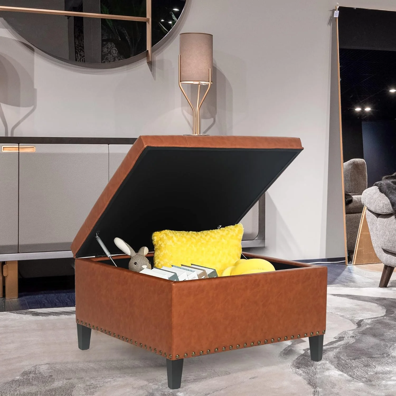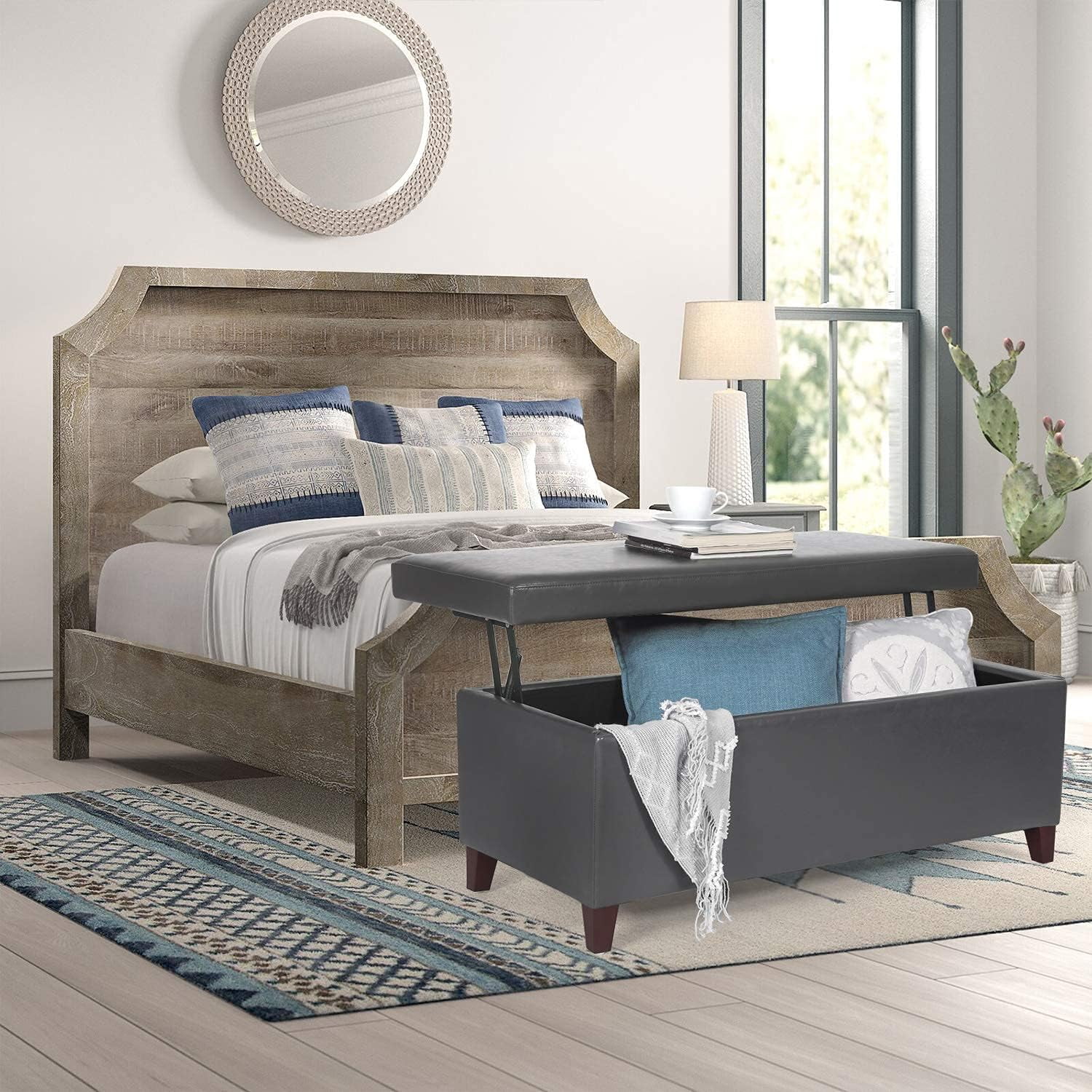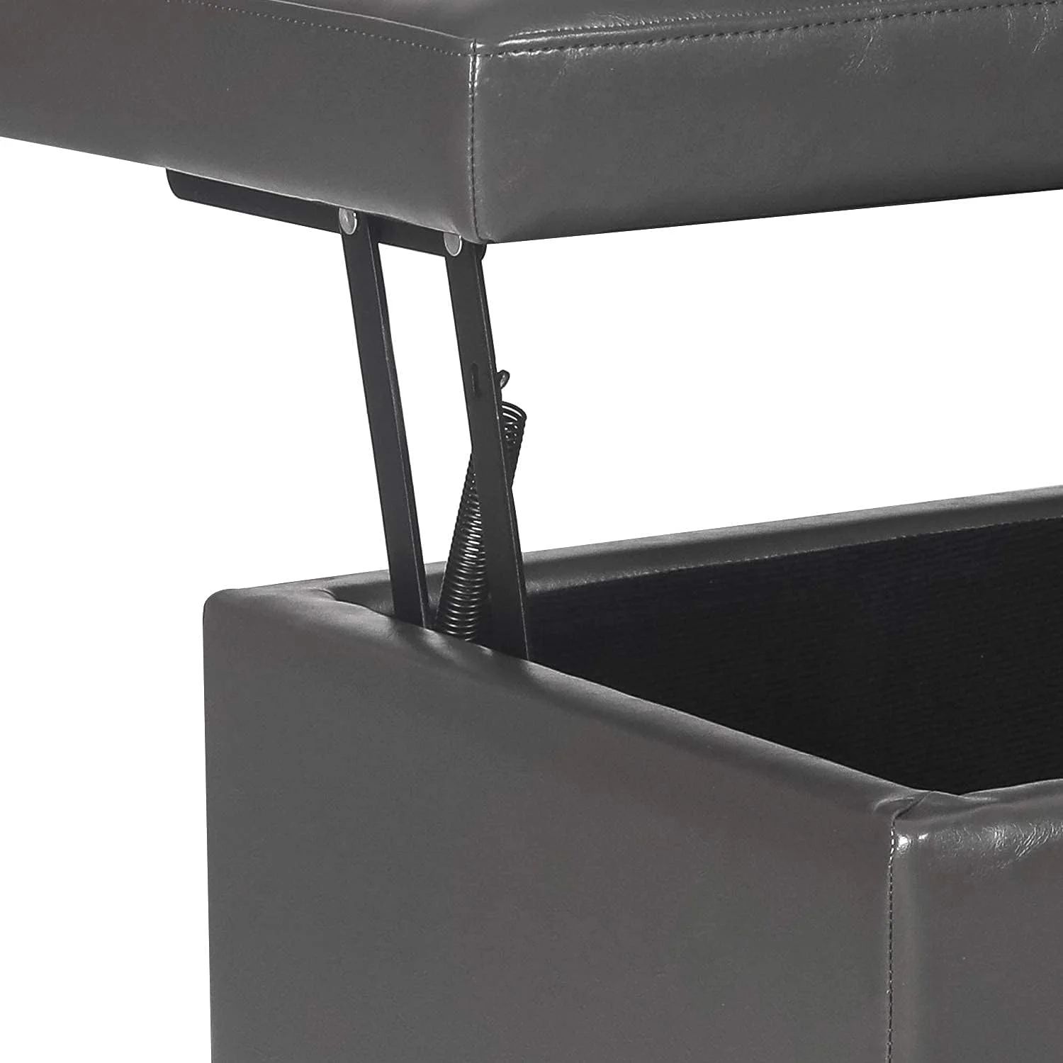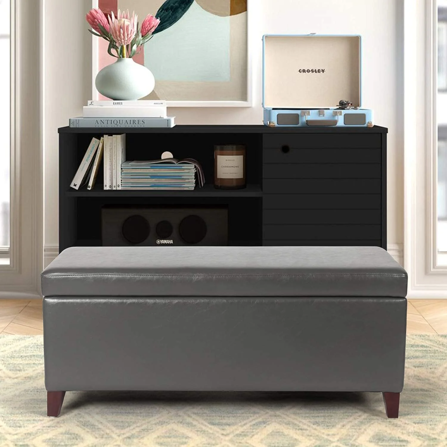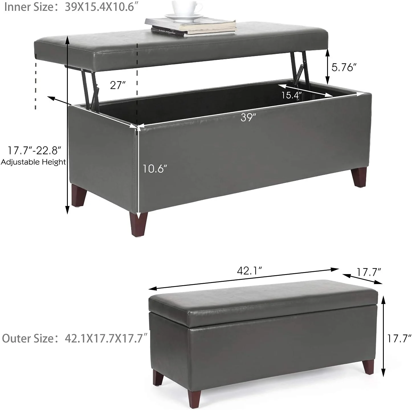 Storage Bench Ottoman Footstool- Lift Top Coffee Table Ottoman- Gray Faux Leather Ottoman With Storage- End Of Bed Bench For Living Room And Bedroom