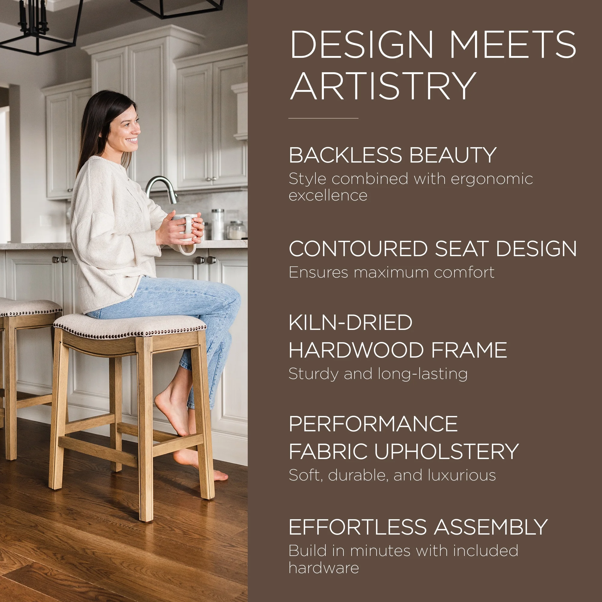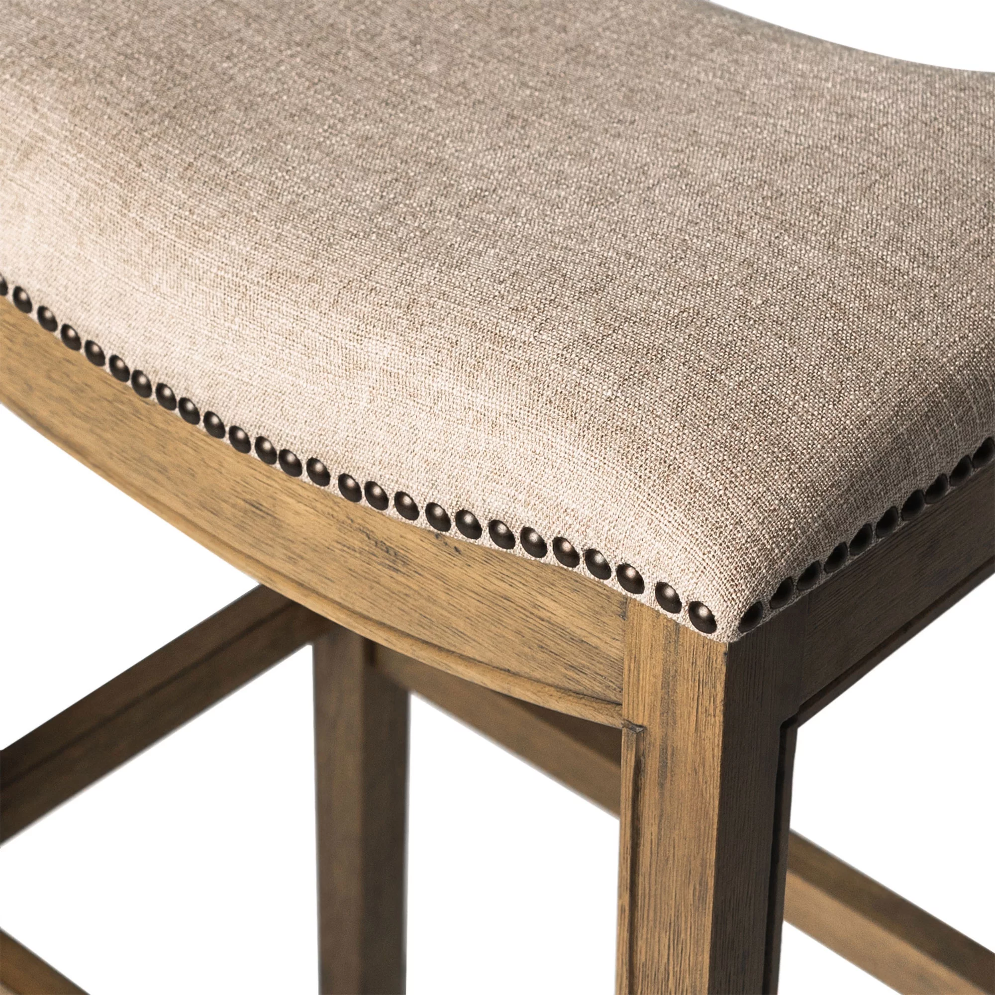NewRidge Home Saddle Style 30" Bar Height Stool with Cream Fabric