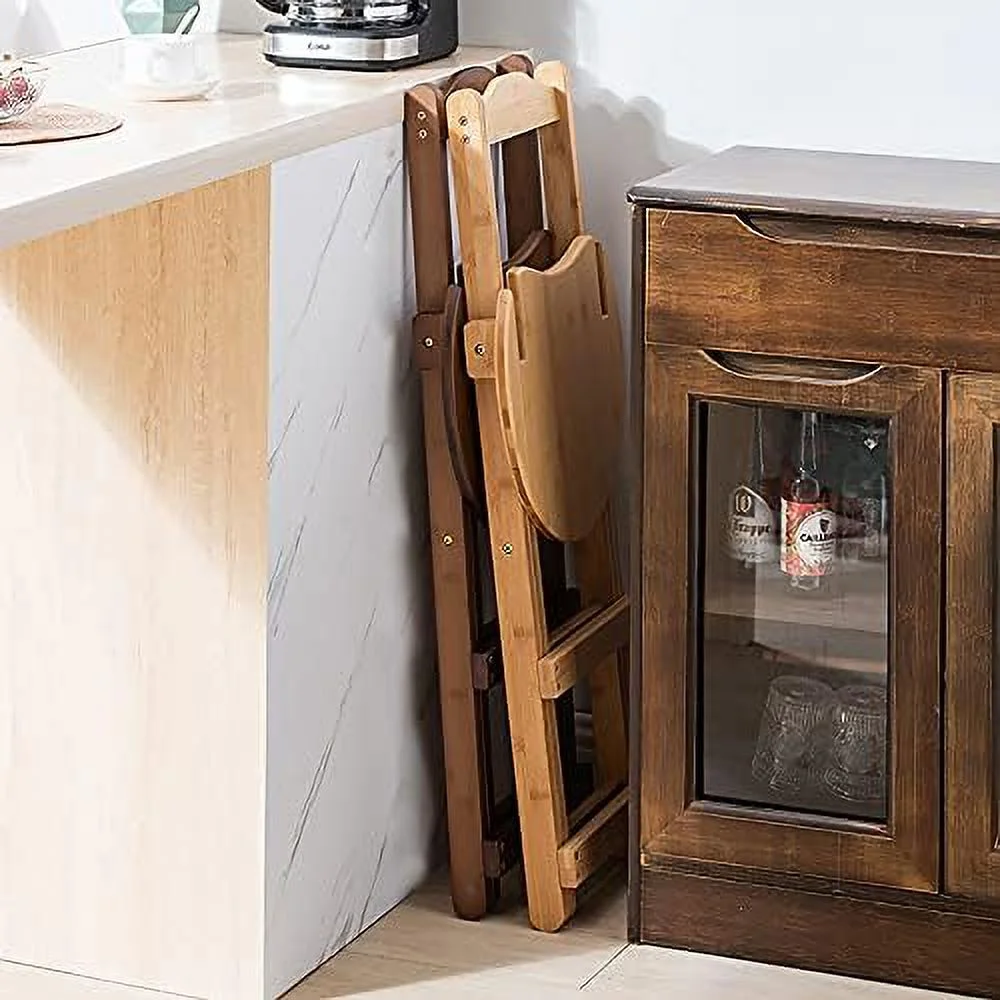 TJUNBOLIFE 24 inch Rustic Folding Wood Stools Wooden Kitchen Counter Height Barstools Dining Chair with Backrest/Footrest Chairs 75cm