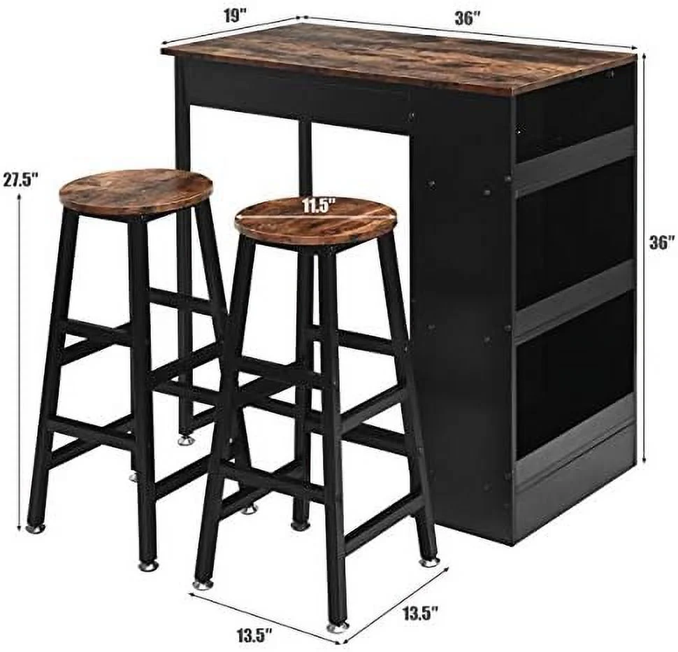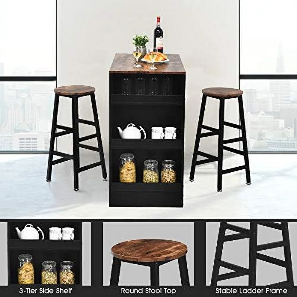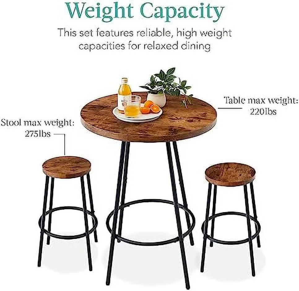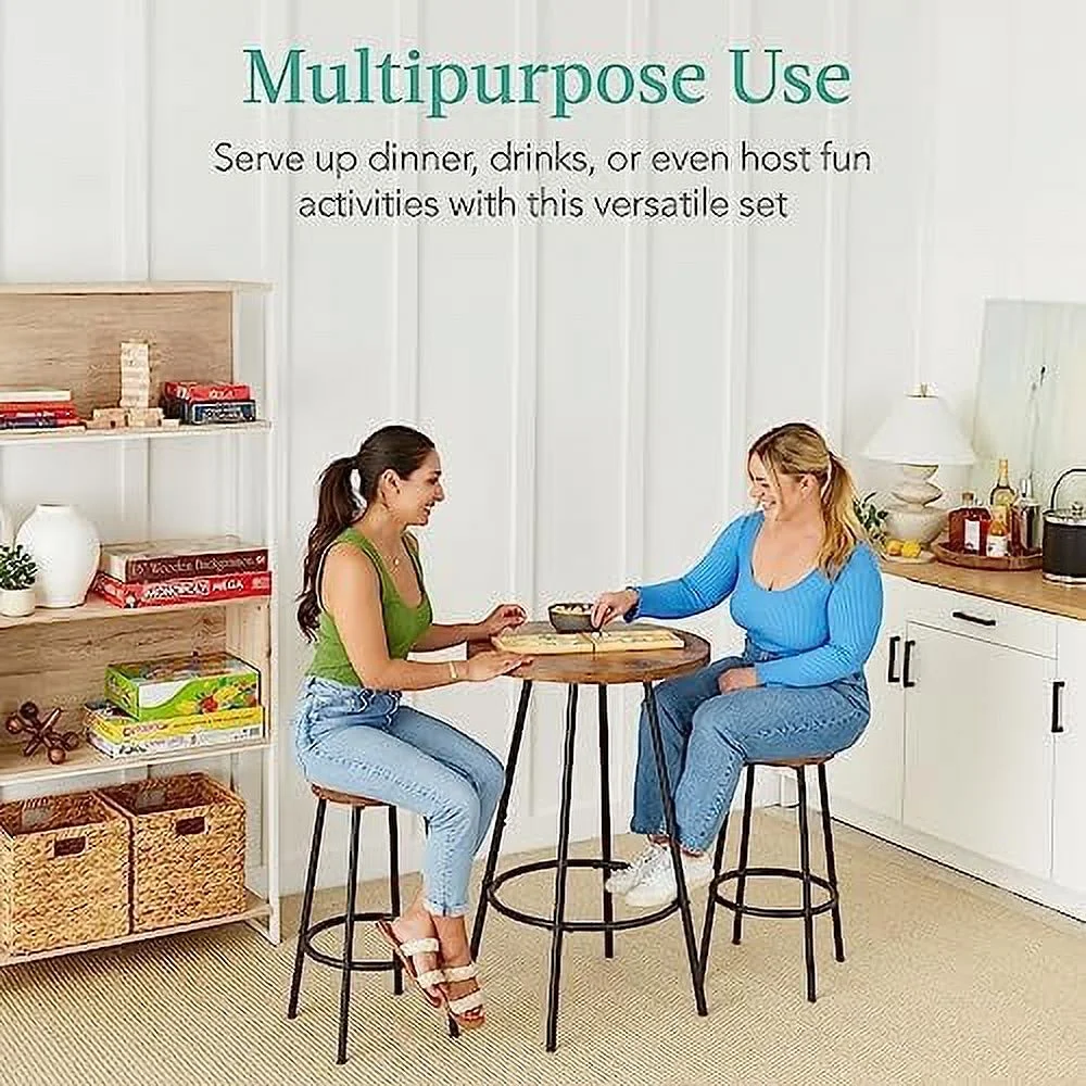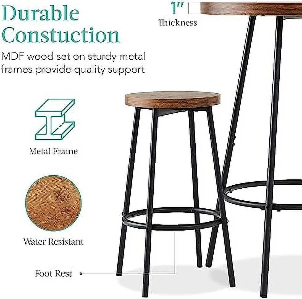 HOOMHIBIU 3 Piece Pub Dining Set Wooden Counter Height Table Set with 2 Stools Industrial Table Set Sturdy Table with for Kitchen Restaurant Living Room (Brown)