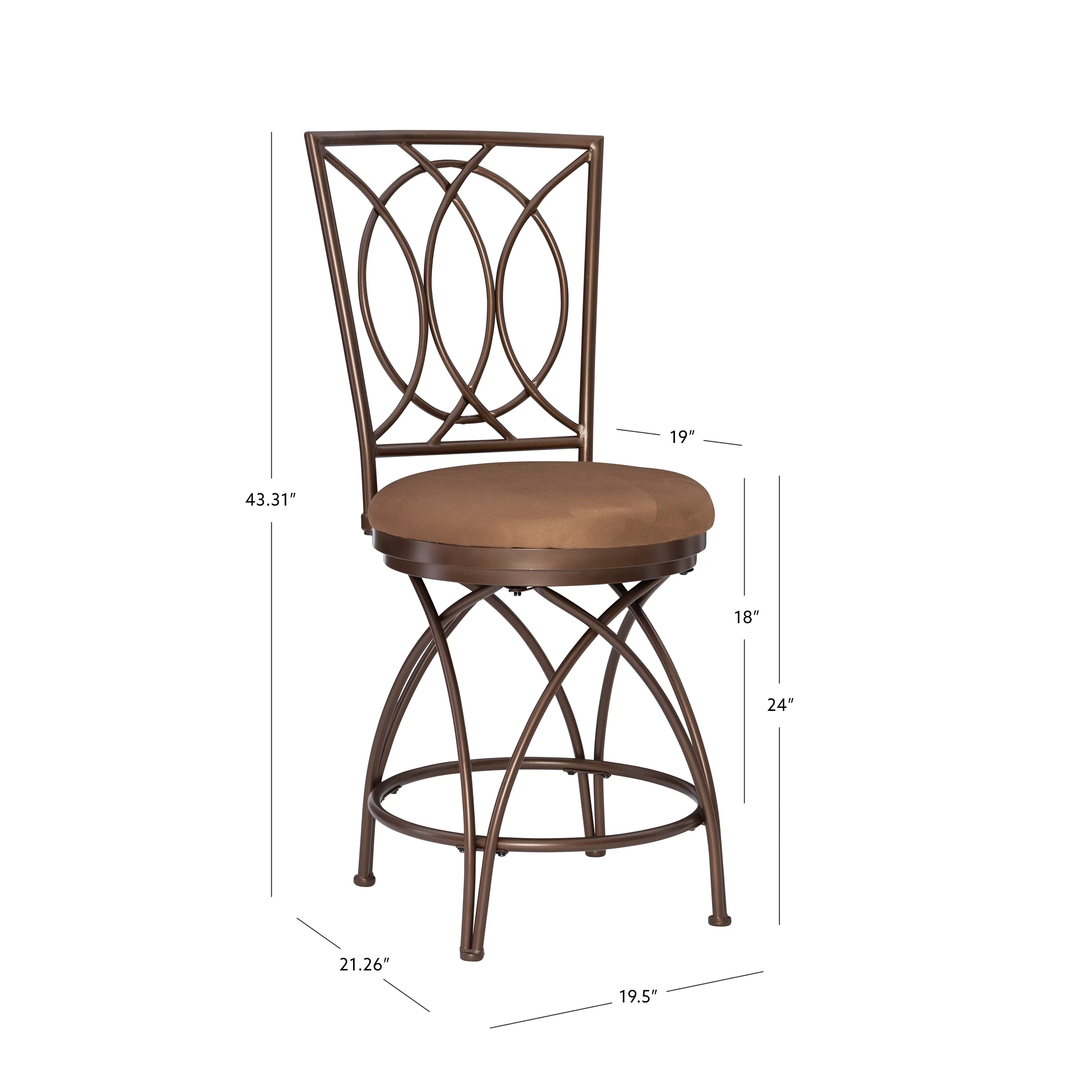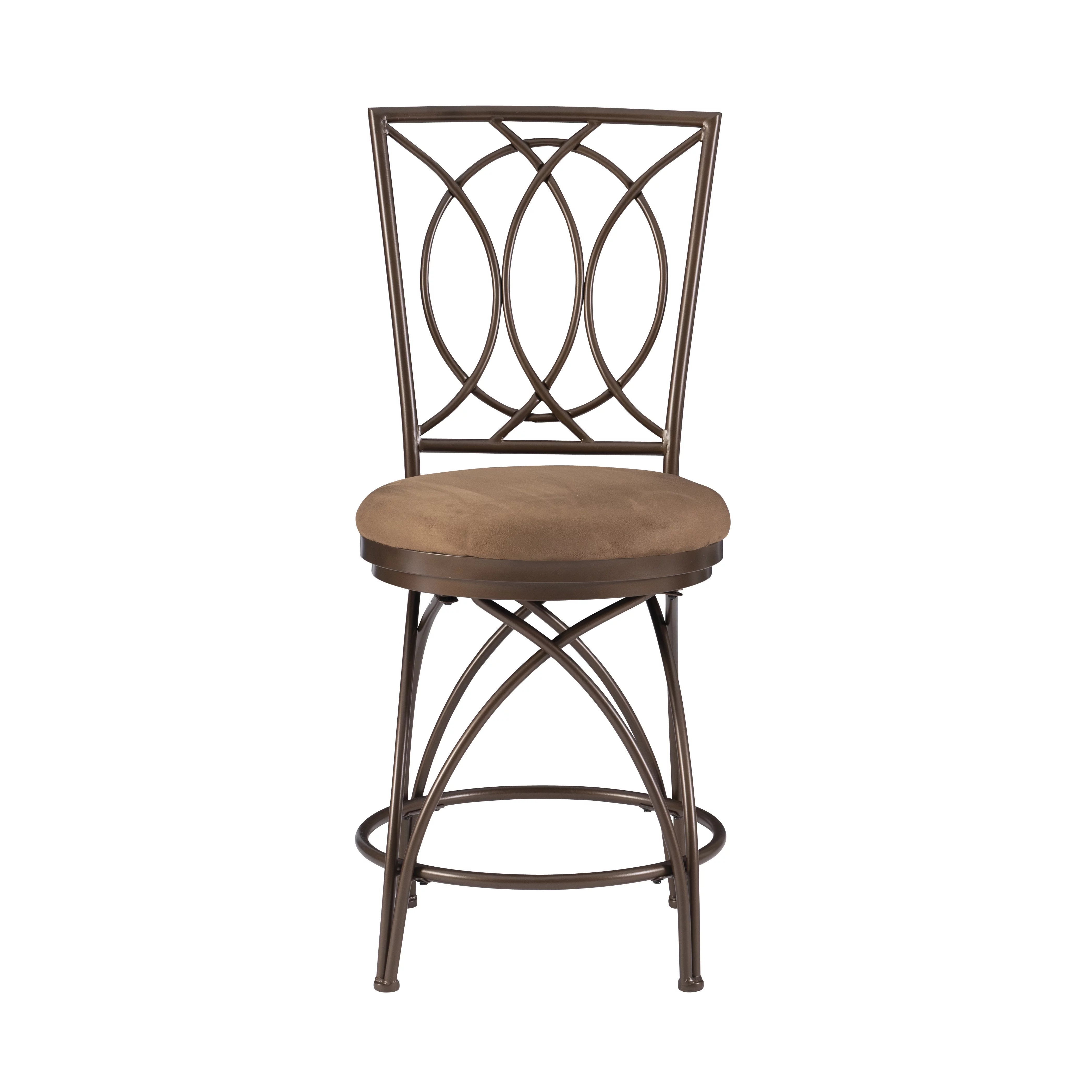 Big & Tall 24.5" Metal Circle Back Counter Stool with Swivel, Bronze with Warm Tan Microsuede