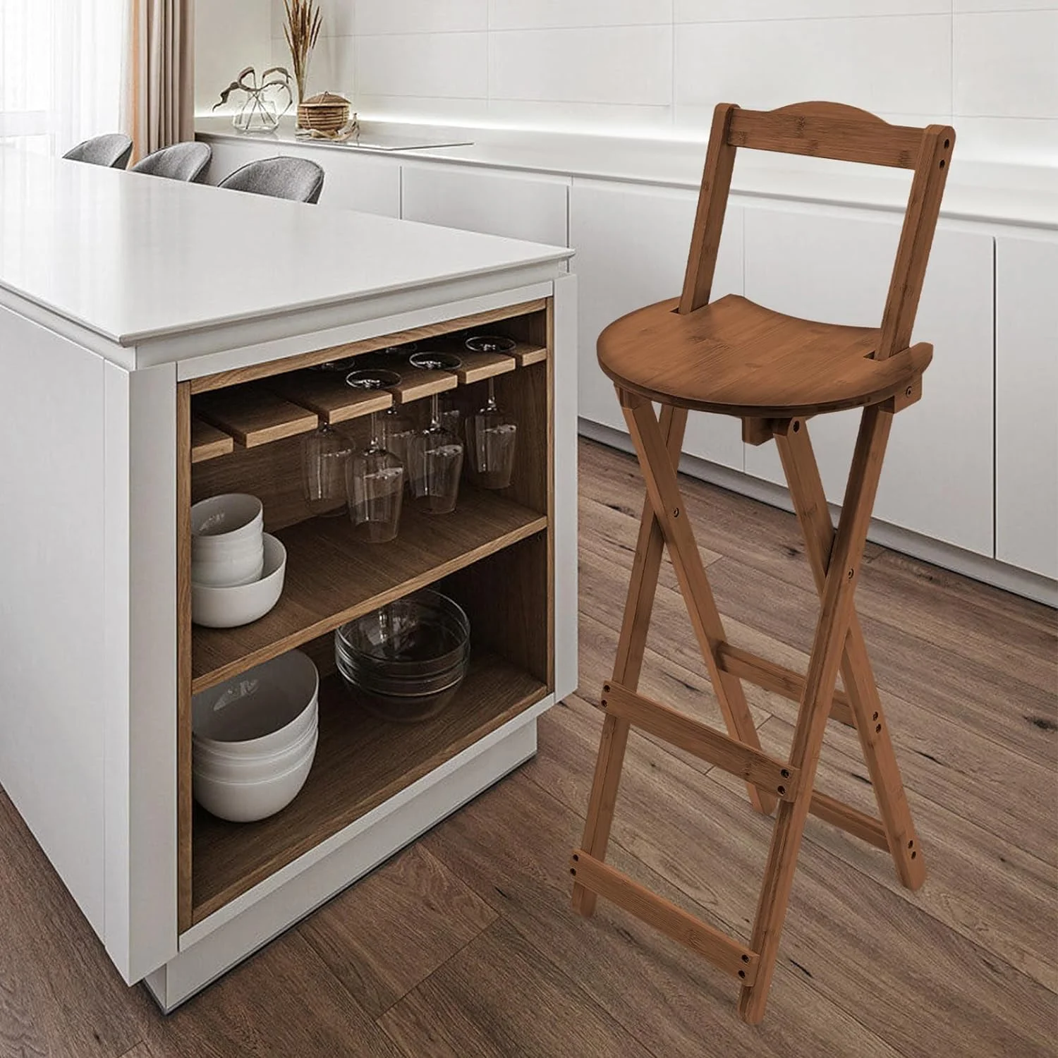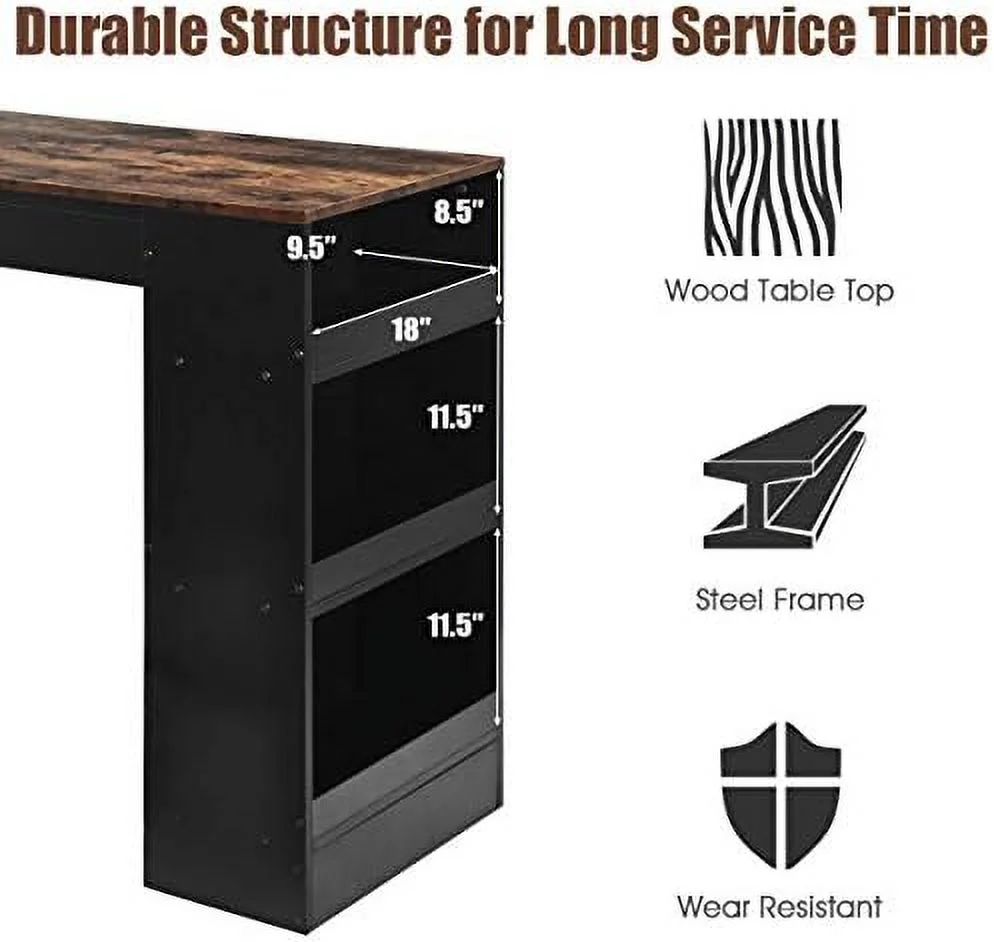 ikayaa Modern Contemporary 5pc Counter Height High Dining Table w Storage Shelves High Chairs And Stools Wooden Kitchen Breakfast Table Dining Room Furniture