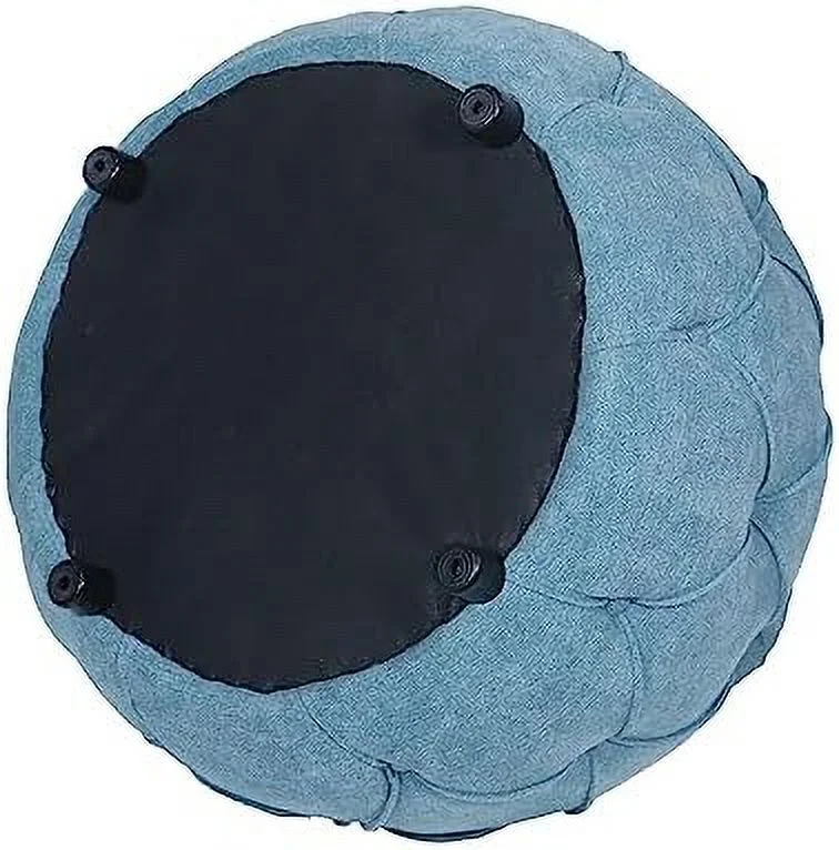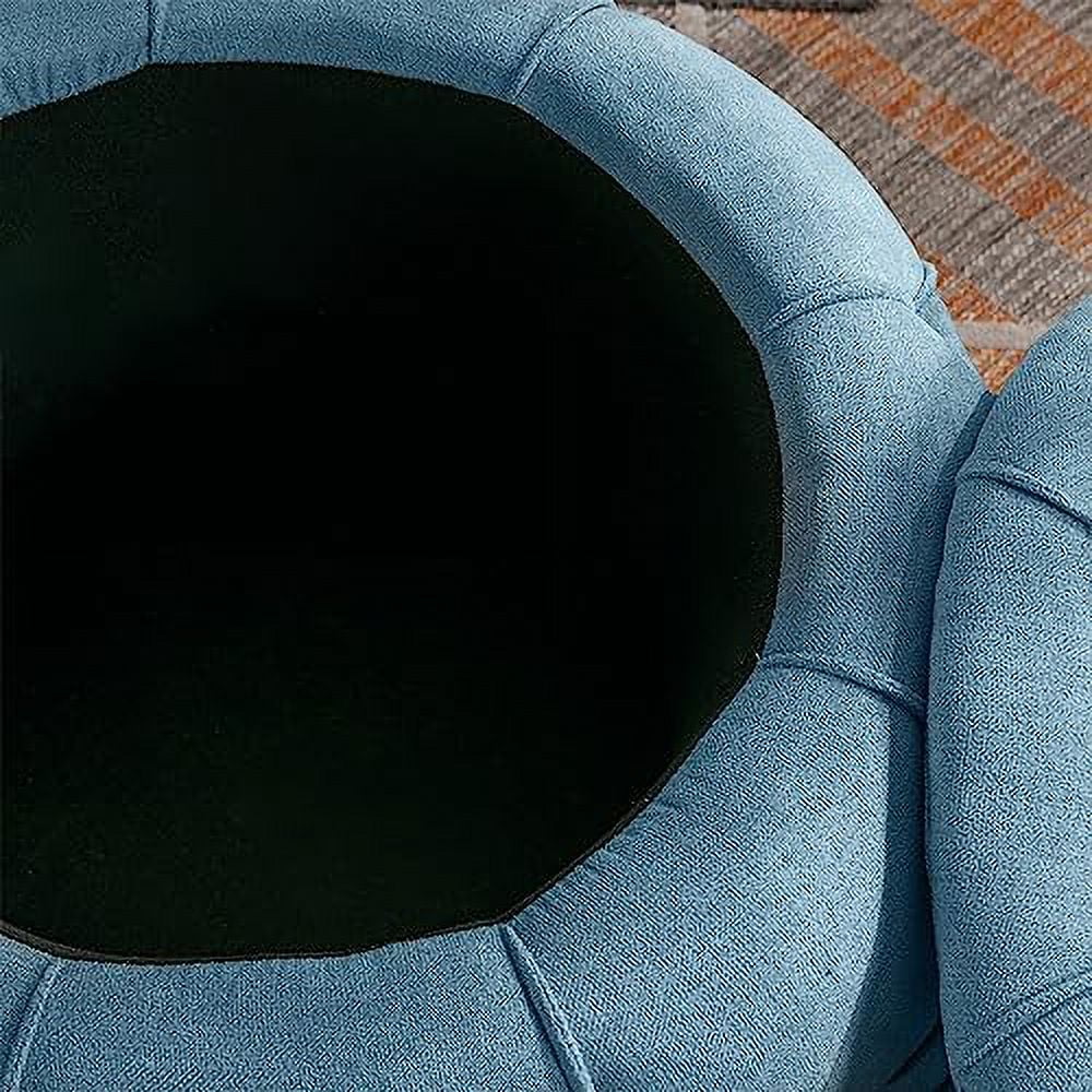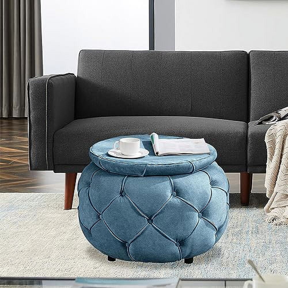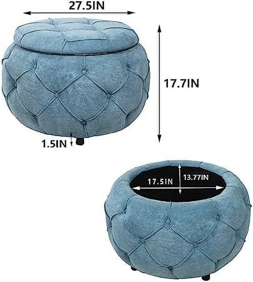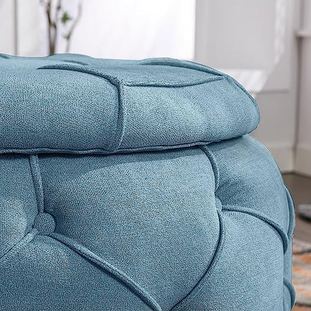 RUNFAYBIU Tufted Ottoman for Bedroom 27.5" Woven Round Ottoman Stool Seat Fabric Upholstered End Coffee Table with Double Sided Lid Living Room Foot Stool with (Blue)